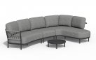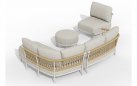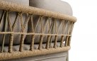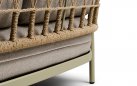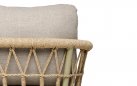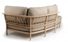 Oparcie kanapy jest wyplecione technorattanem zwijanym a la bananowiec. Organicznie uformowana kanapa do ogrodu ma wymiary 214x167 cm i wysokość 72 cm. Składa się z dwóch części, które można łatwo połączyć. Dzięki swoim kompaktowym wymiarom, pasuje na różne tarasy i balkony, a także pomieści 4-5 osób.