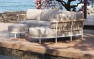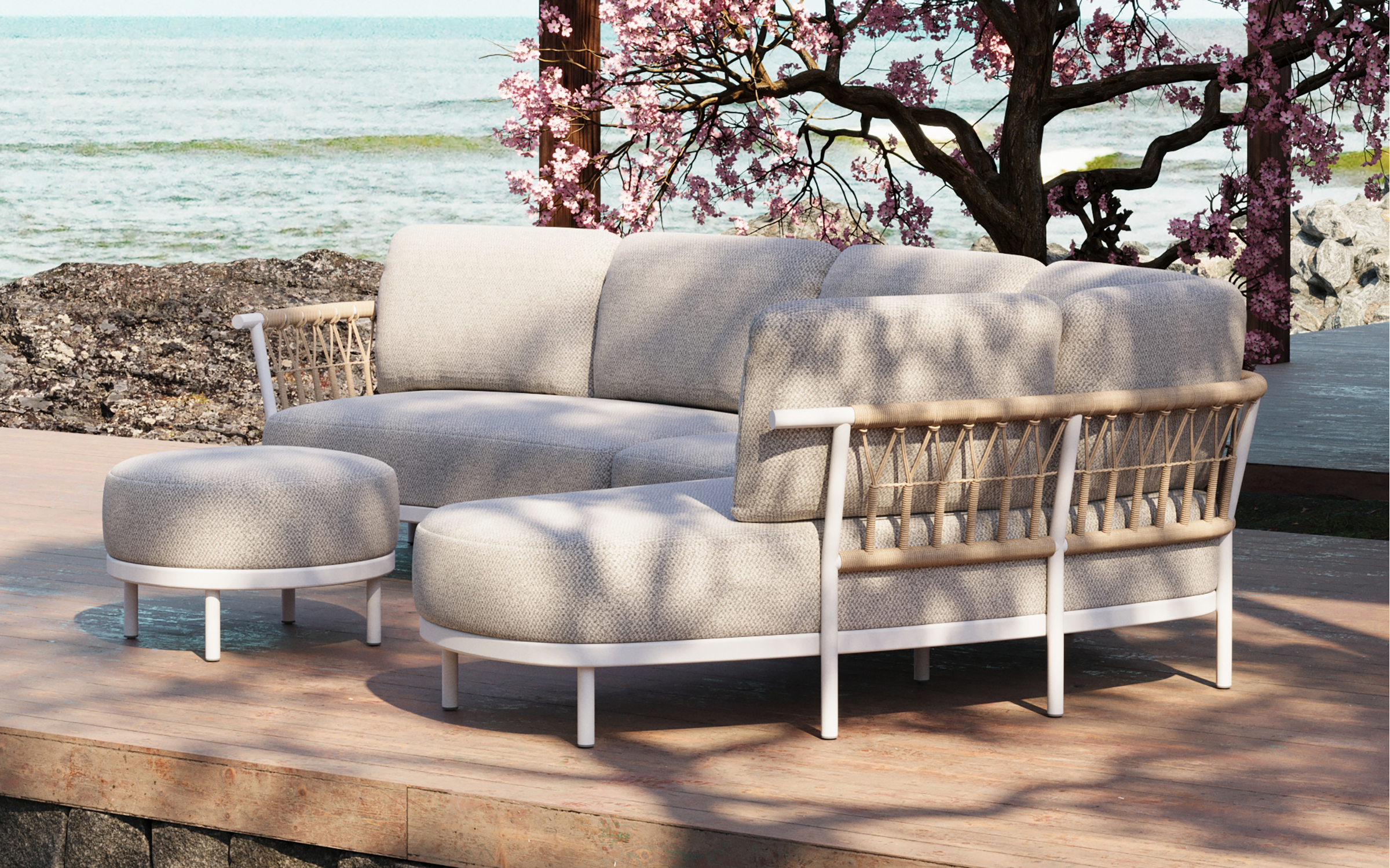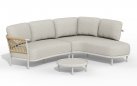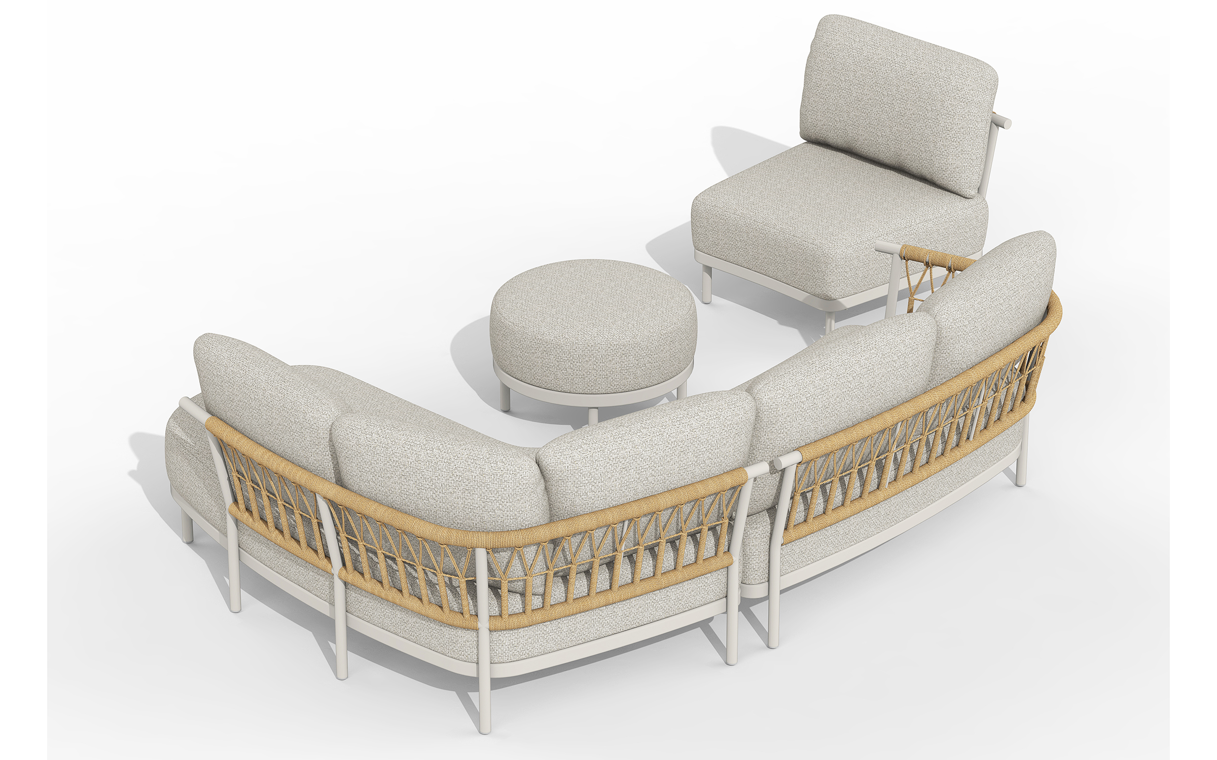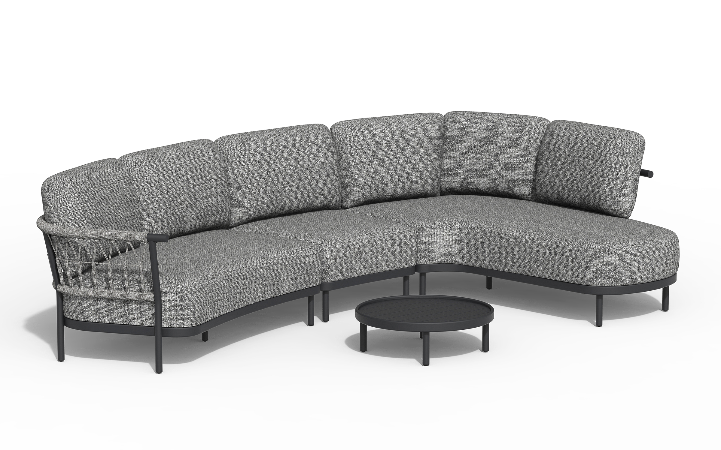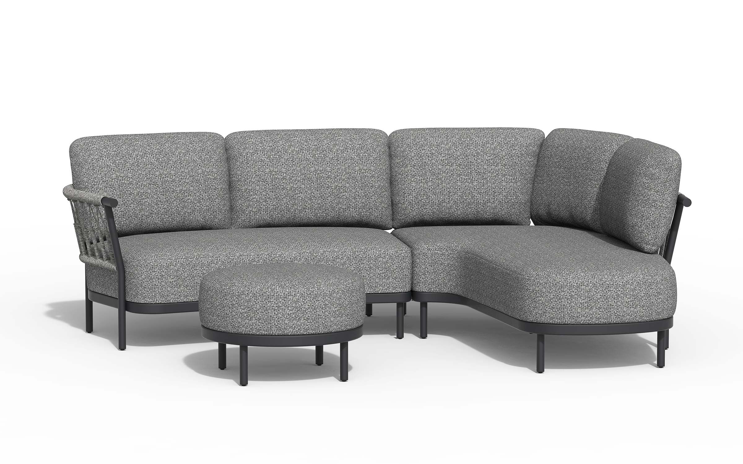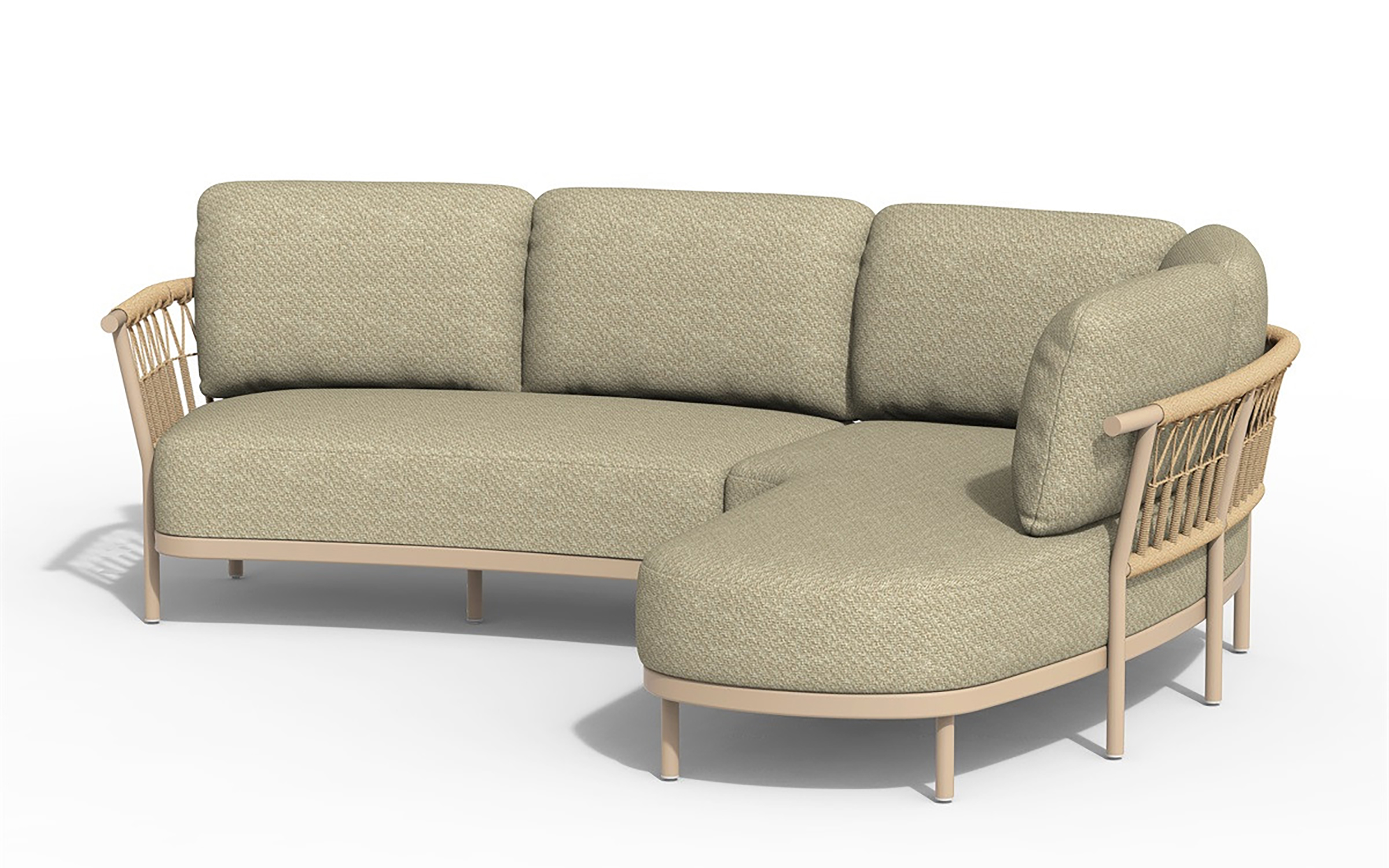 Zestaw wypoczynkowy Fresca Organic Prawy to prawdziwa perełka na tarasie dzięki swoim okrągłym, organicznym kształtom. Nowoczesna kanapa wypoczynkowa z szezlongiem od Tierra Outdoor składa się z aluminiowej ramy i jest wyposażona w grube, wygodne poduszki. Poduszki wykonane są z tkaniny Swiss Fabric Olefin, która rewelacyjnie znosi deszcz.
