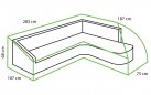 Szerokość 287 cm / Głębokość 214 cm / Wysokość 72 cm (do wysokości konstrukcji)