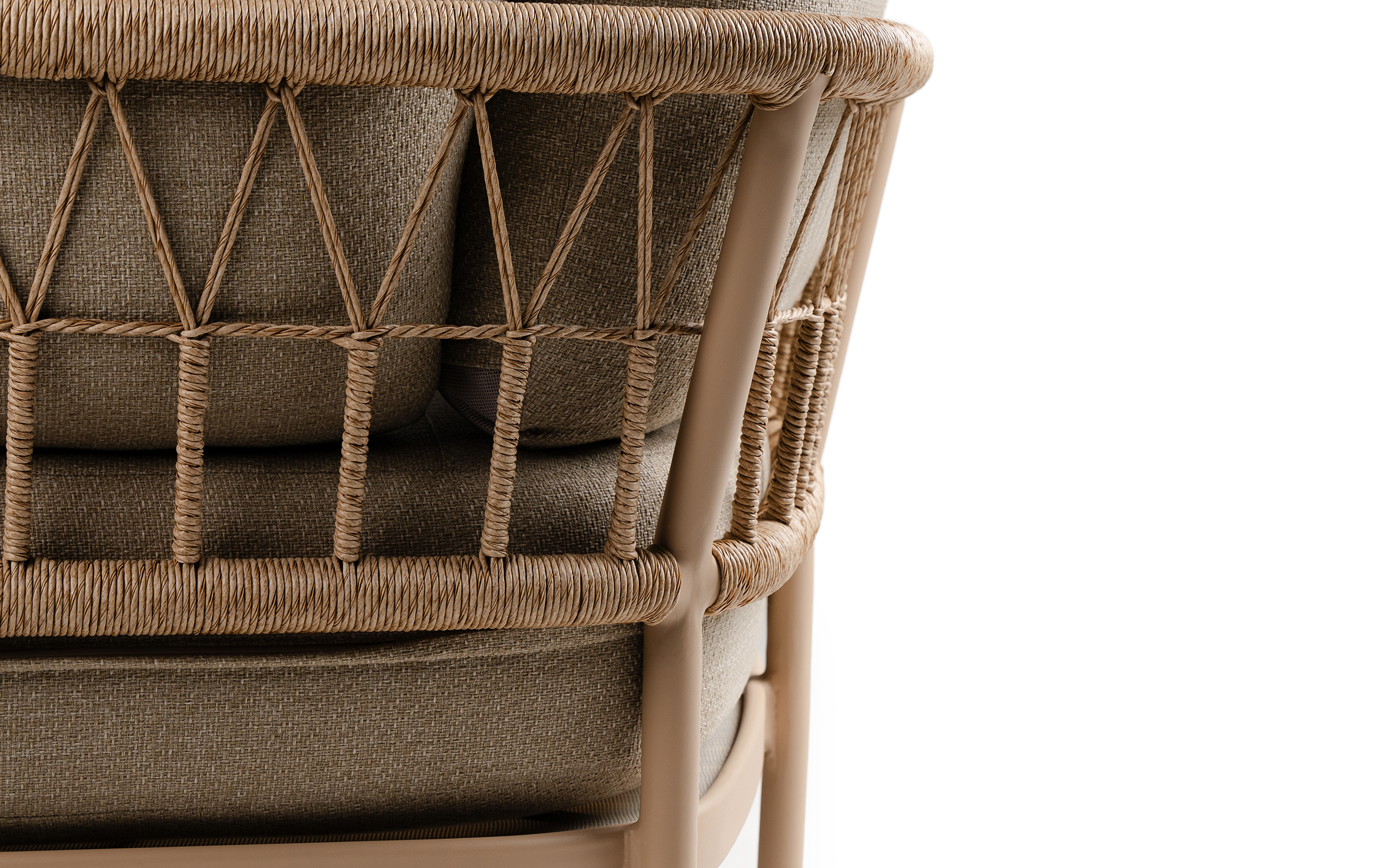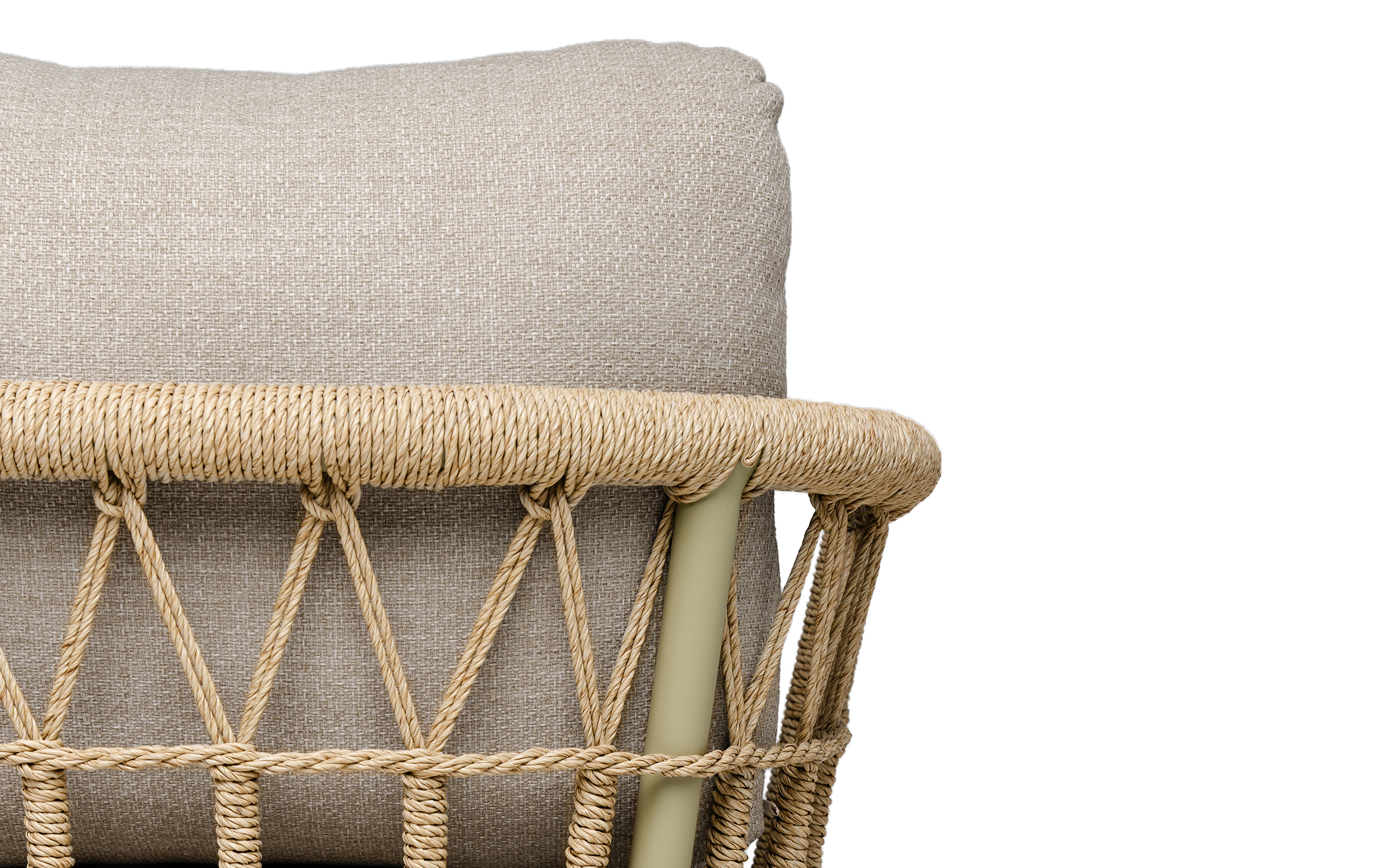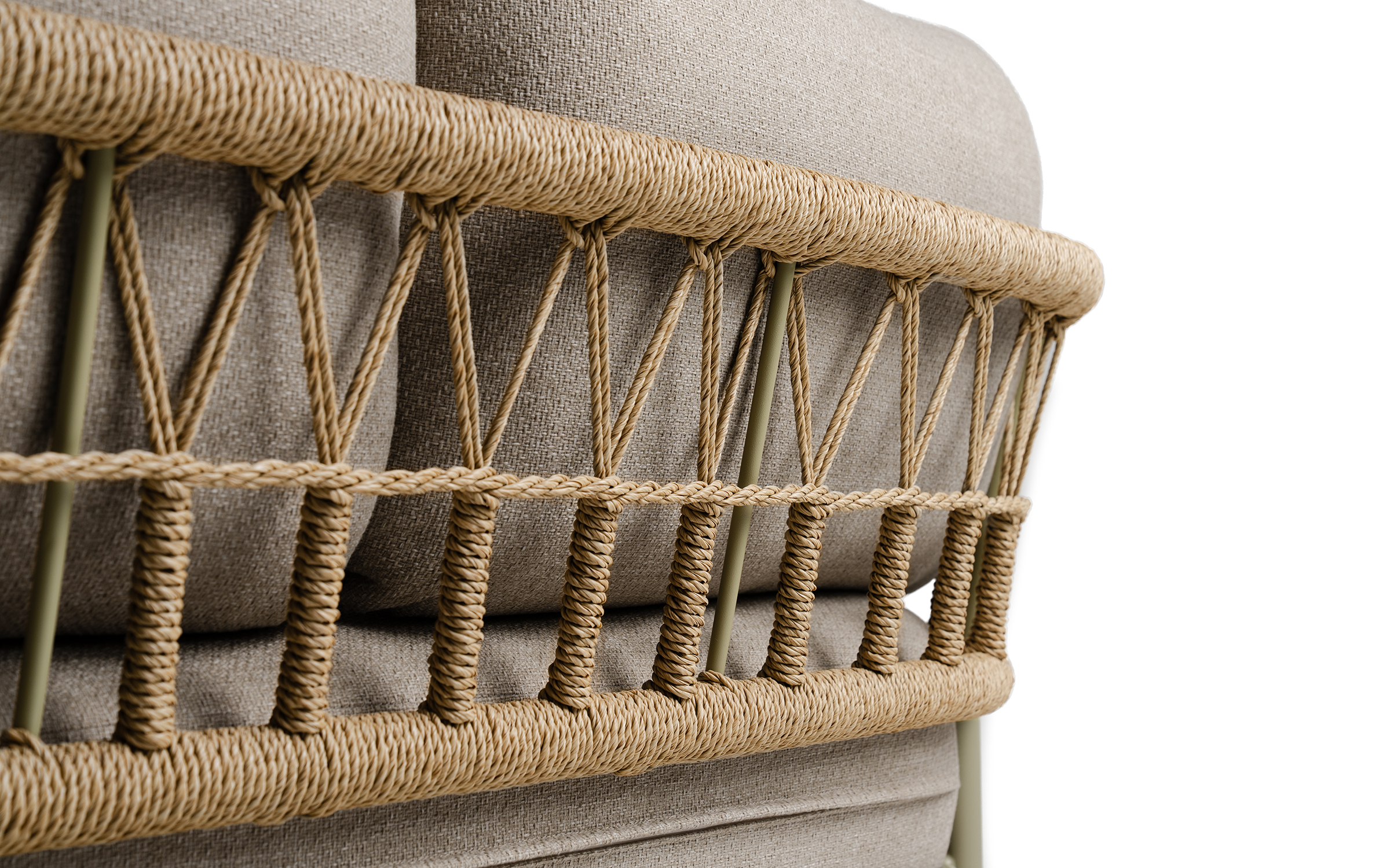 Zestaw Fresca oparty jest na aluminiowej konstrukcji z powłoką proszkową oraz plecionkę z liny polipropylenowej.