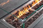 Palnik kominka wykonany ze stali nierdzewnej ukryty w kamieniach (w zestawie). Do stolika pasuje butla gazowa do 5 kg o maksymalnej wysokości 45 cm. W komplecie wąż i pokrowiec na stolik.