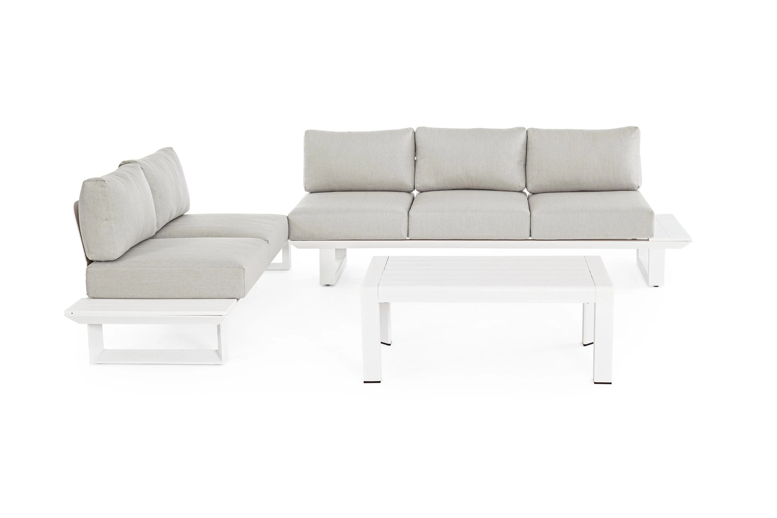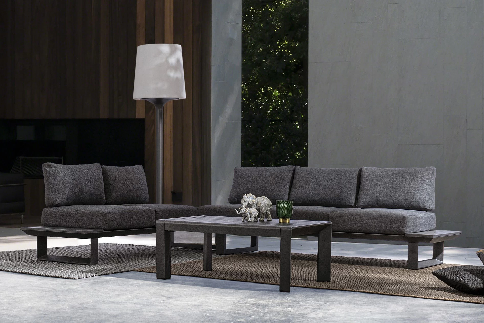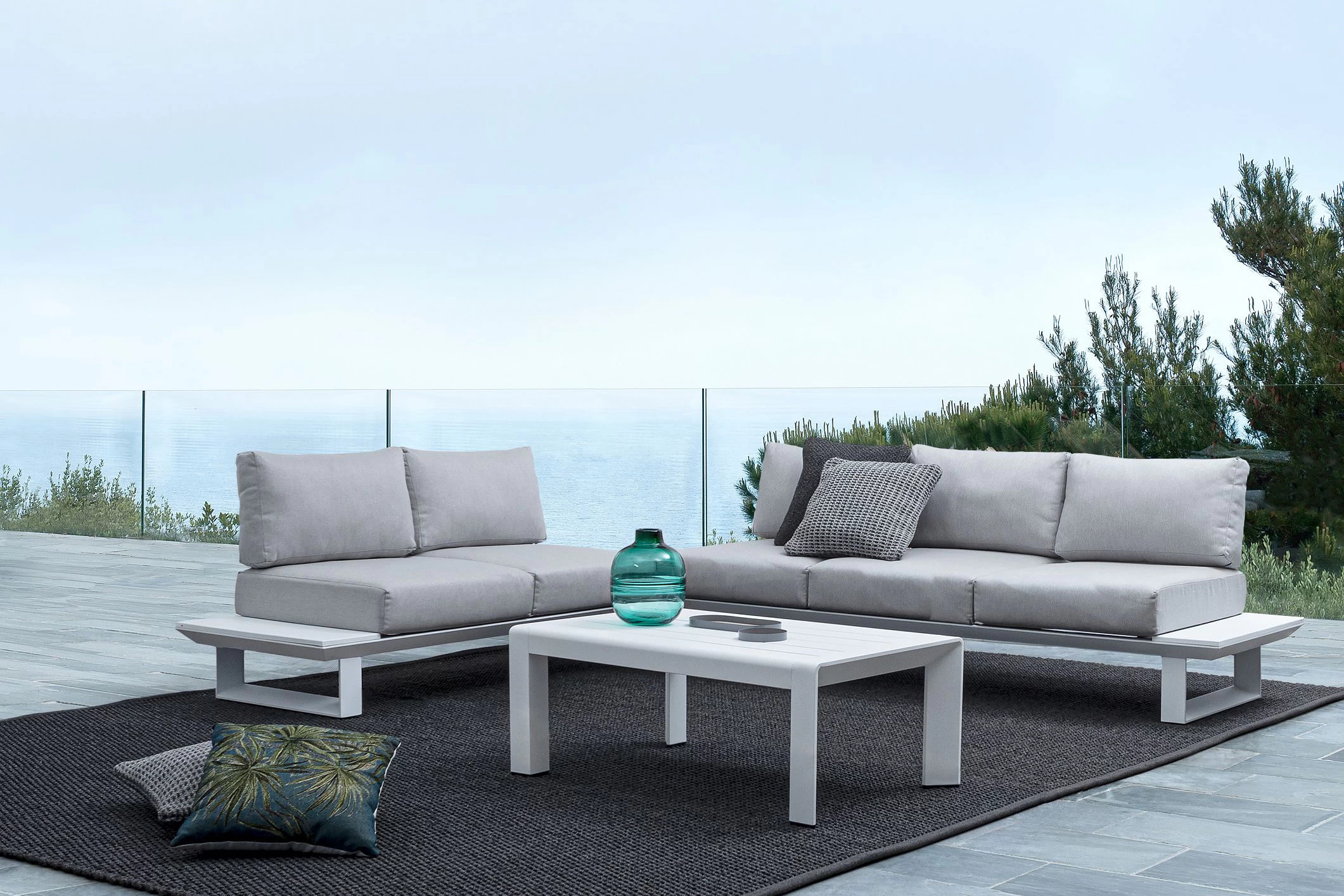 Narożnik na taras platformowy do nowoczesnego domu. Grube, wygodne poduszki. Kolory biały lub ciemnoszary.