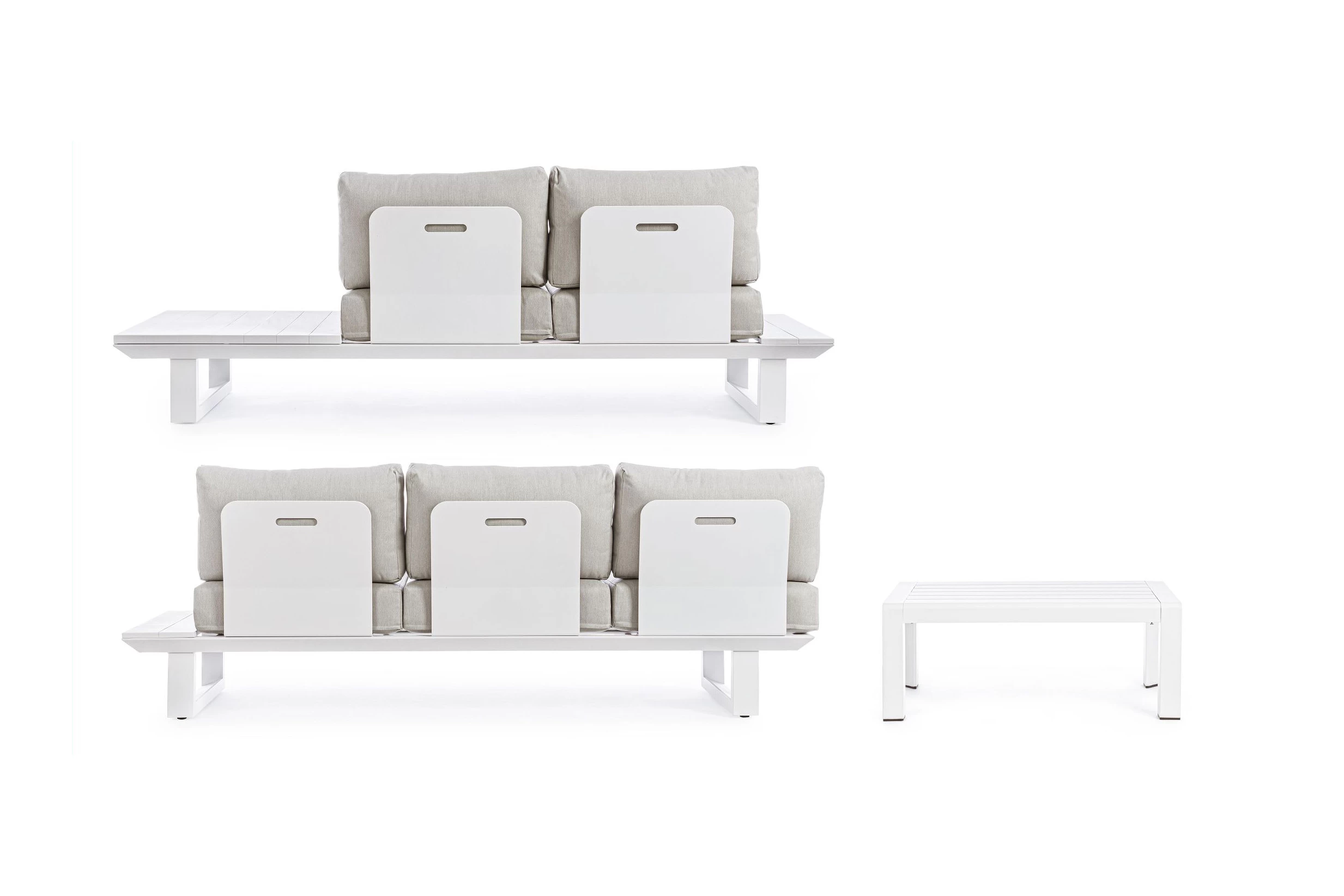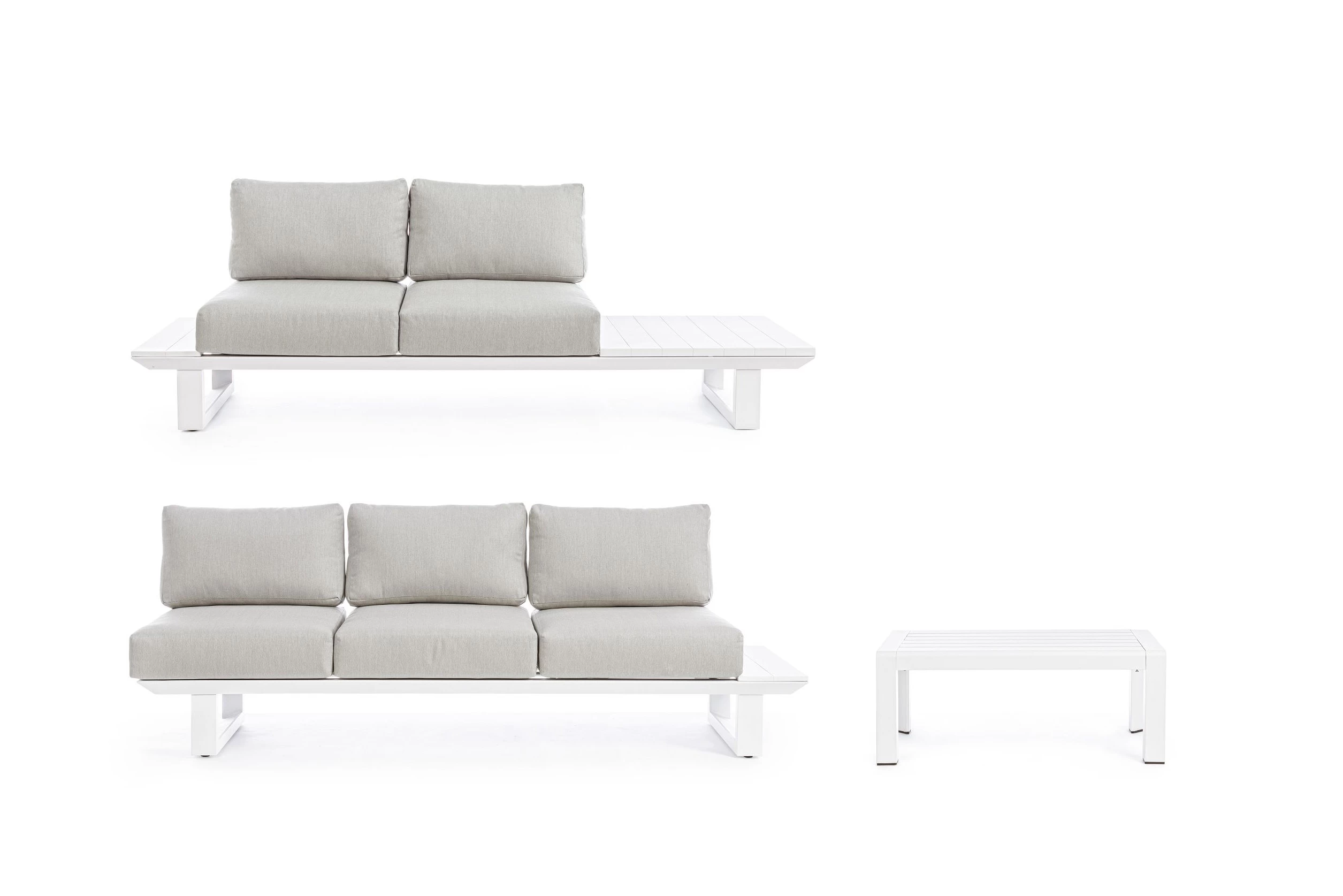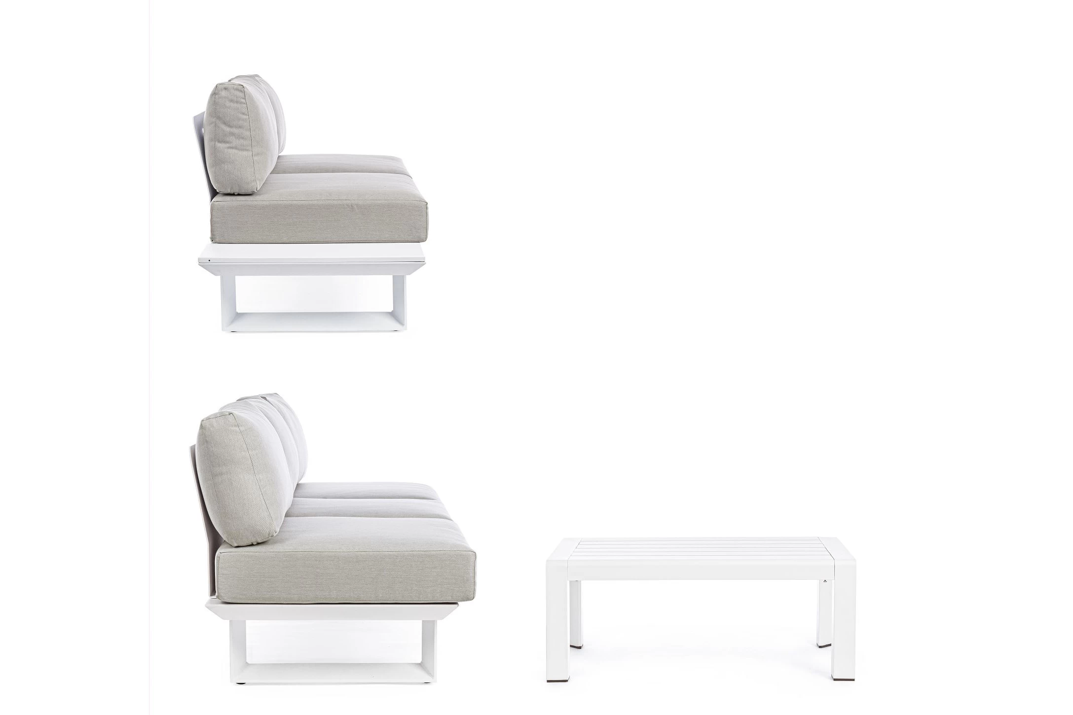 Poduszki wodoodporne ze zdejmowanymi poszewkami z materiału Olefin. Nogi i oparcia do montażu.