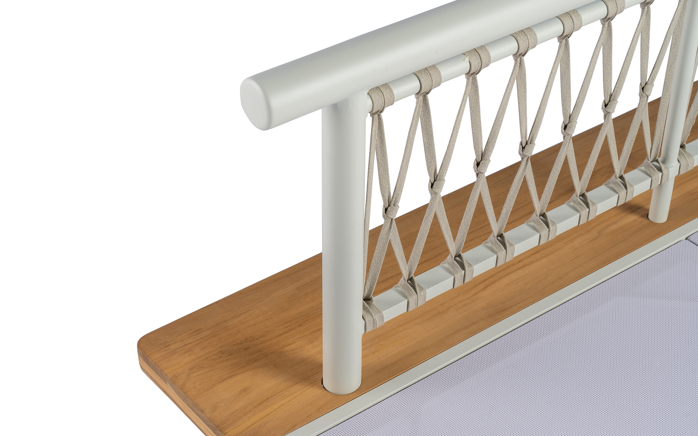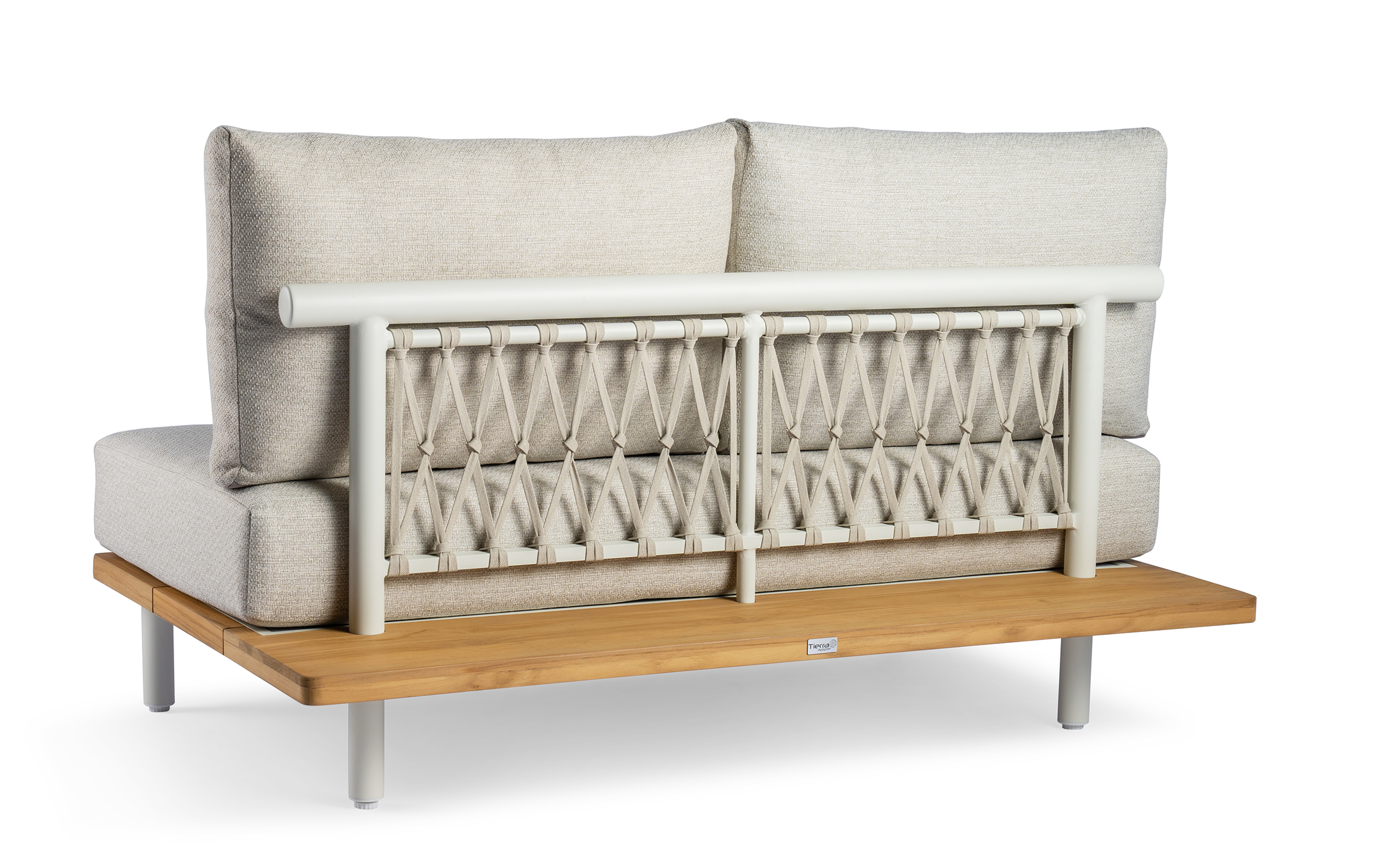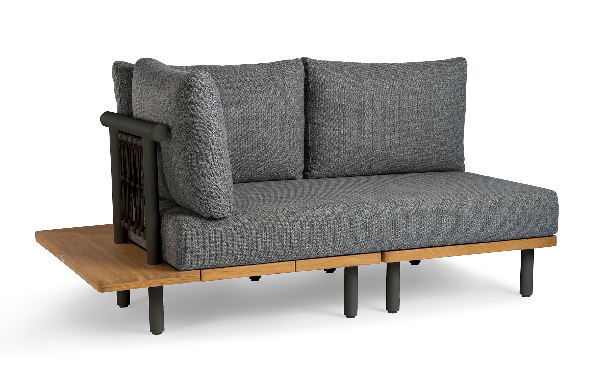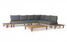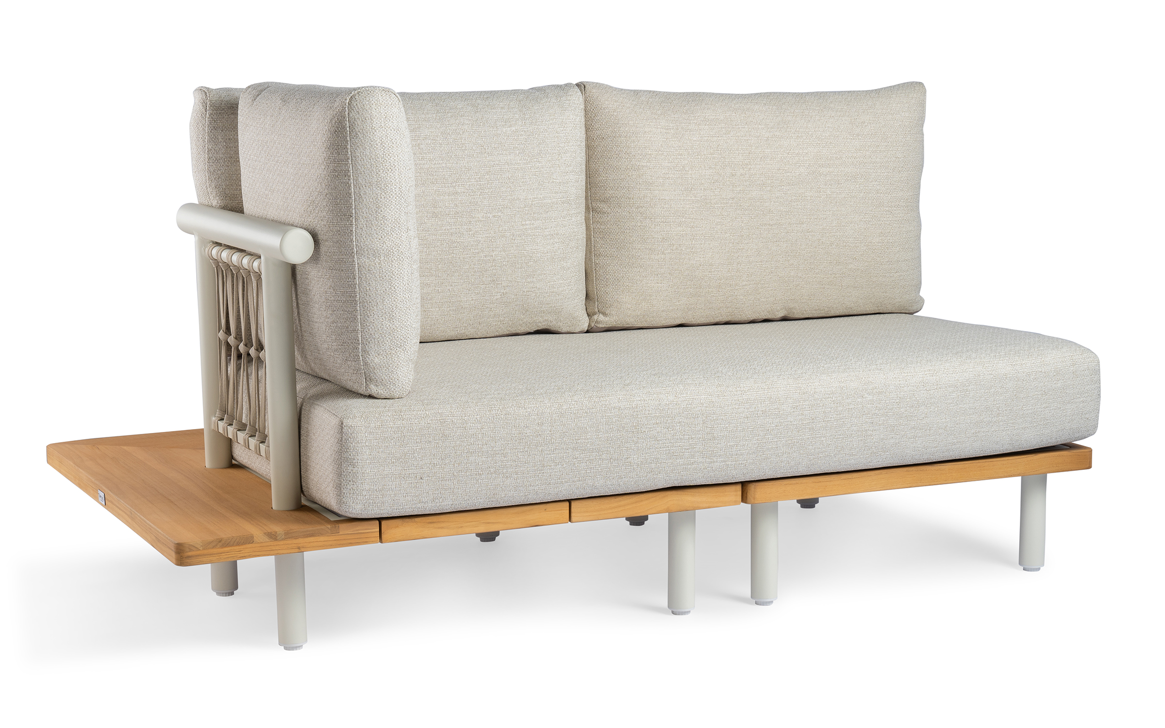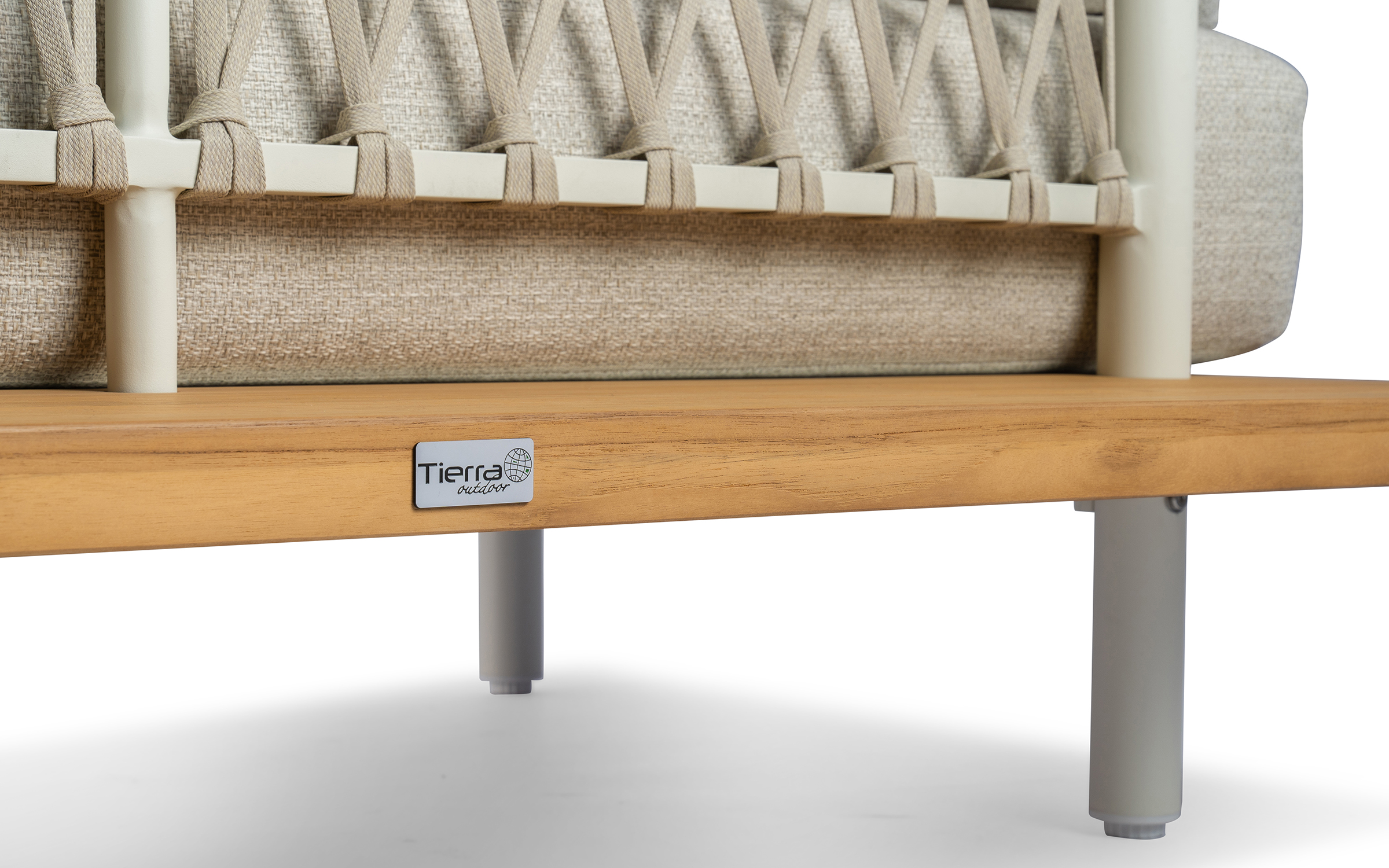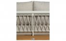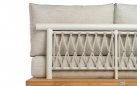 Kytsu ma platformę wykonaną z ekstra grubego drewna tekowego FSC, przyjaznego dla środowiska, z aluminiową nogą. Oparcie wykonane jest z pasów polipropylenowych, a poduszki są wykonane z materiału odpornego na warunki atmosferyczne.