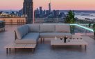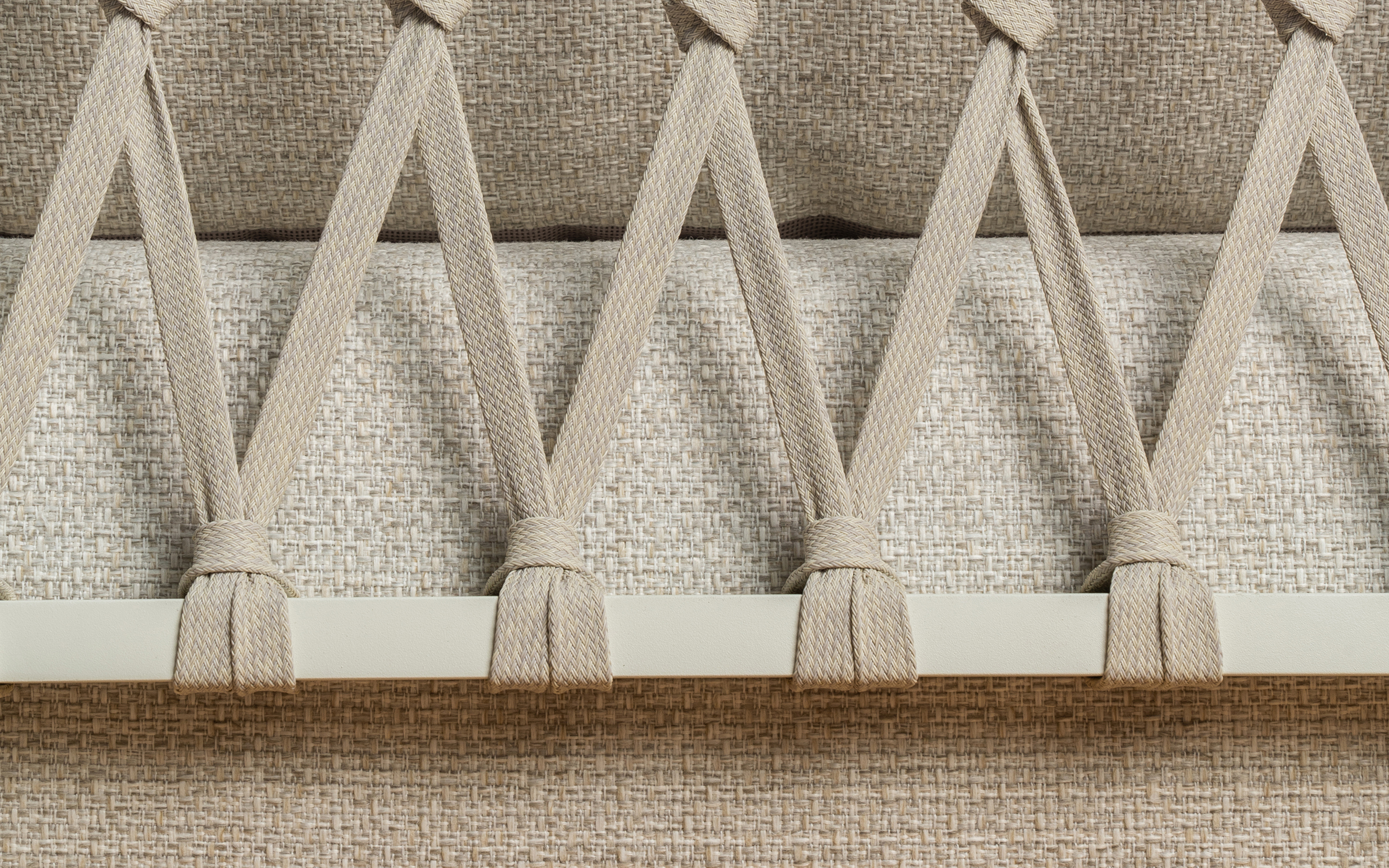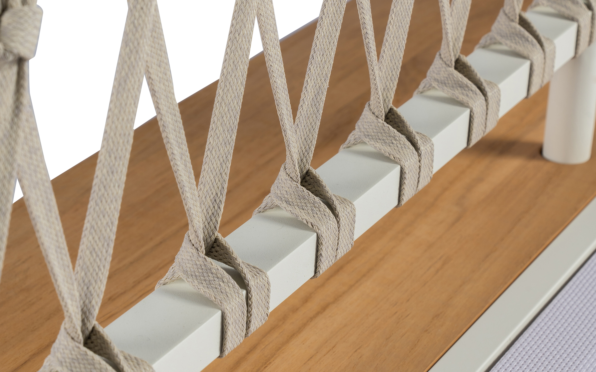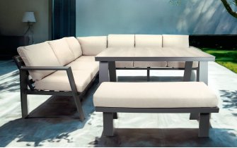 Meble oparte są na aluminiowej konstrukcji z powłoką proszkową oraz plecionkę z pasów polipropylenowych.