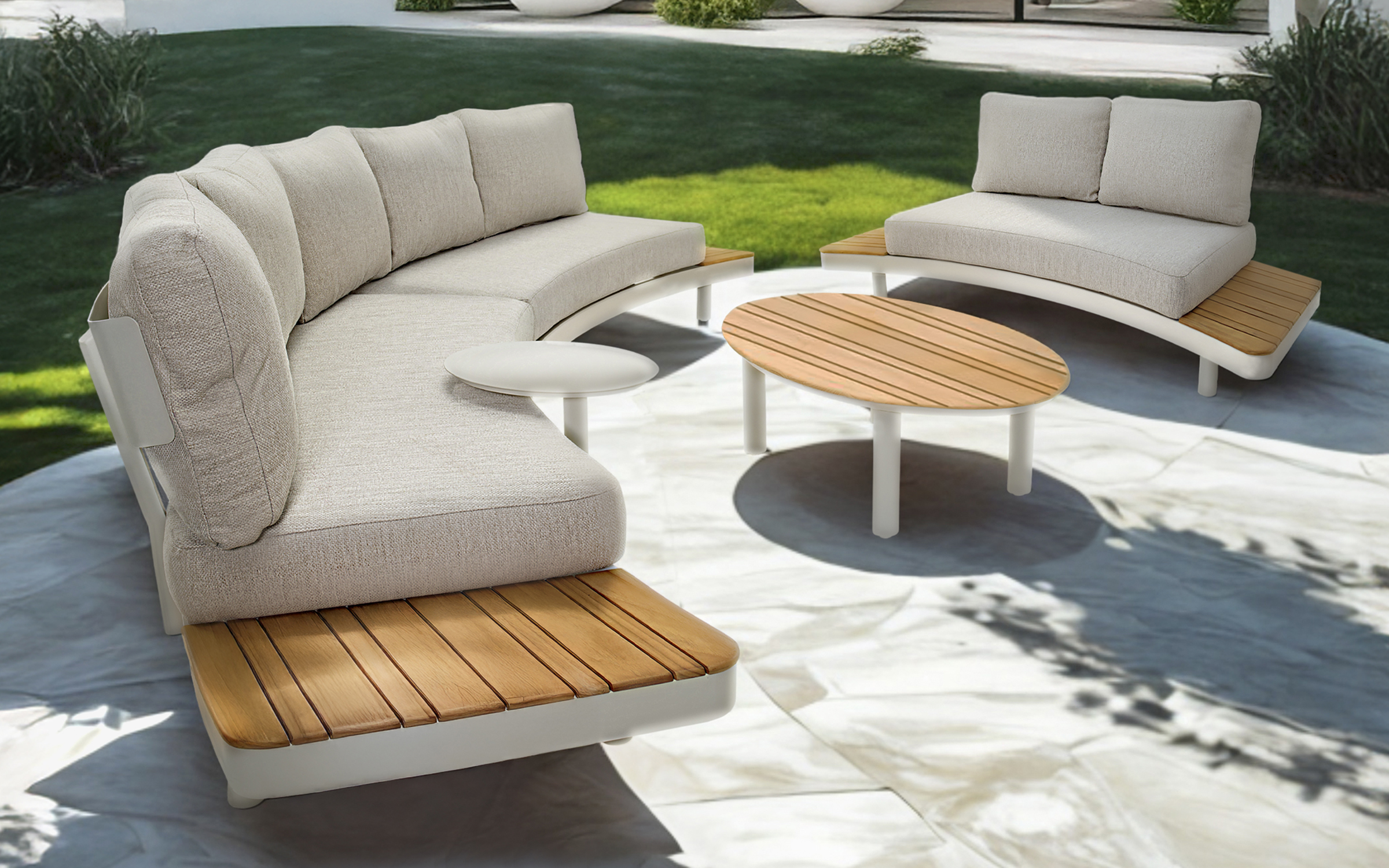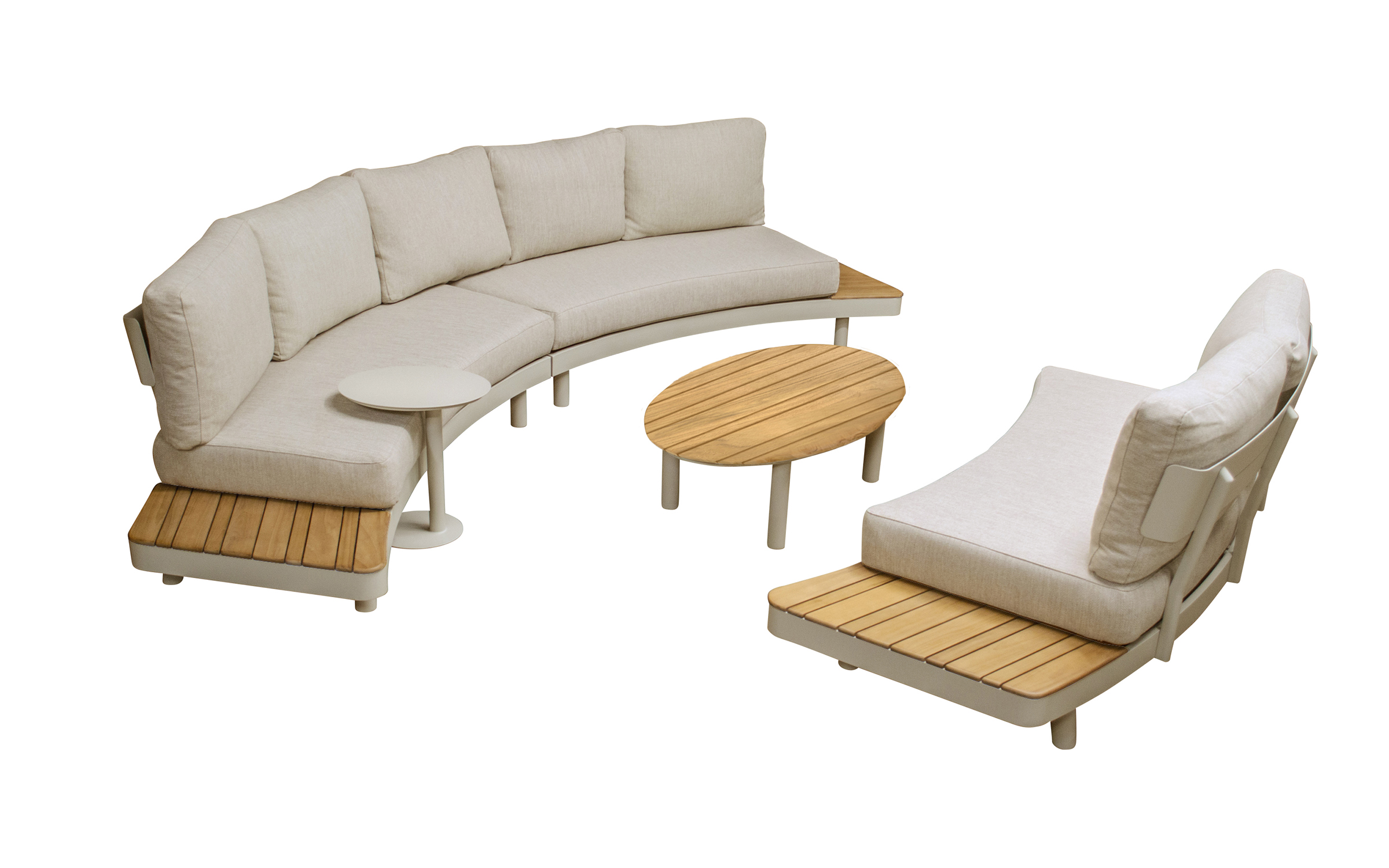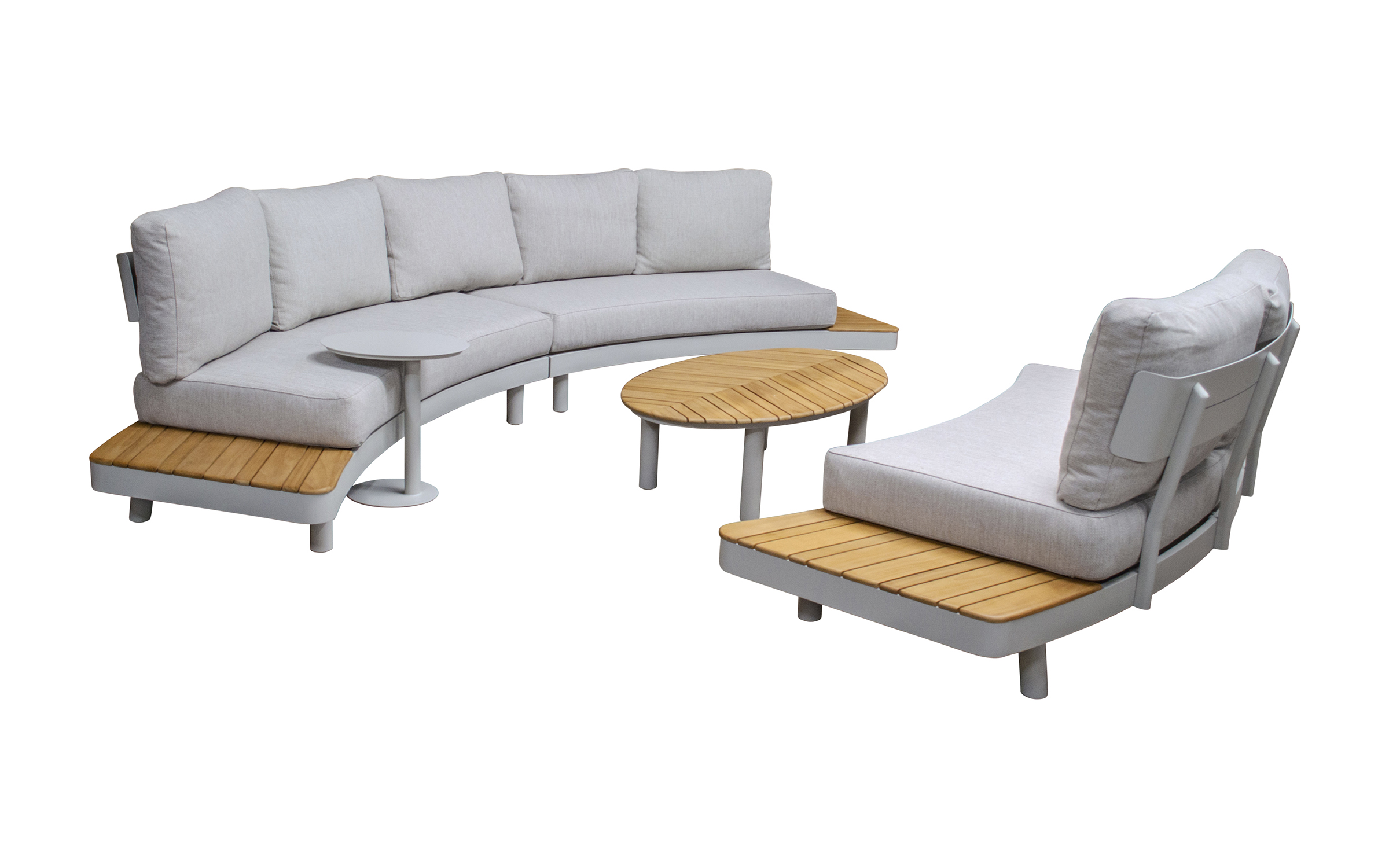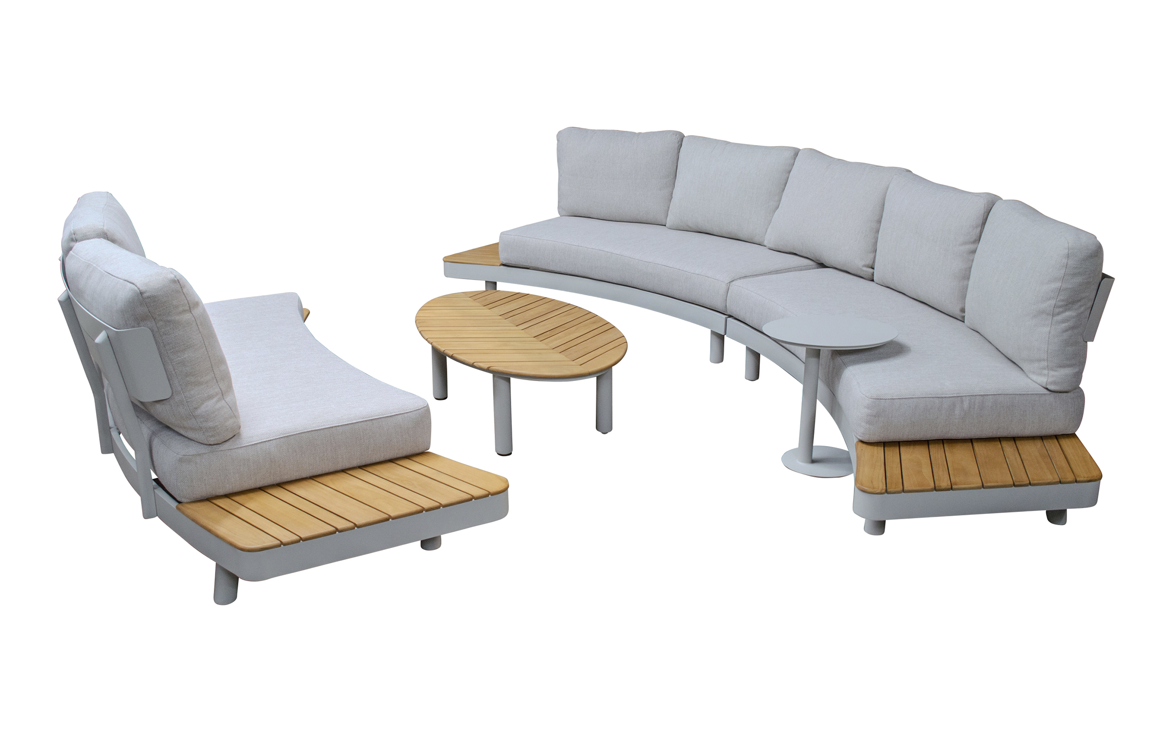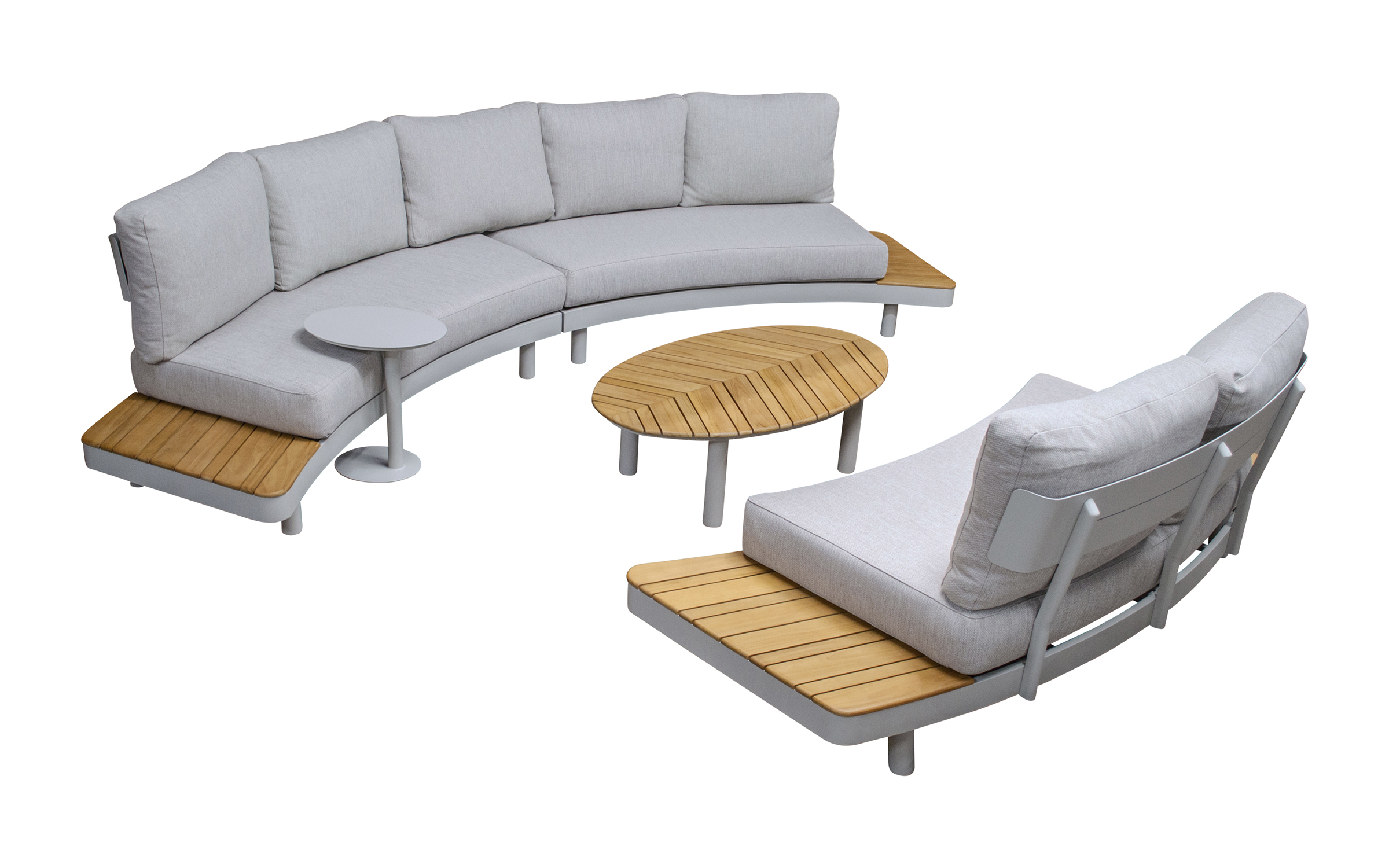 LOUNZA Zestaw wypoczynkowy ogrodowy z półokrągłymi sofami - teak i aluminium