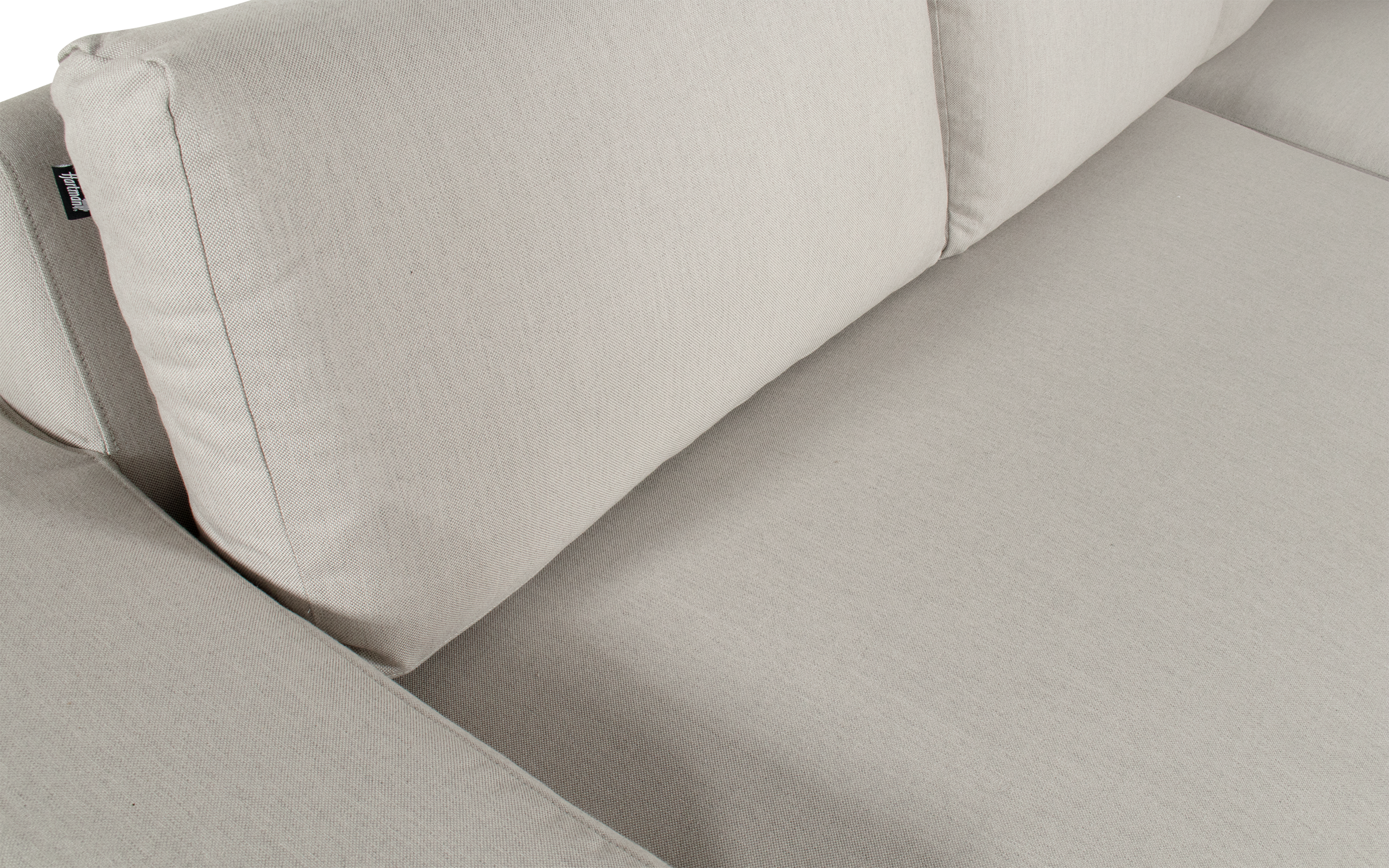 Tapicerka wykonana jest z wysokiej jakości materiału Sunbrella. Materiał ten składa się z akrylu barwionego w masie, w którym kolorowe pigmenty osadzane są we włóknie podczas produkcji, co zapewnia trwałe i intensywne kolory. Tkanina jest odporna na promieniowanie UV, wiatr oraz warunki atmosferyczne, dzięki czemu poduszki można pozostawić na zewnątrz przez cały rok. Sunbrella wyróżnia się również trwałością kolorów oraz właściwościami oddychającymi, odporne jest na zabrudzenia i pleśń, co czyni go idealnym materiałem do użytku zarówno wewnątrz, jak i na zewnątrz. Wnętrze tapicerki wykonane jest z pianki "Quick Dry Foam", która posiada strukturę komórkową z otwartymi porami, porównywalną do funkcji drenażu. Dzięki temu woda może swobodnie wypływać, a unika się nieprzyjemnych zapachów i powstawania pleśni.