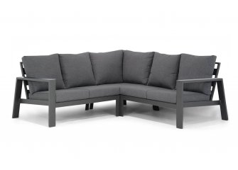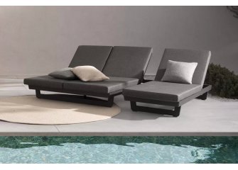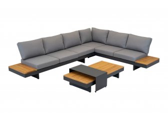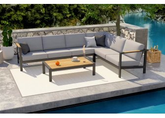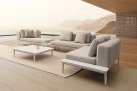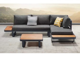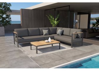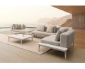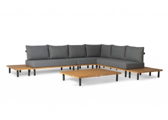 Narożnik na taras platformowy z kolekcji MATRIX. Kolekcja matrix pozwala na stworzenie z 1 elementu modułowego (konstrukcja pozwala na montaż oparć na dowolnej krawędzi podstawy) oraz kwadratowego stolika przeróżnych kompozycji, w tym proponowanego tutaj narożnika.