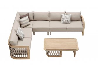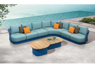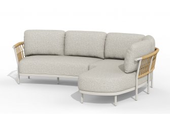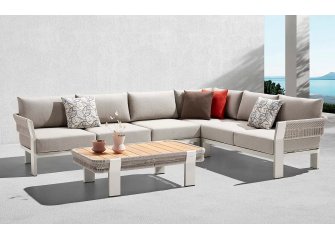 Poduszki wodoodporne ze zdejmowanymi poszewkami na siedziskach i niezdejmowalne na oparciach z materiału Olefin. Nogi i oparcia do montażu.