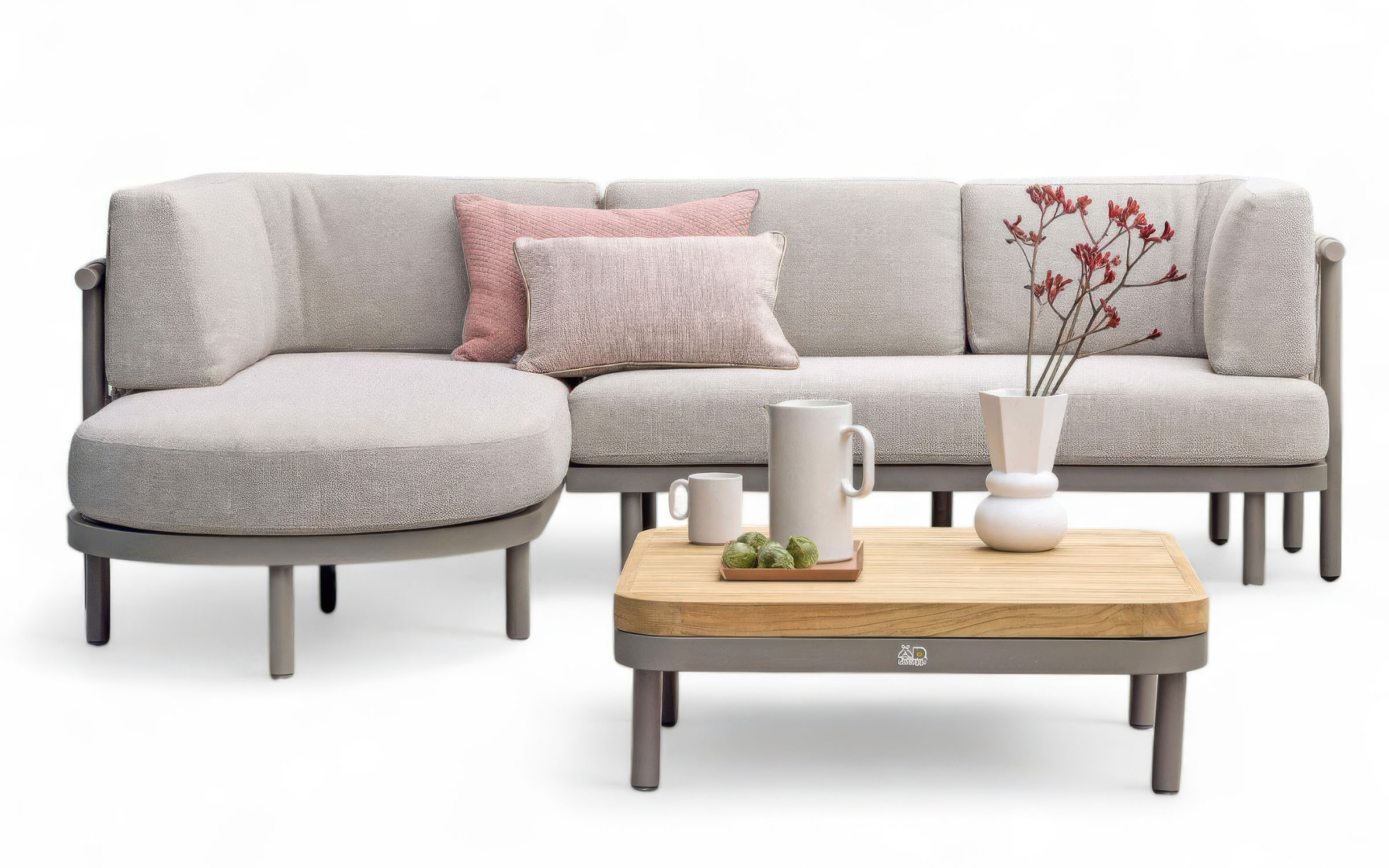 Stolik MAUI 40×85 cm to elegancki stolik kawowy, zaprojektowany jako centralny element zestawów wypoczynkowych MAUI. Jego wydłużona forma sprawia, że doskonale sprawdza się między sofami, szezlongami lub fotelami. Blat z naturalnego drewna teakowego osadzony jest na lekkiej, aluminiowej ramie w kolorze taupe. Idealny do serwowania napojów, przekąsek lub dekoracji tarasowych.