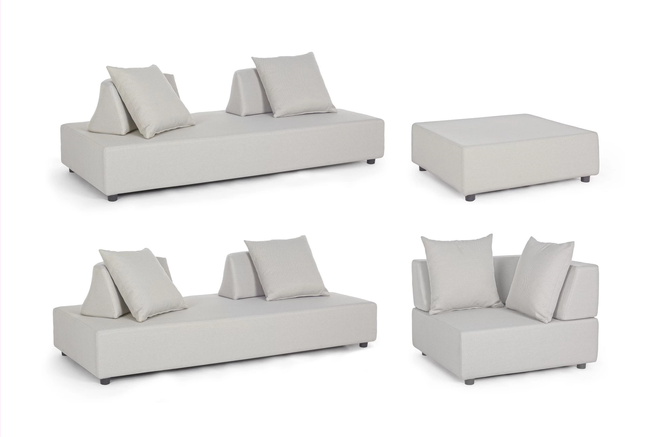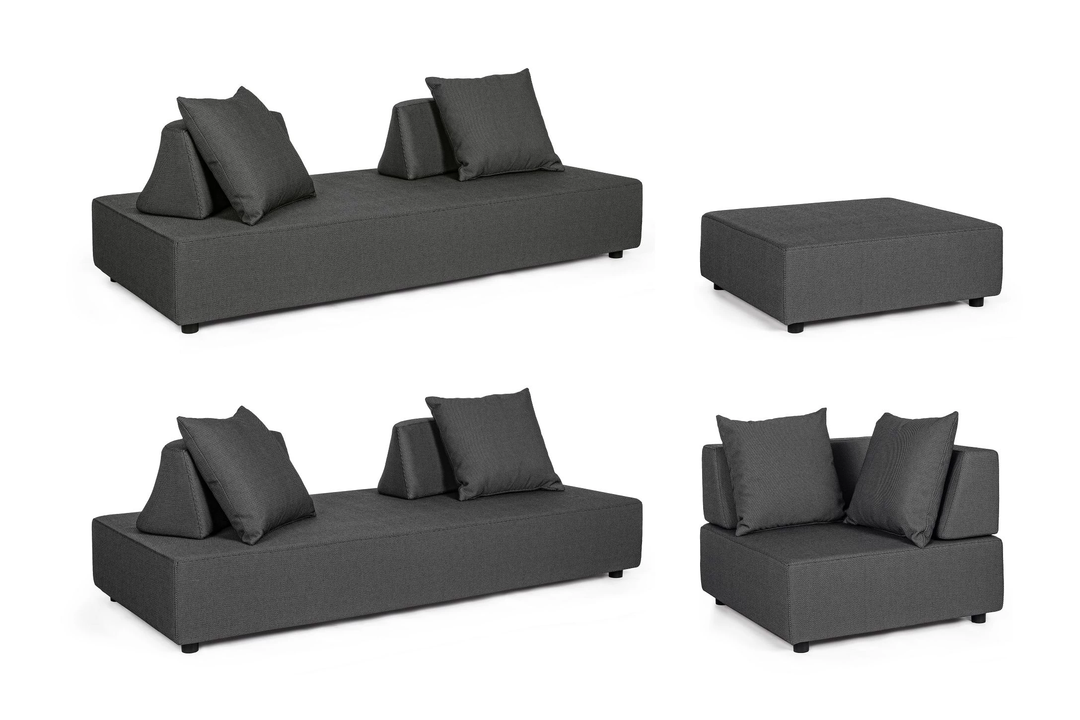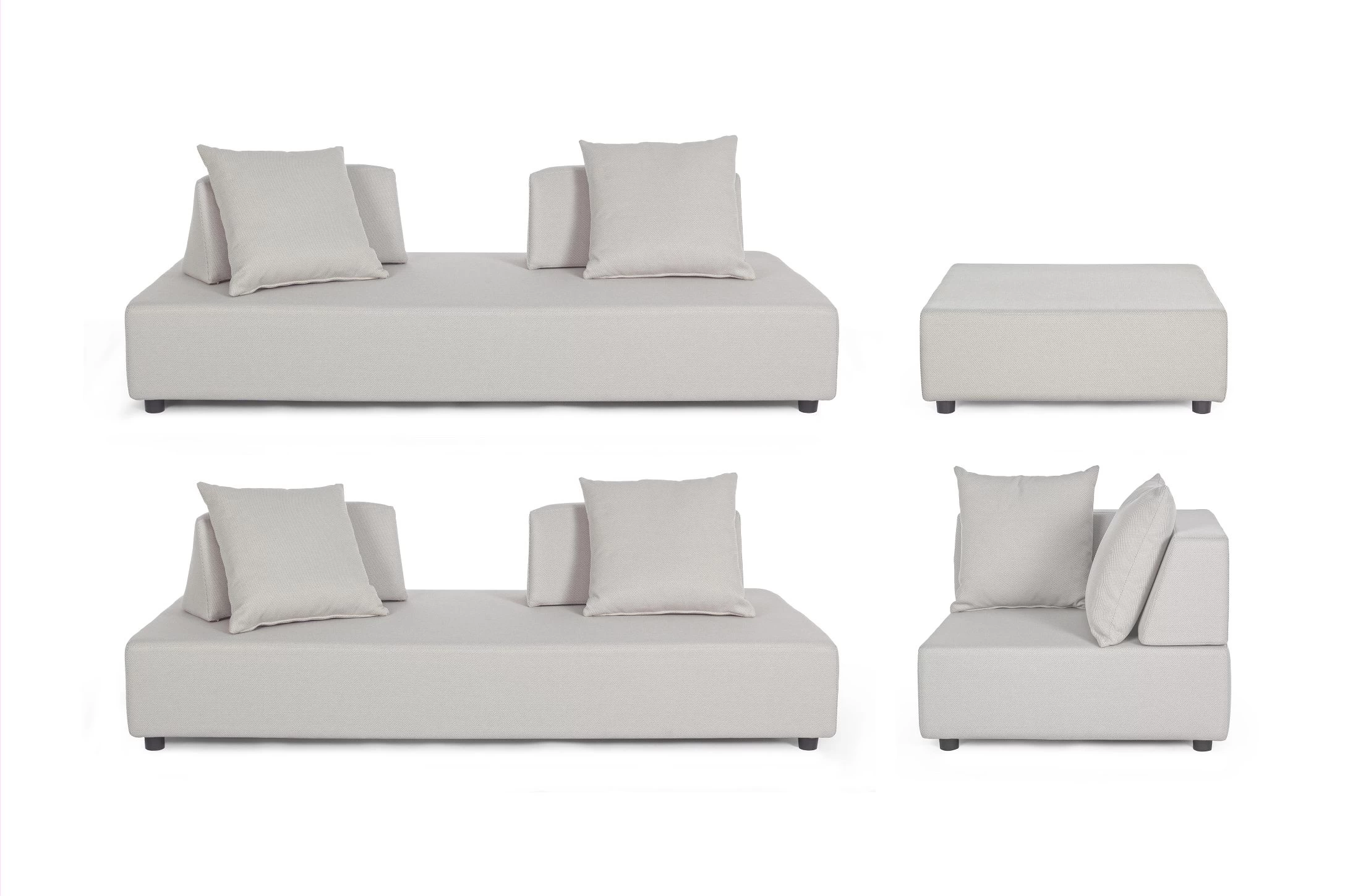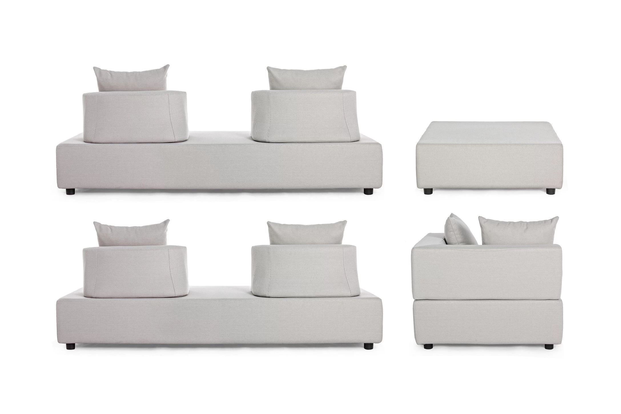 Wypełnienie poduszek do użytku na zewnątrz z szybko schnącej pianki odpornej na wilgoć / Siedziska (38kg/m3) / oparcia (20kg/m3).