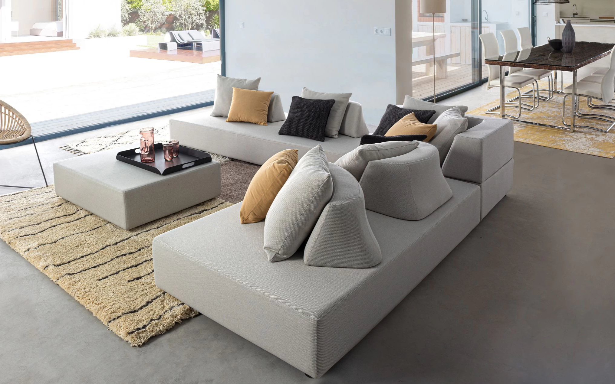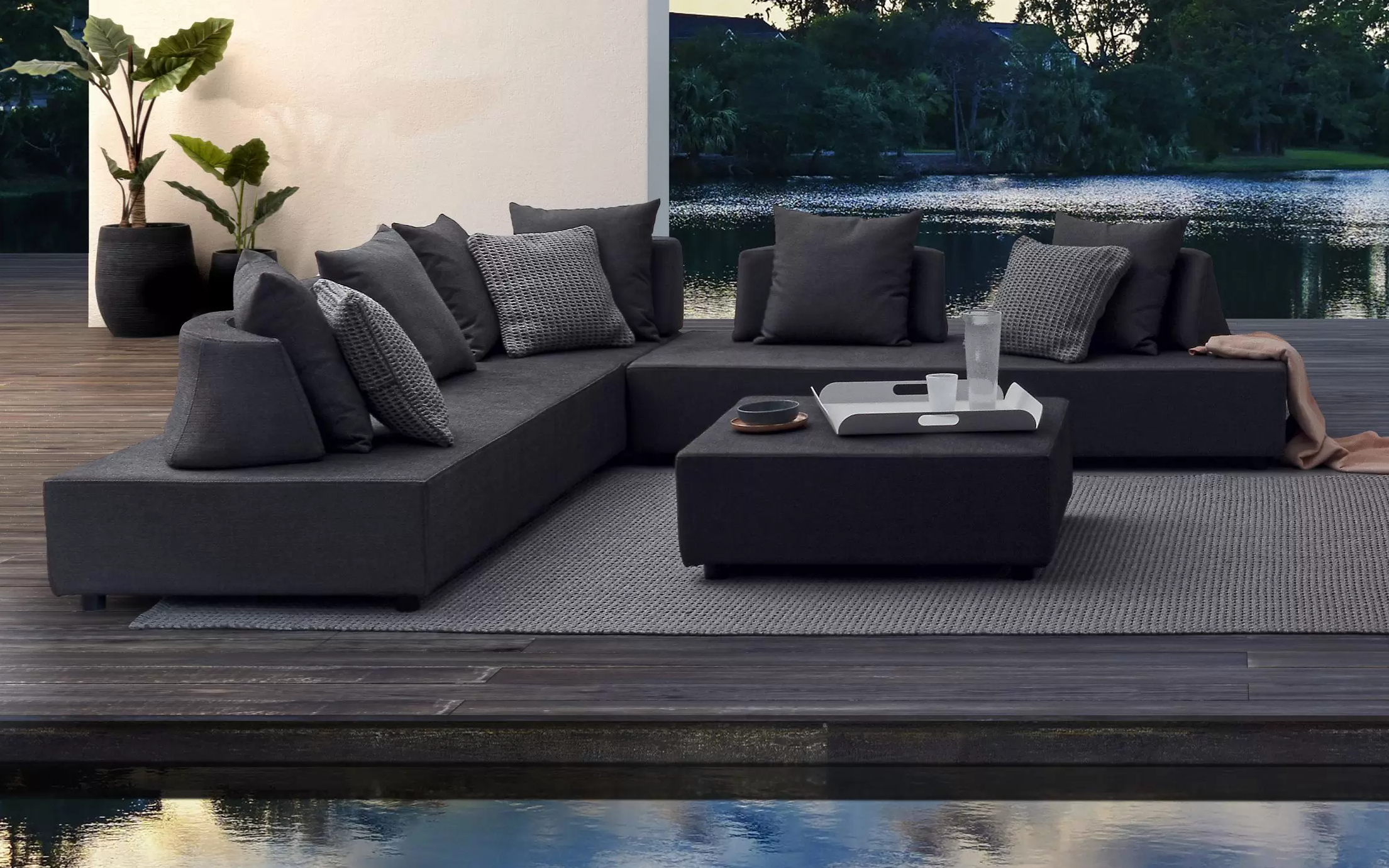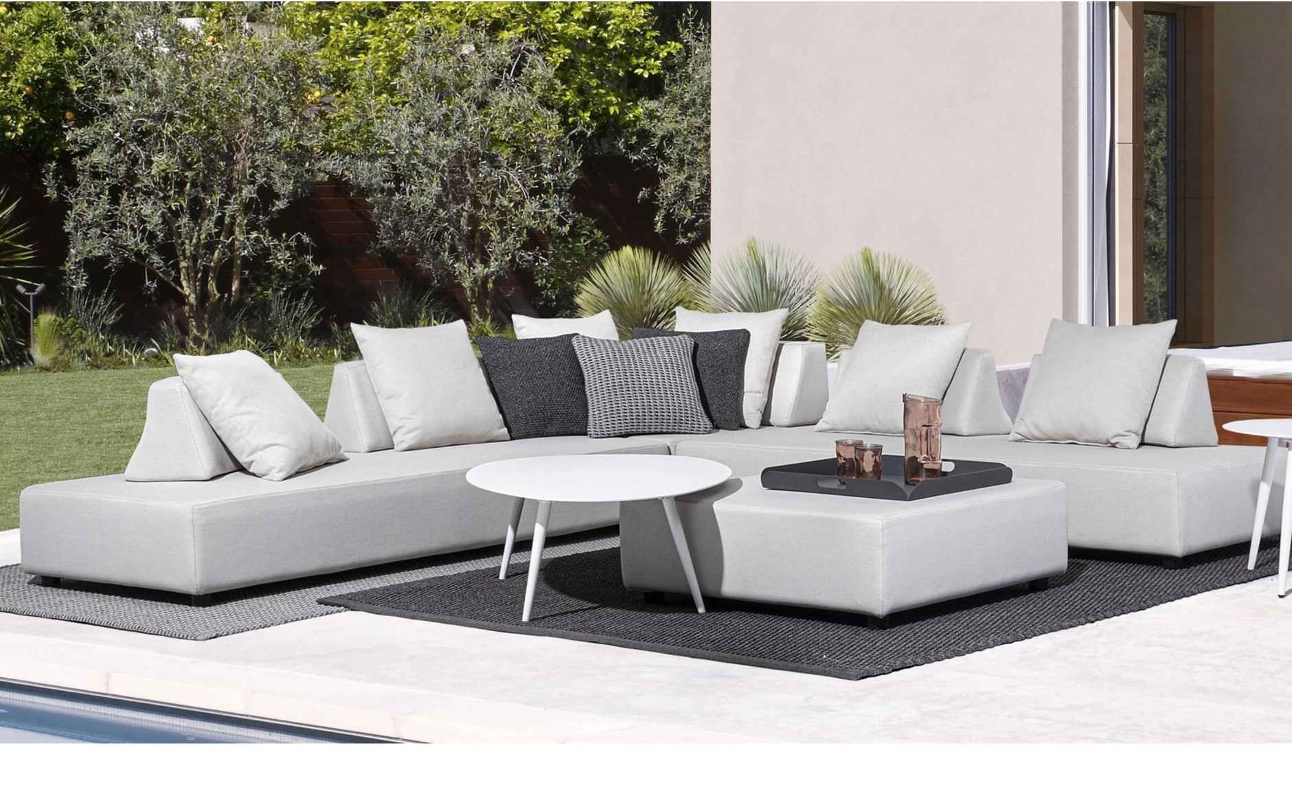 Narożnik ogrodowy PIPER na nowoczesny taras. Wykonany z materiałów przeznaczonych do użytku na zewnątrz.