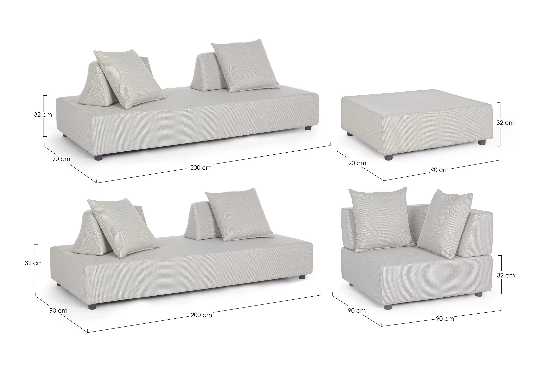 Szerokość 90 cm / Głębokość 90 cm / Wysokość 32 cm