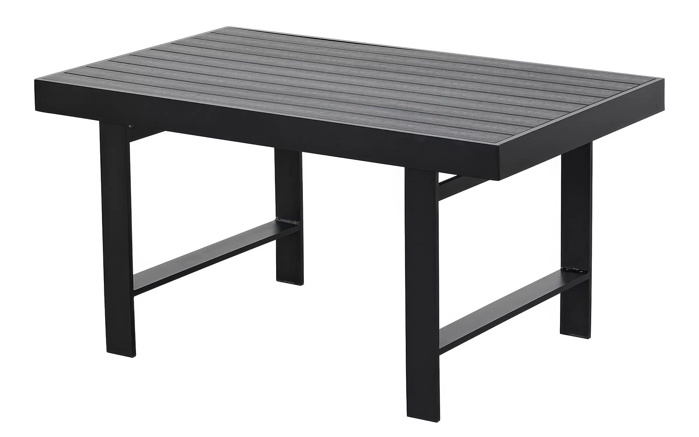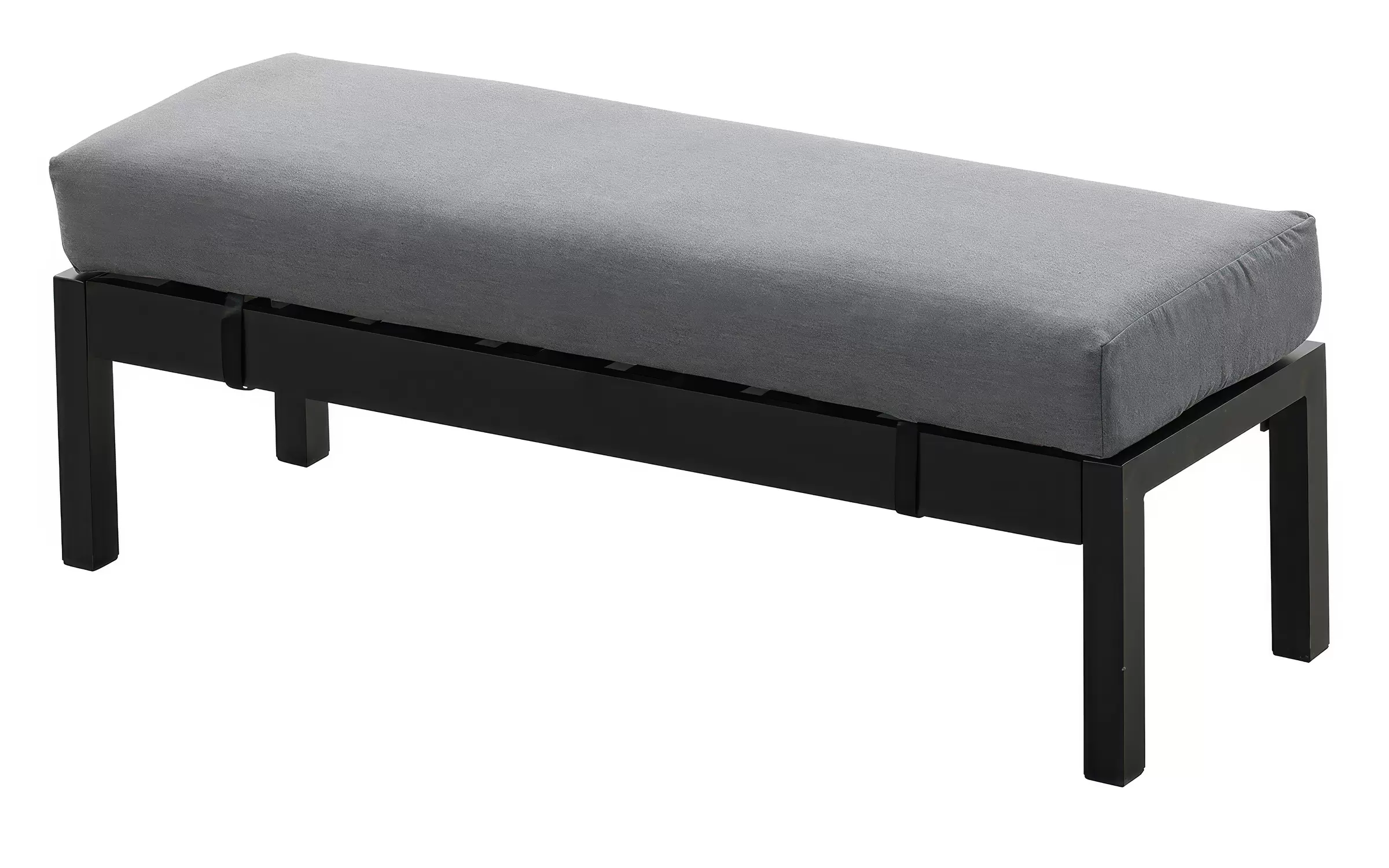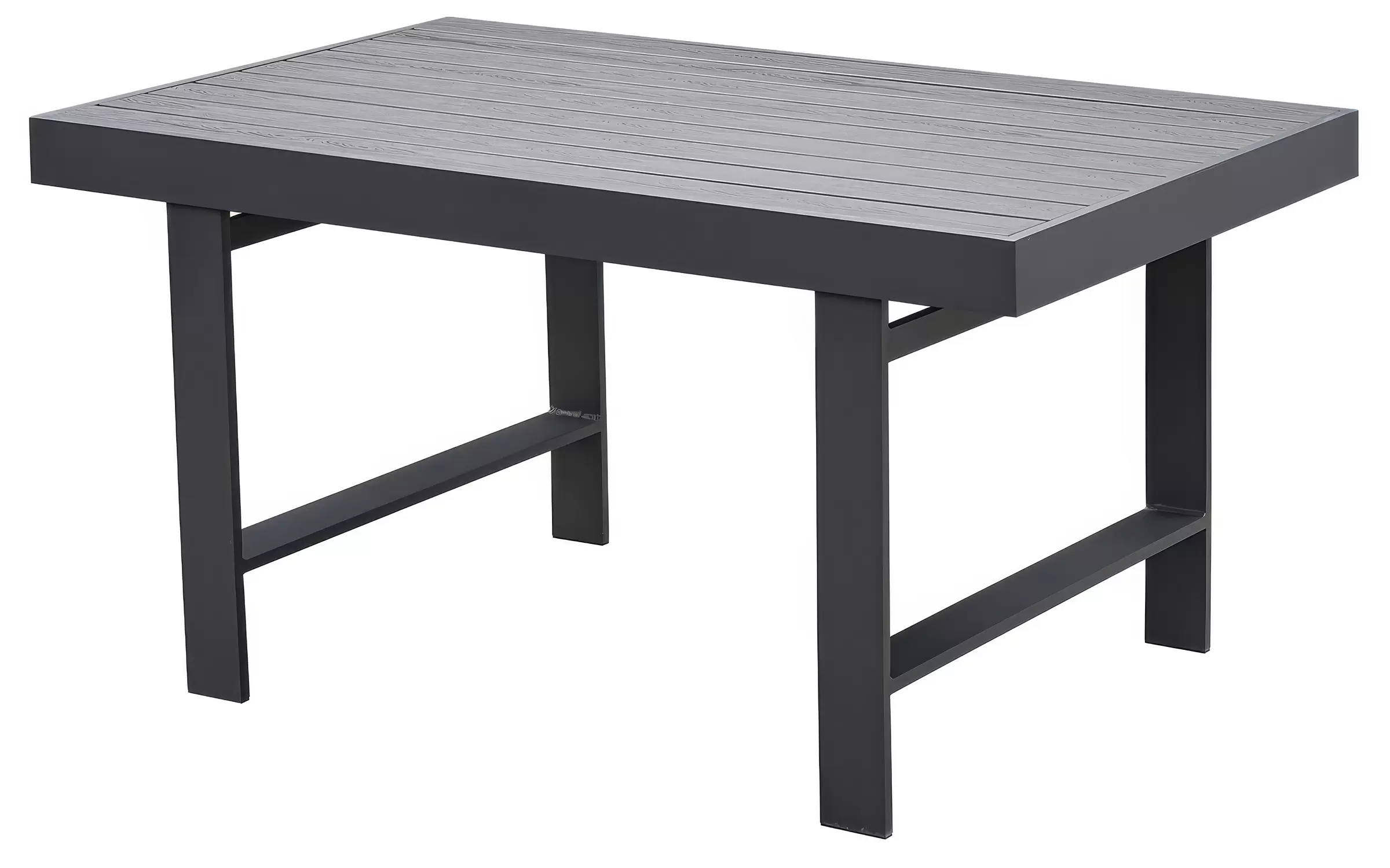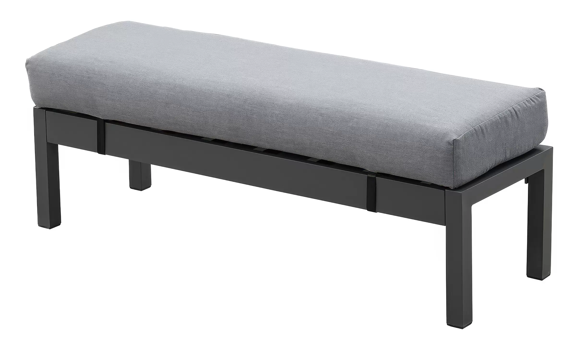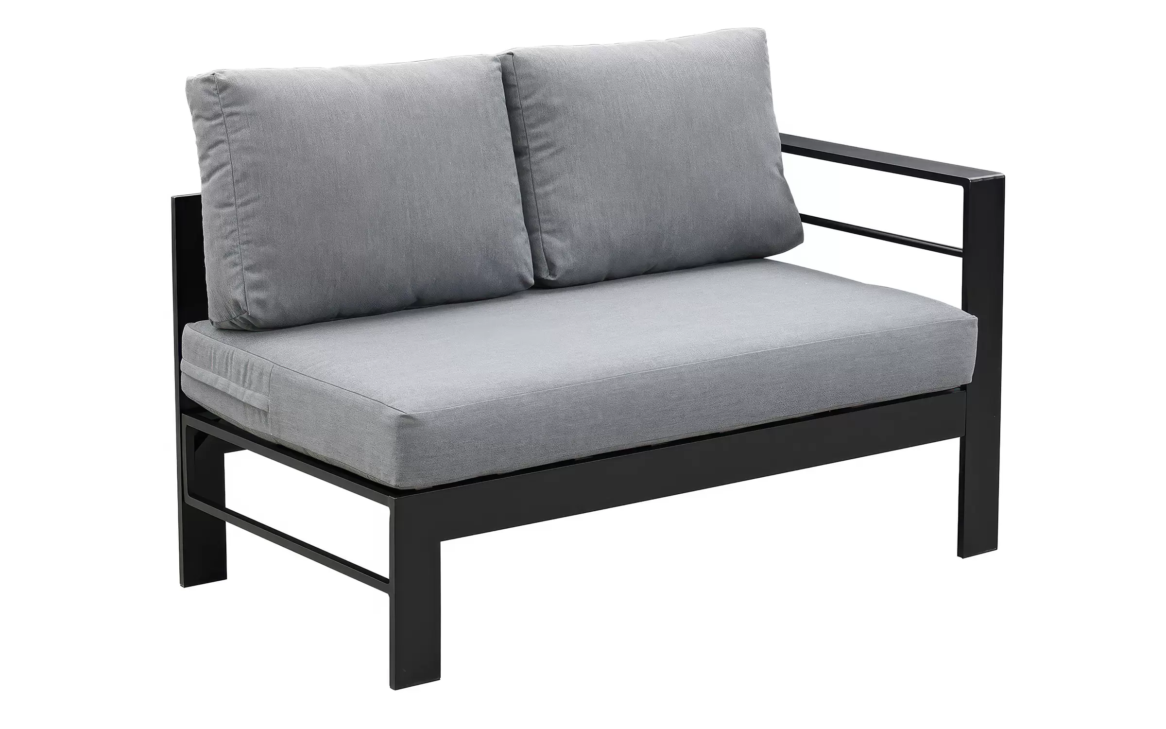 Narożnik na taras z bokami z materiału tetoron z wkładami gumowymi. Grube, wygodne poduszki ze zdejmowanymi poszewkami. Stolik z blatem aluminiowym cienoszarym.