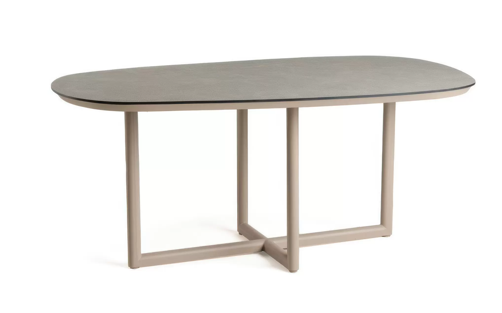 Konstrukcja wykonana jest z aluminium malowanego proszkowo, co zapewnia pełną odporność na korozję i stabilność przez wiele sezonów. Zestaw dostępny jest w dwóch wariantach kolorystycznych: Charcoal / Mountain Grey oraz Champagne / Navajo White, dzięki czemu można dopasować go do różnych aranżacji tarasowych.