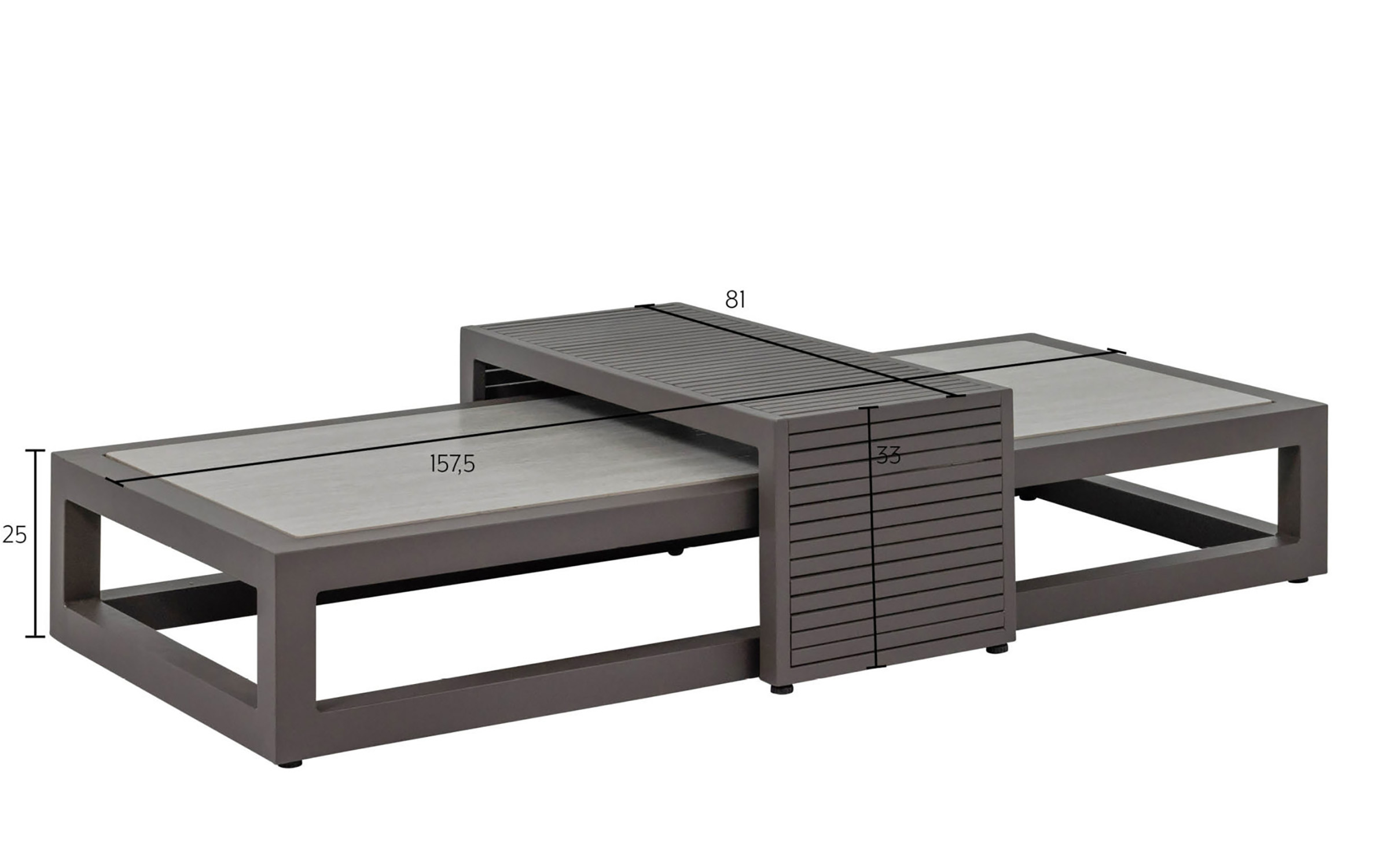 Blat stolika kawowego wykonano z ceramiki odpornej na plamy, zarysowania i działanie czynników zewnętrznych.