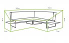 Wymiary podstawowego narożnika wynoszą 247x247 cm i oferują miejsce do siedzenia dla 4-5 osób. Ramiona można rozbudować wstawiając dodatkowy element poszerzający o szerokości 71 cm.