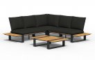 Platforma narożnika oraz blat stolika wykonana z drewna teakowego.