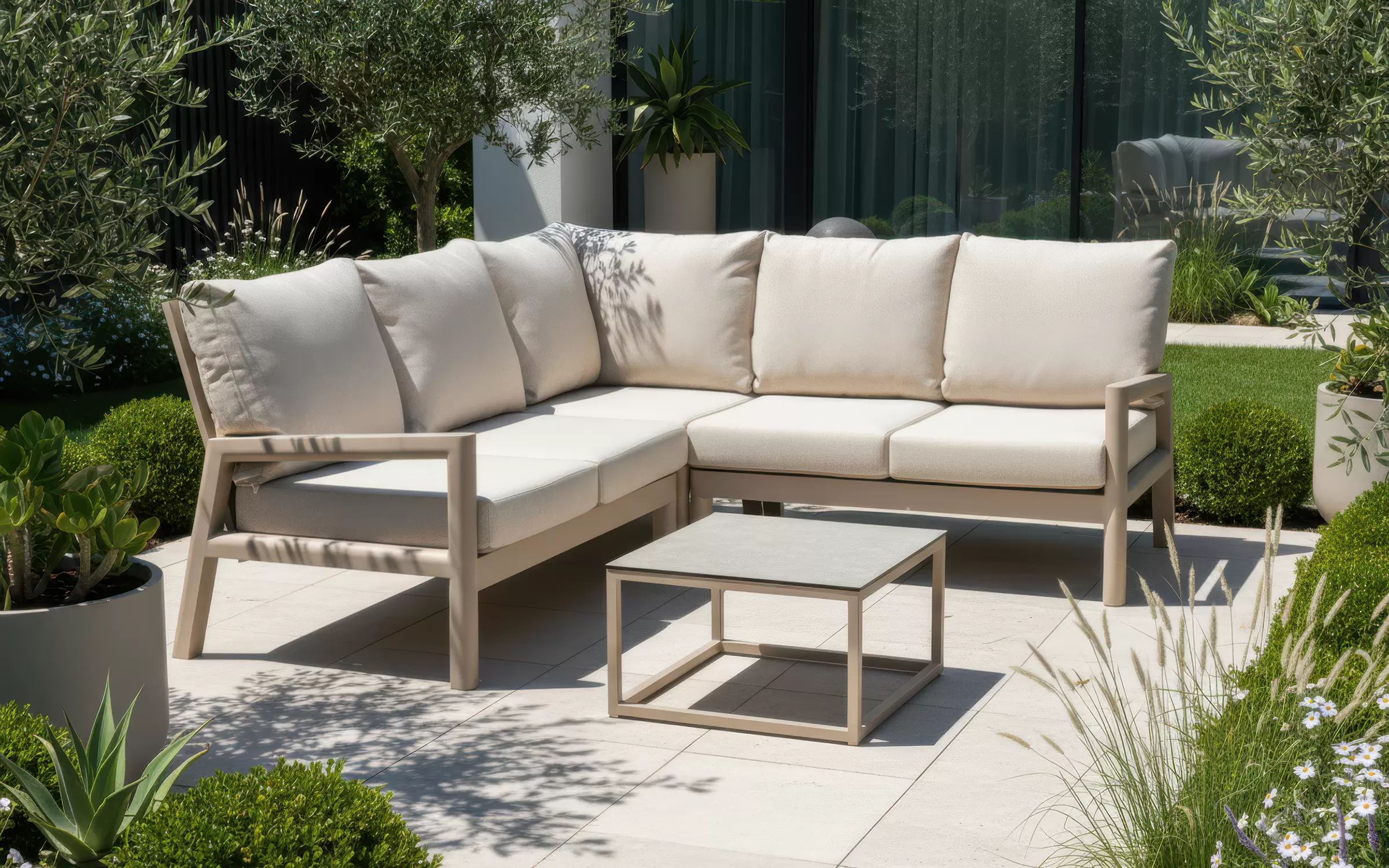 SEVILLA Narożnik ogrodowy modułowy aluminium poduszki premium stolik