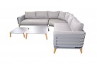 Narożnik wyposażony jest w wyjątkowo grubą i lekko wodoodporną tapicerkę siedziska (18 cm) i oparcia. Poduszki wykonane są z Olefin 270 g/m2.