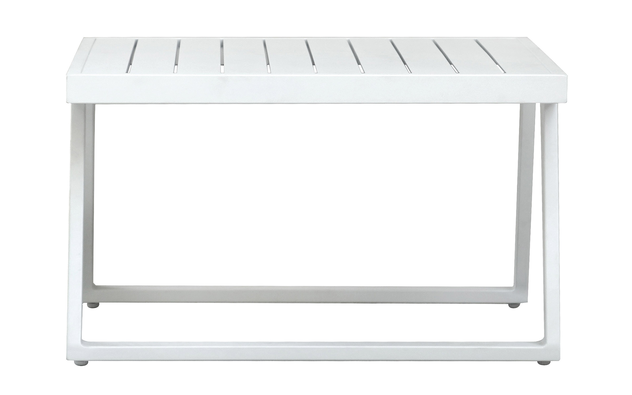 - 1× stolik kawowy 68×68×41 cm z blatem z aluminiowych listew