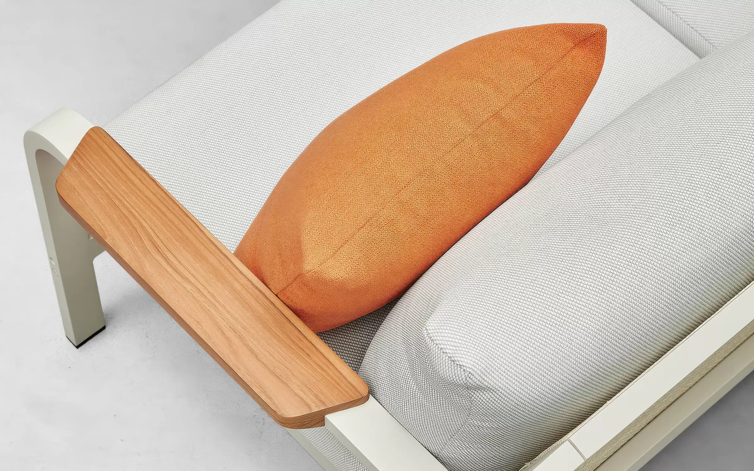 Aluminium z powłoką polimerową – lekkie, a zarazem niezwykle wytrzymałe tworzywo, które stanowi szkielet mebli. Dzięki zastosowaniu powłoki polimerowej konstrukcja jest całkowicie odporna na korozję (rdzę) oraz zmienne warunki atmosferyczne. To materiał, który nie wymaga konserwacji i zachowuje swój estetyczny wygląd przez wiele lat.