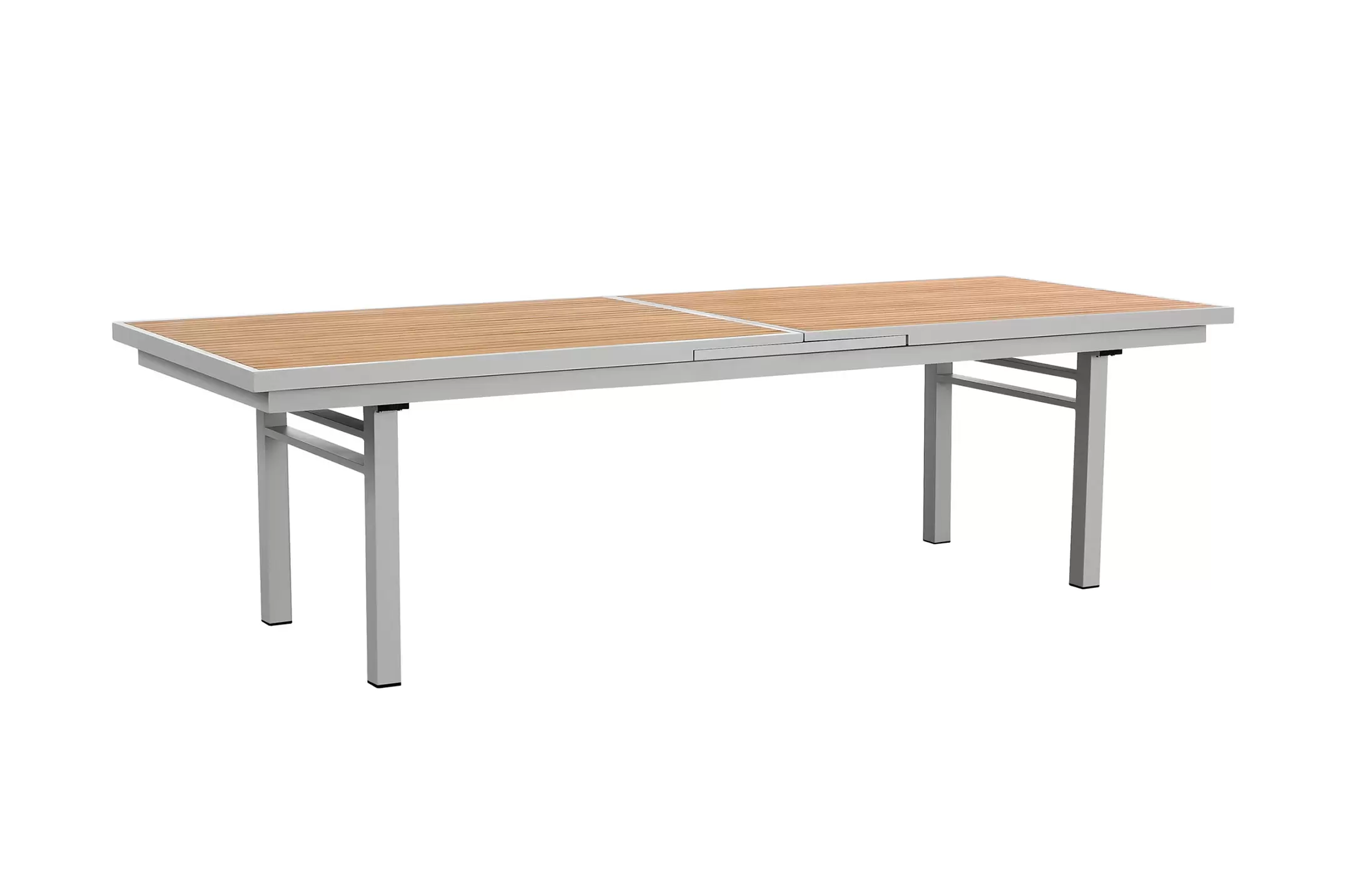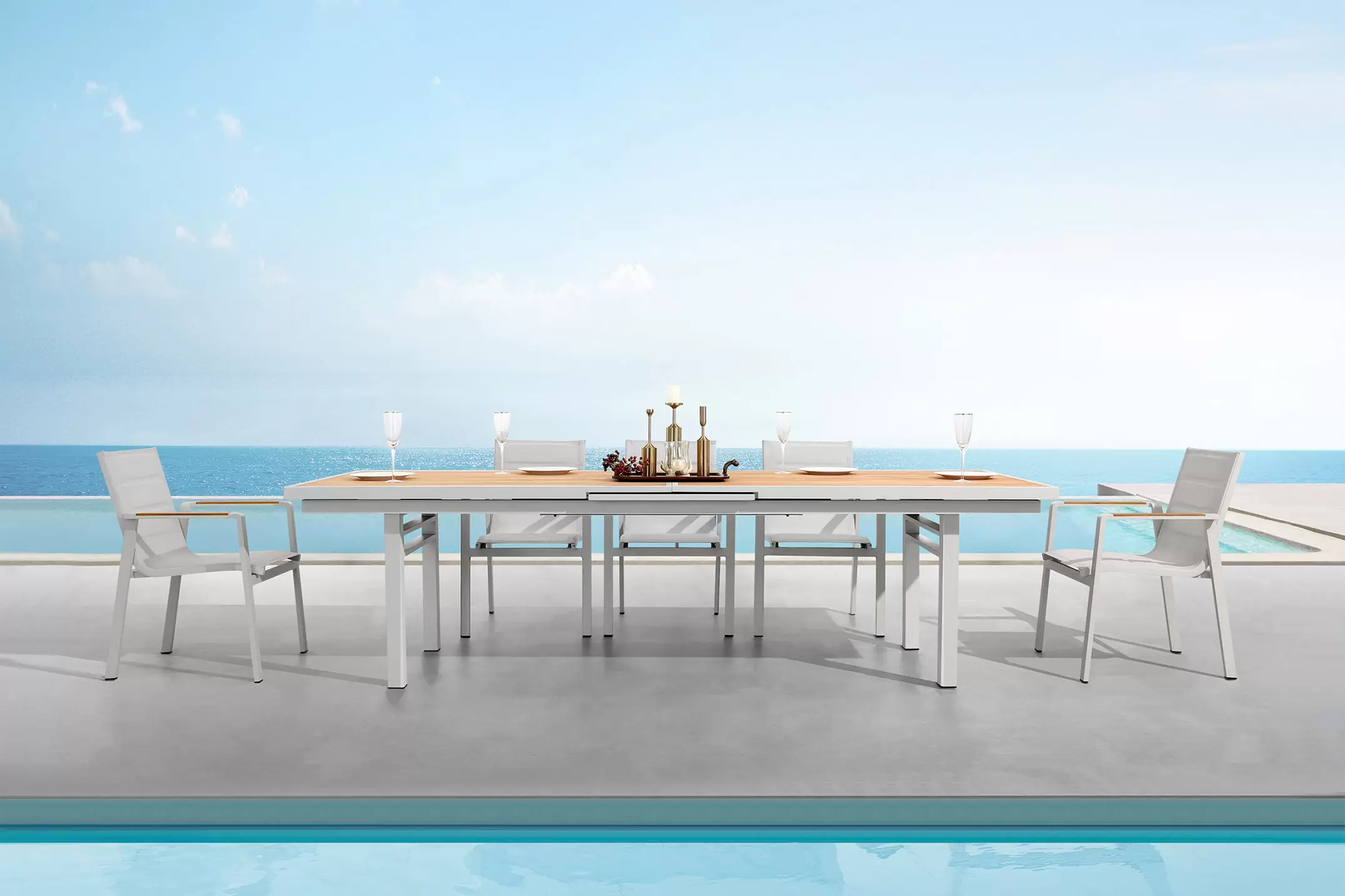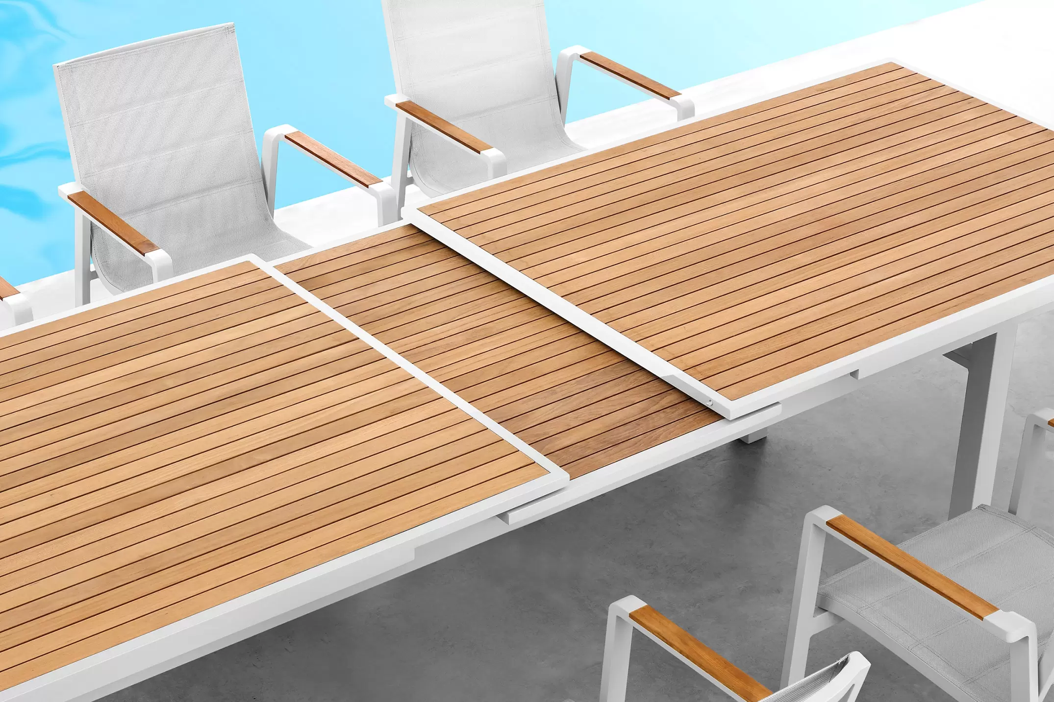 Meble do jadalni ogrodowej aluminiowe/teak NOFI Dining EXT z rozkładanym stołem
