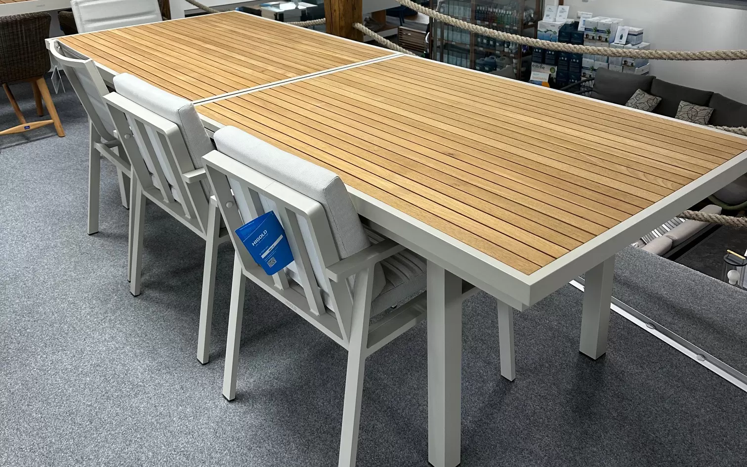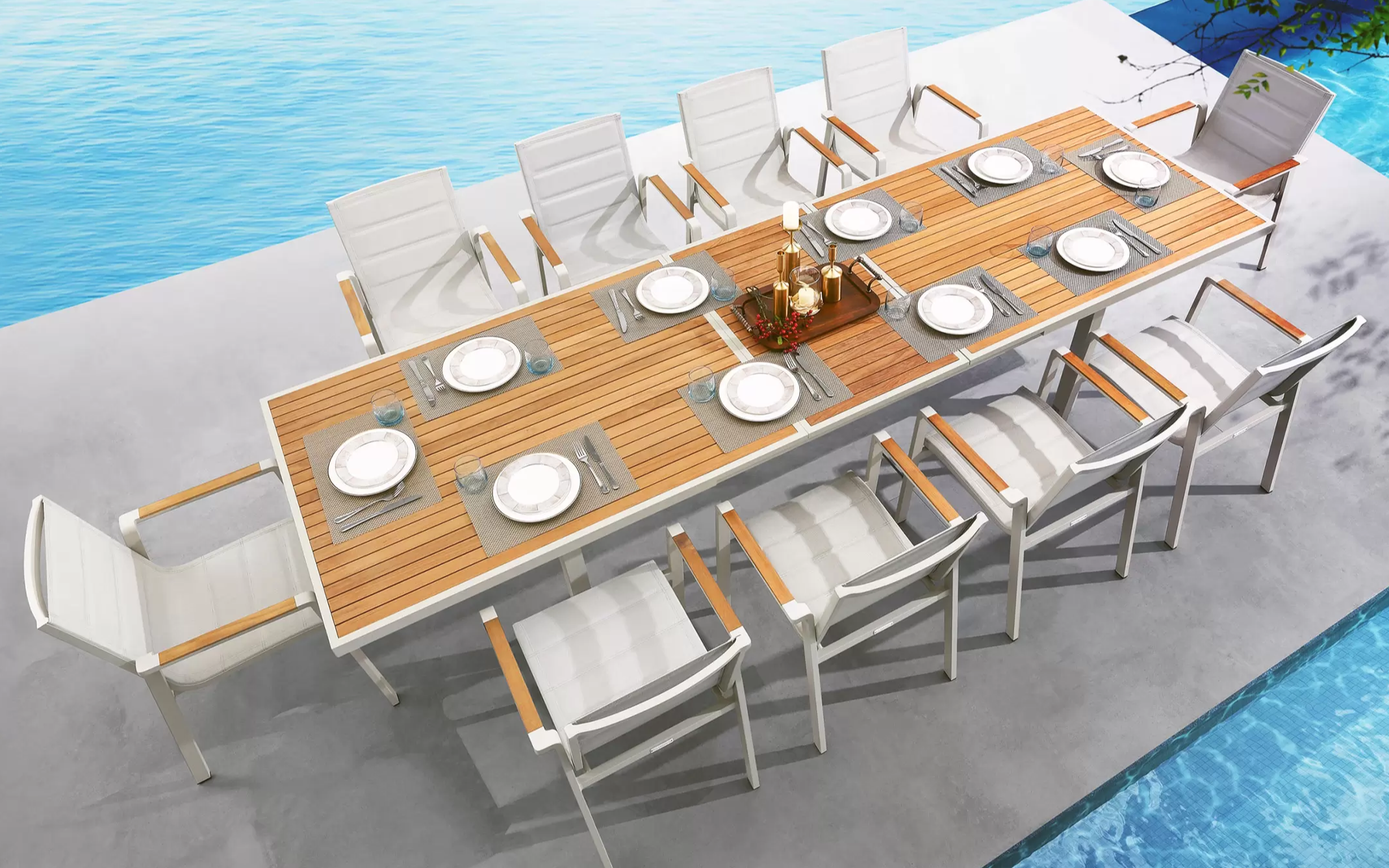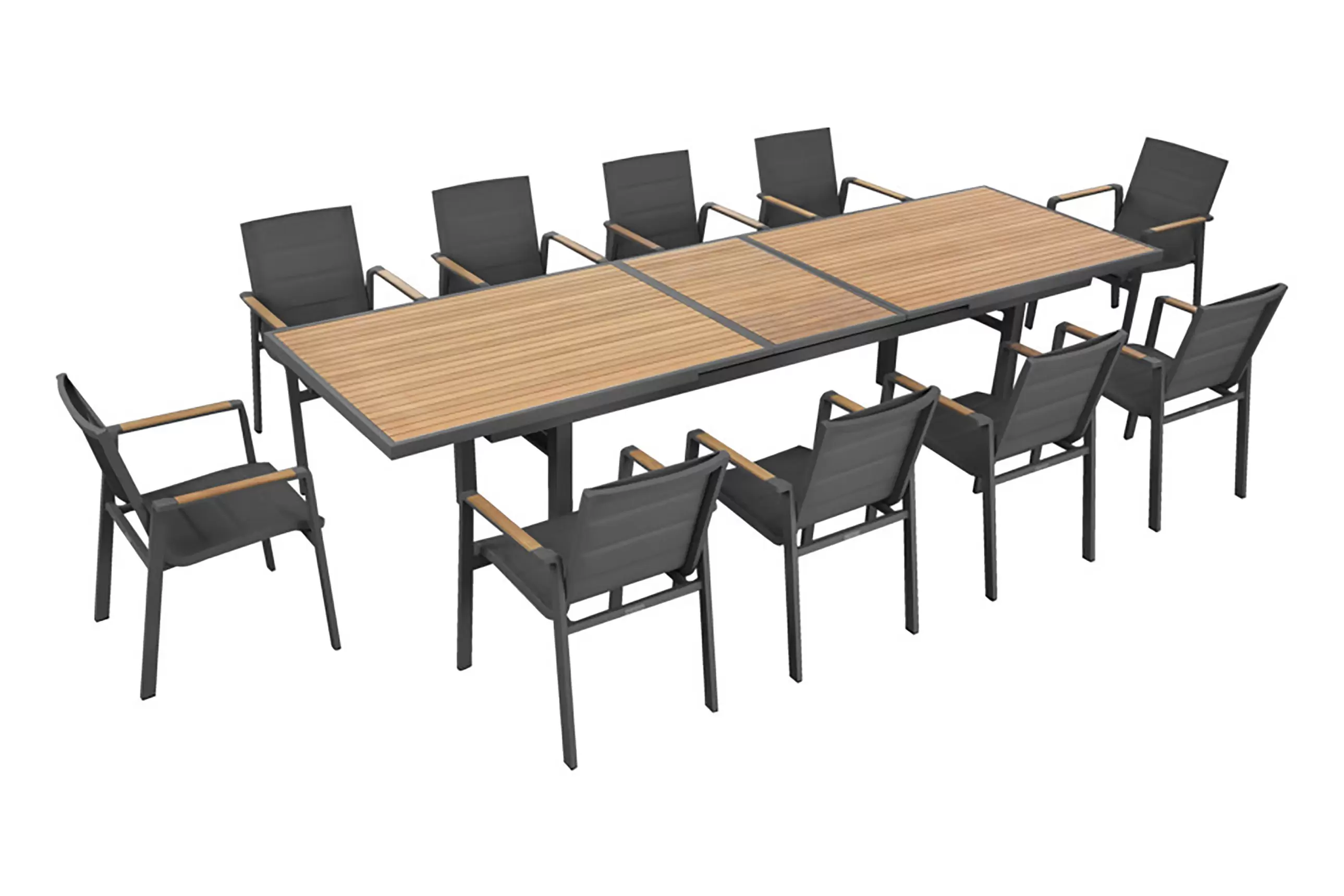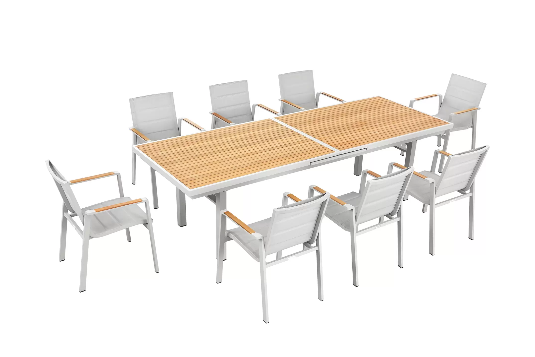 Meble do jadalni ogrodowej aluminiowe/teak NOFI Dining EXT z rozkładanym stołem