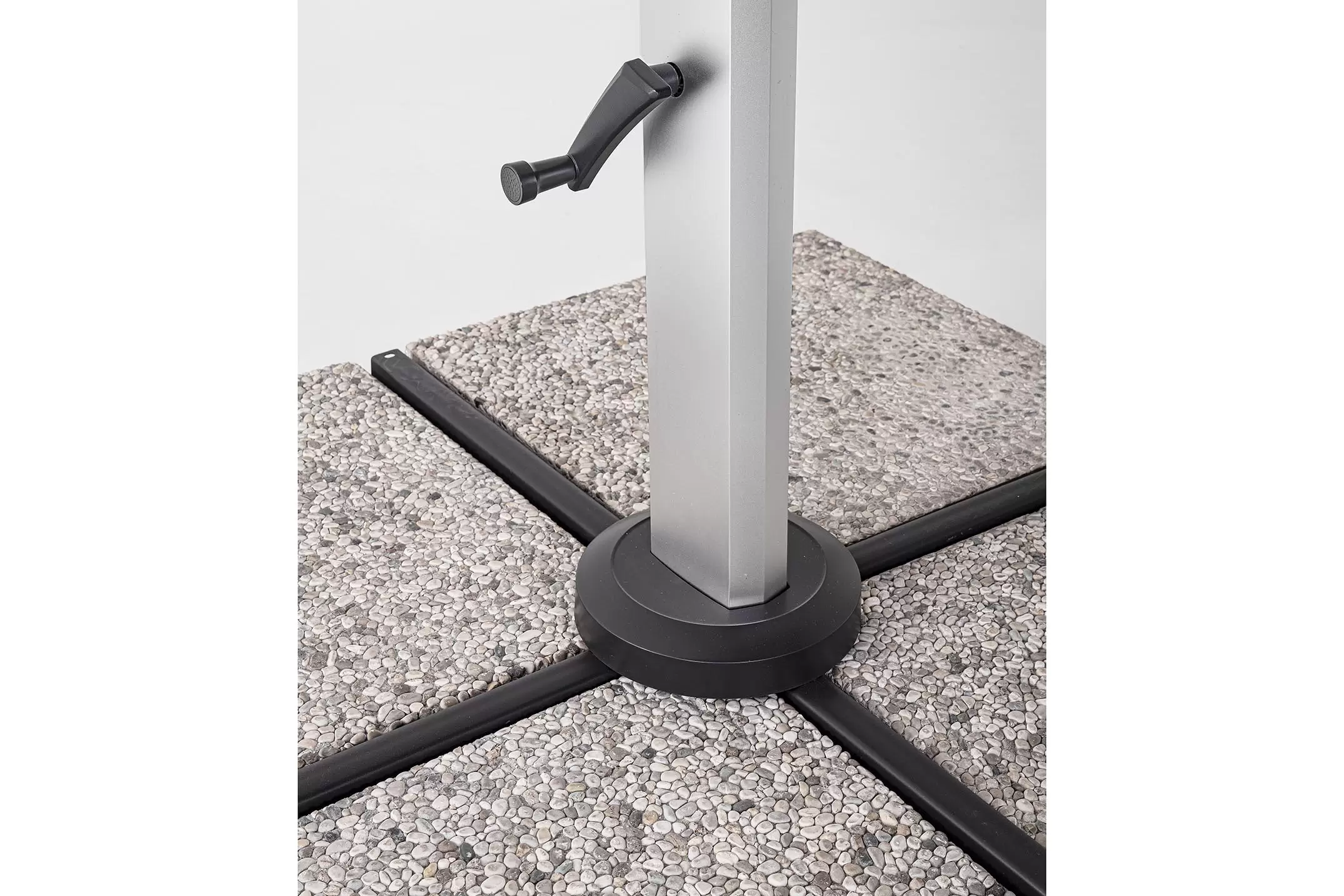 Podstawa w kształcie krzyża wykonana jest ze stali. W zestawie znajduje się pokrowiec, jednak cementowe bazy należy dokupić oddzielnie.