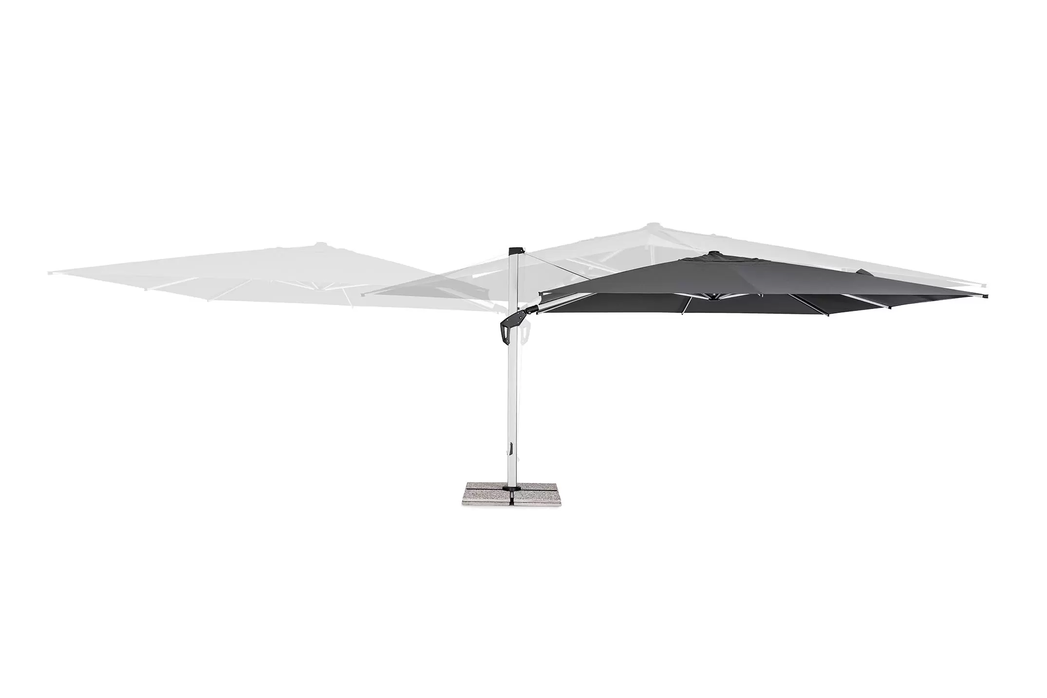 Czasza pochylana w 2 osiach co pozwala zrobić z parasola nawet parawan.