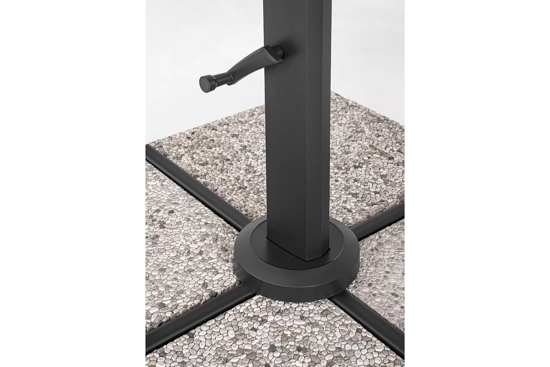 Podstawa w kształcie krzyża wykonana jest ze stali. W zestawie znajduje się pokrowiec, jednak cementowe bazy należy dokupić oddzielnie.