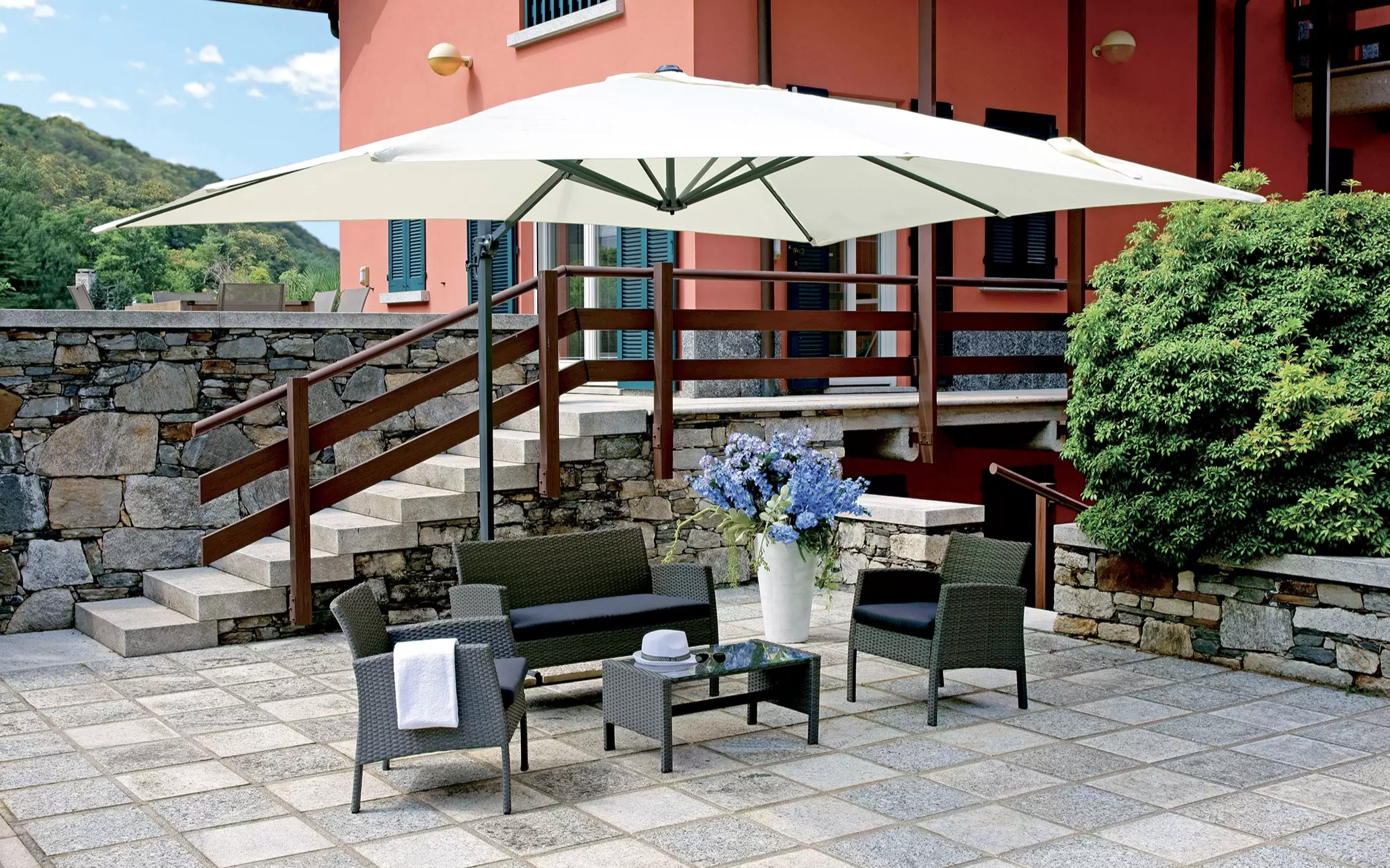 - 1 × parasol ogrodowy BATISTA 3×4 m z korbą i funkcją przeciwwiatrową