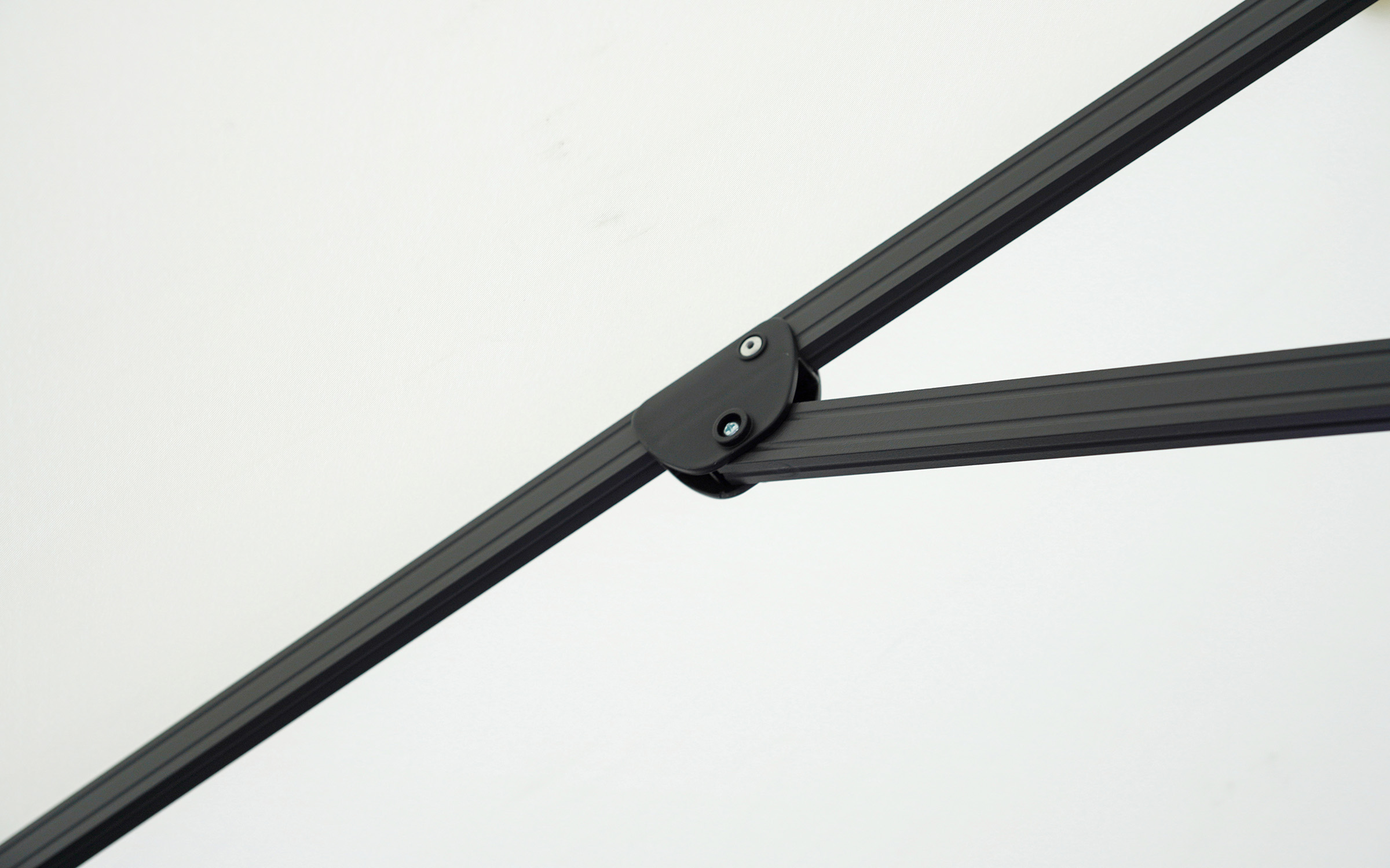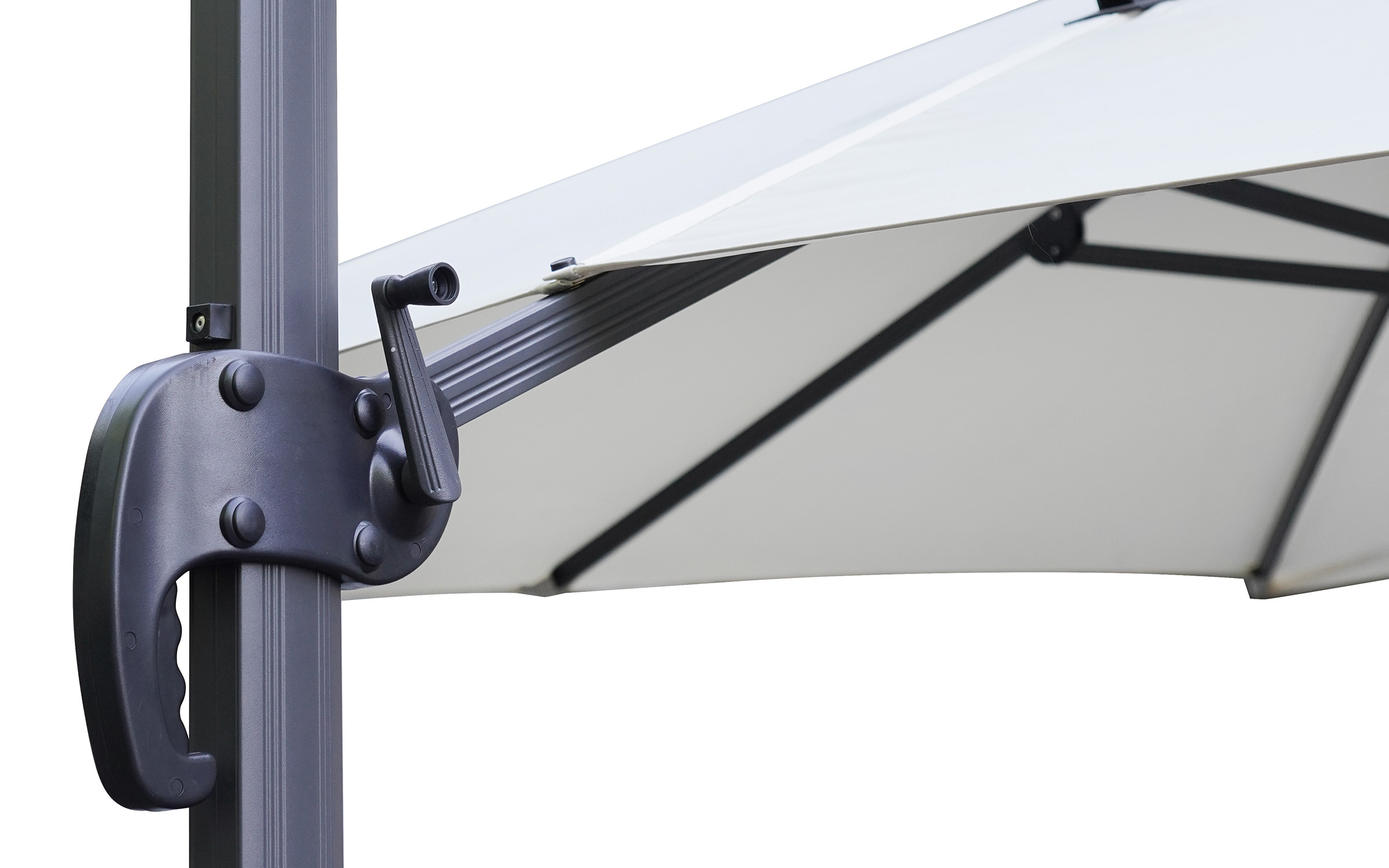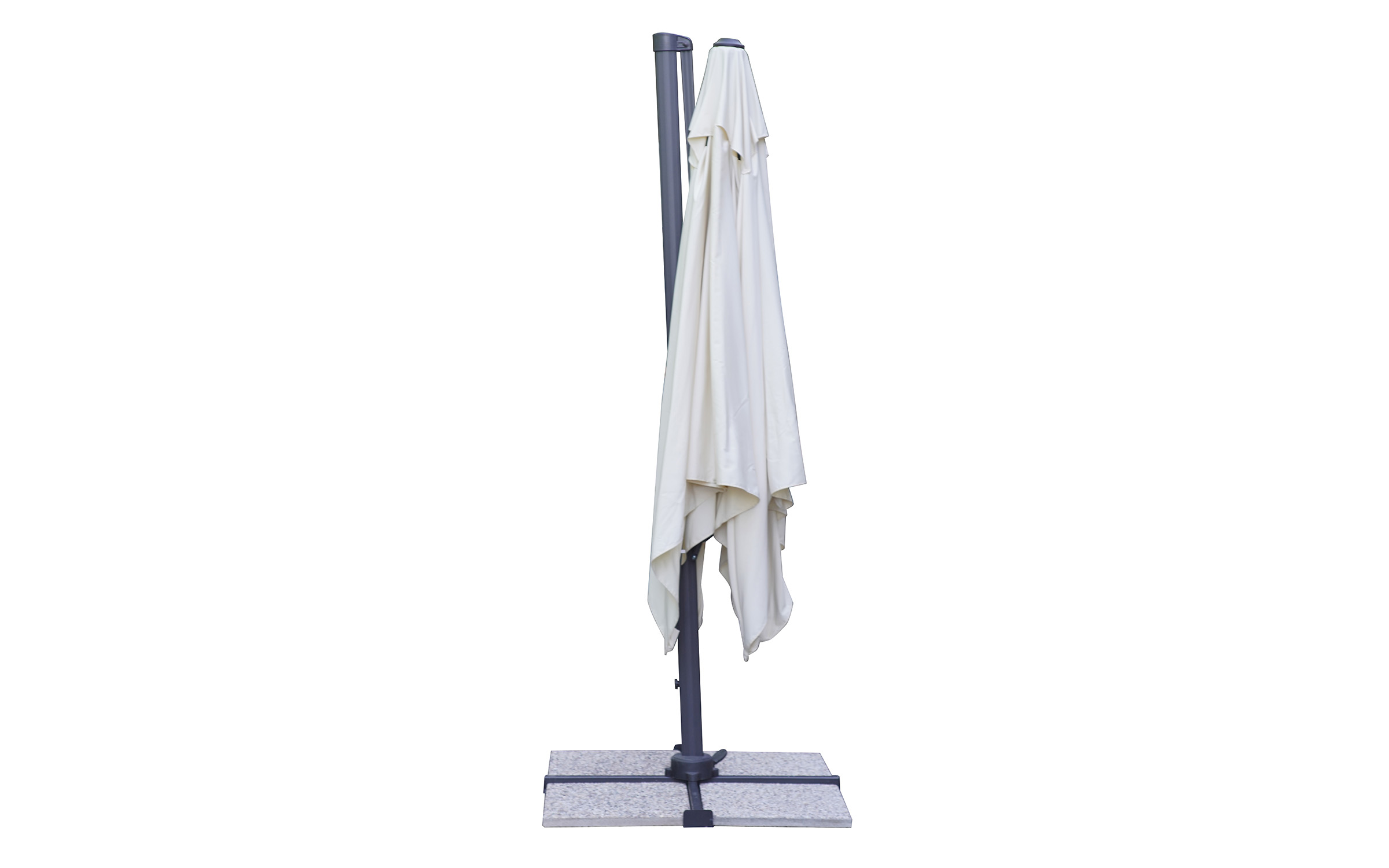 Parasol ogrodowy BATISTA to elegancki model o wymiarach 3×4 m, idealny do ochrony przed słońcem na tarasie, balkonie lub w ogrodzie. Konstrukcja wykonana z aluminium malowanego proszkowo w kolorze antracyt, z poszyciem z tkaniny poliestrowej ecru.