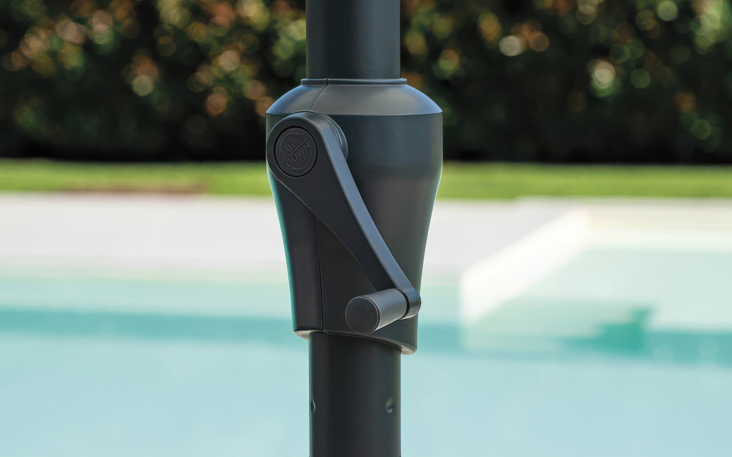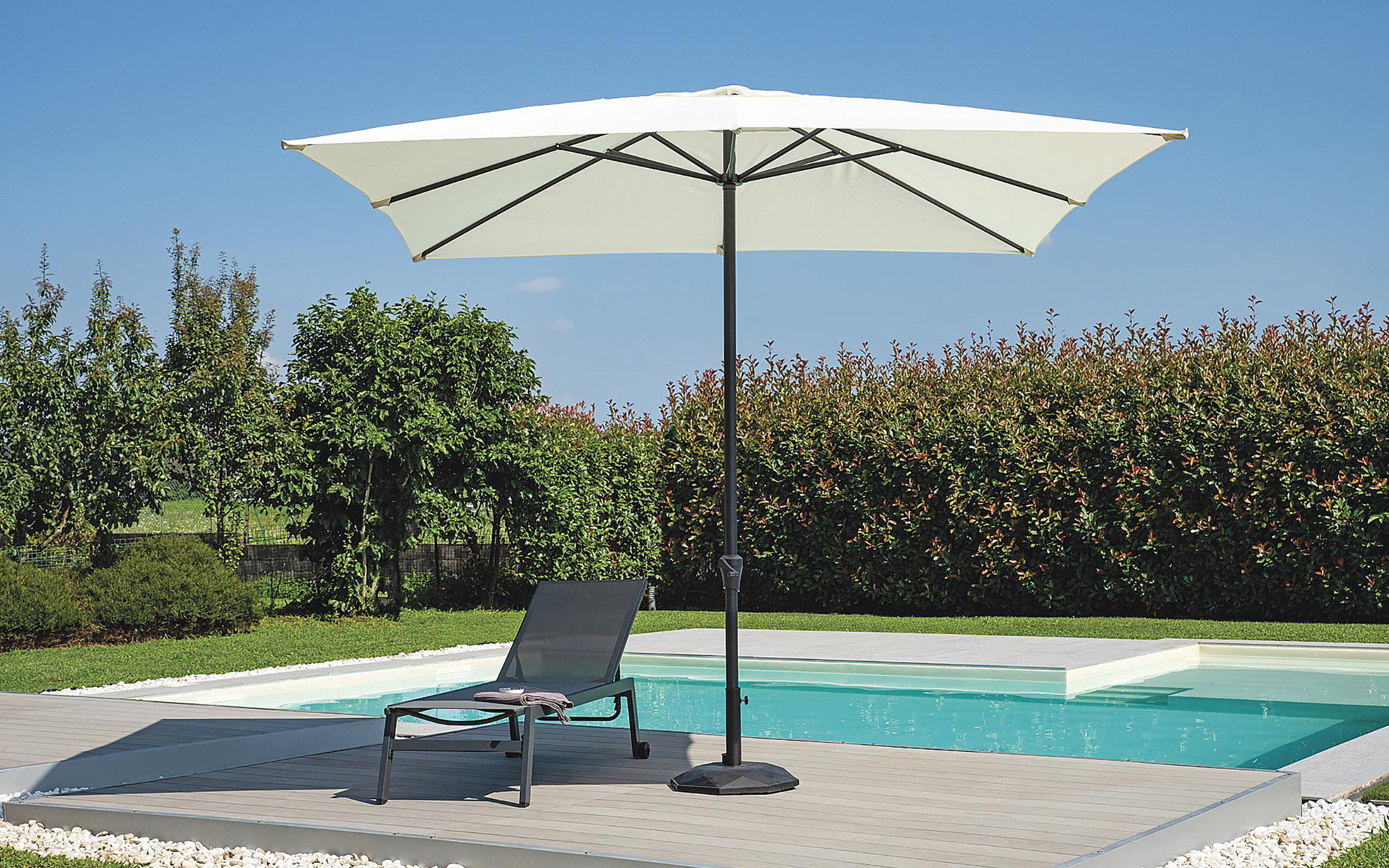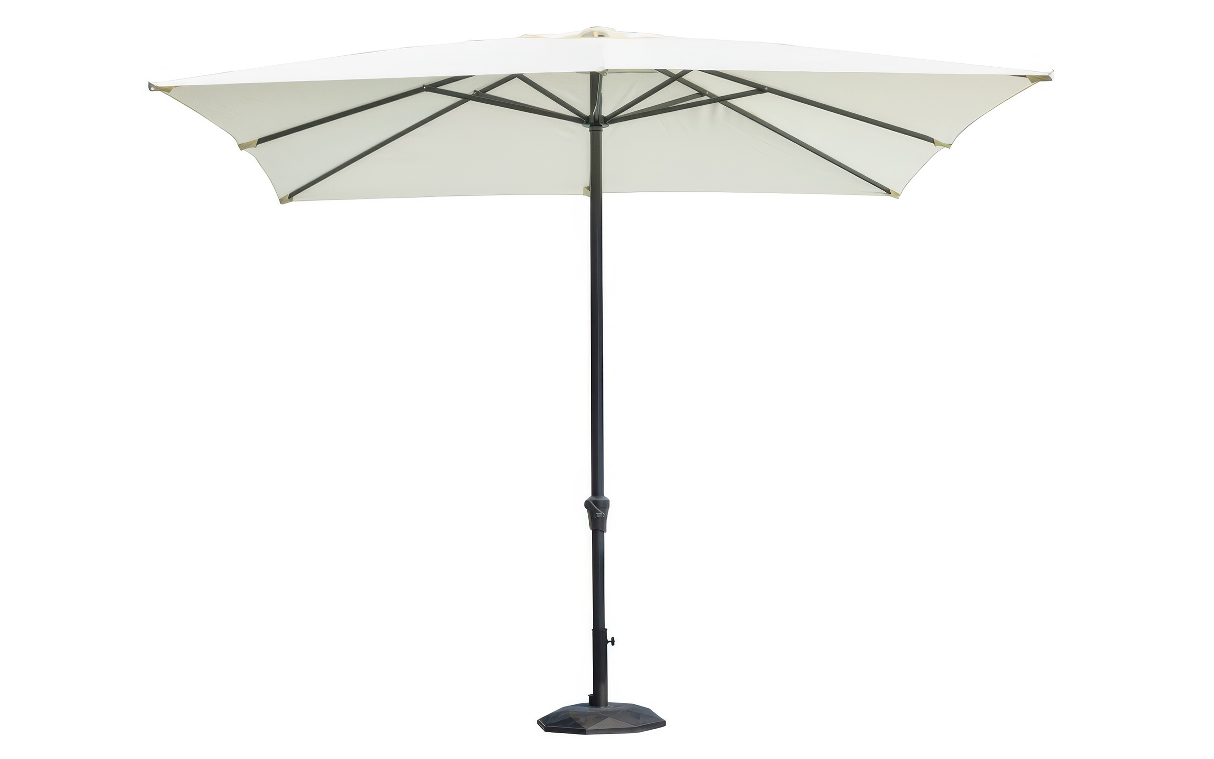 Parasol ogrodowy BLOOM to klasyczny model z nogą centralną z kolekcji Greenwood, idealny do ogrodu, tarasu lub patio. Konstrukcja wykonana z aluminium malowanego proszkowo w kolorze antracytowym lub białym. Maszt okrągły Ø48 mm, system otwierania na korbę. Poszycie z poliestru 180 g/m² w kolorze ecru. Parasol wyposażony w 8 żeber stalowych 12×22 mm oraz system przeciwwiatrowy.
