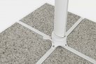 Podstawa w kształcie krzyża wykonana jest ze stali. Cementowe obciążniki należy dokupić oddzielnie.