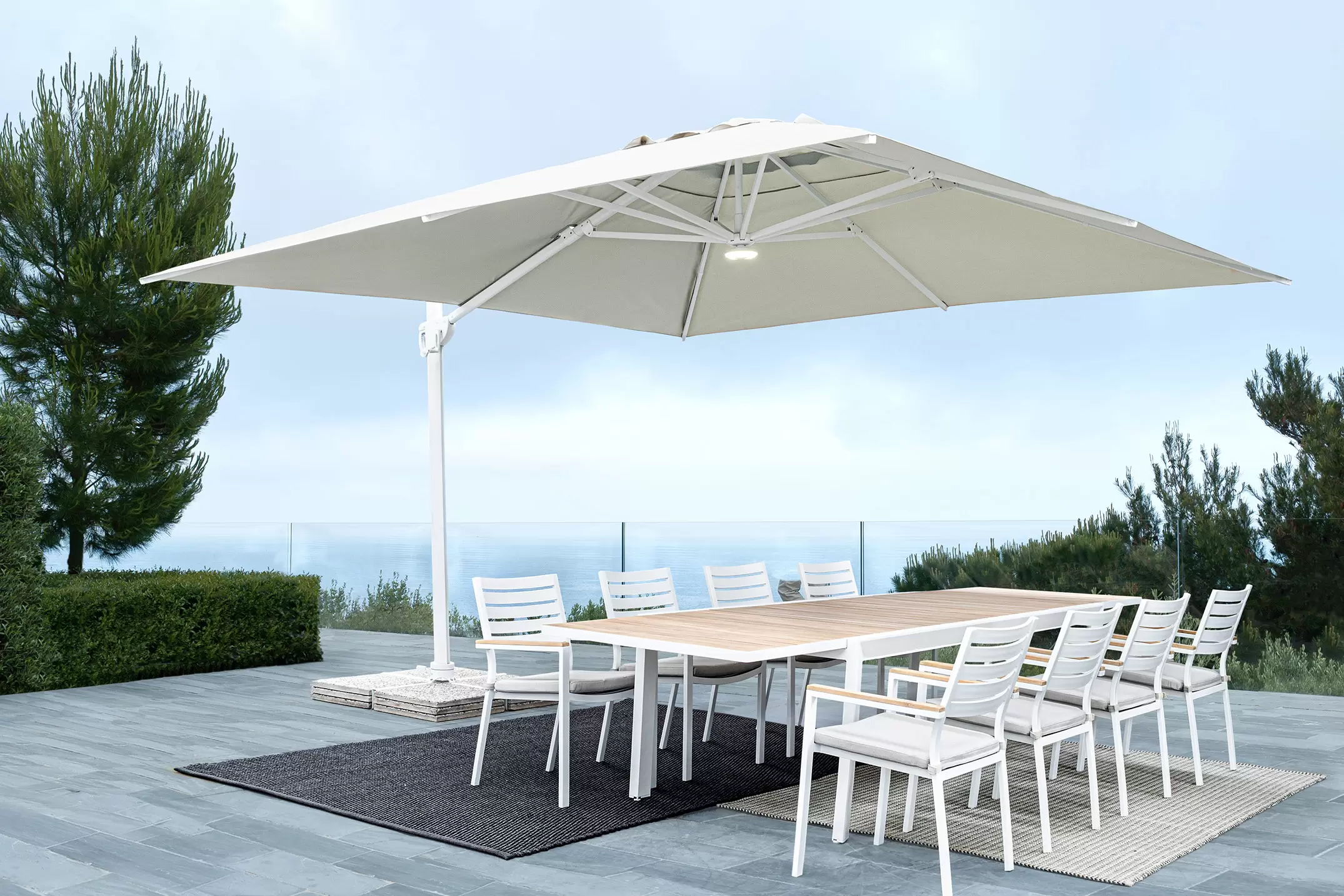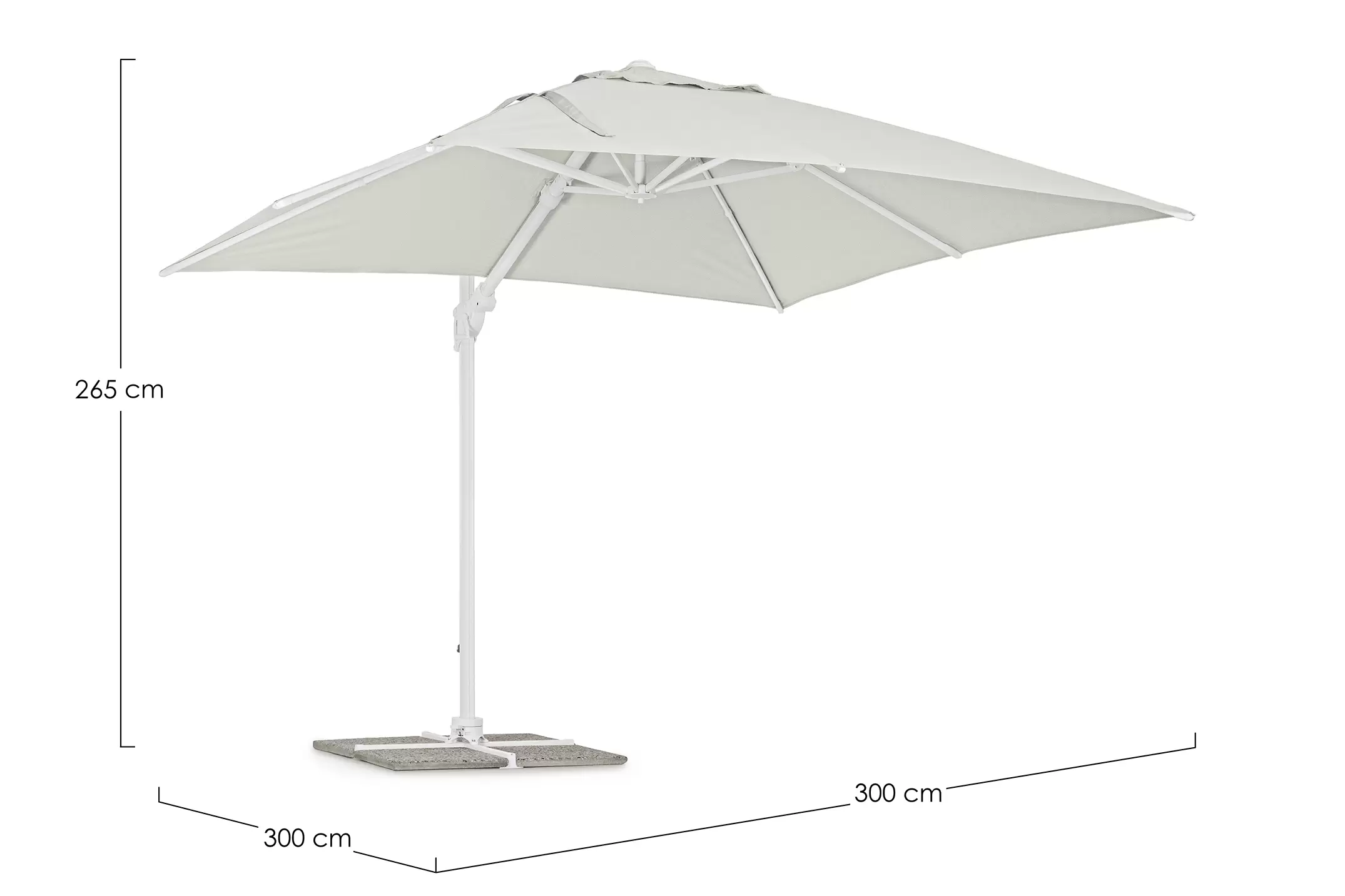 Parasol ogrodowy z nogą boczną aluminiowy biały obrotowy pochylany w 2 płaszczyznach EDEN 3x3