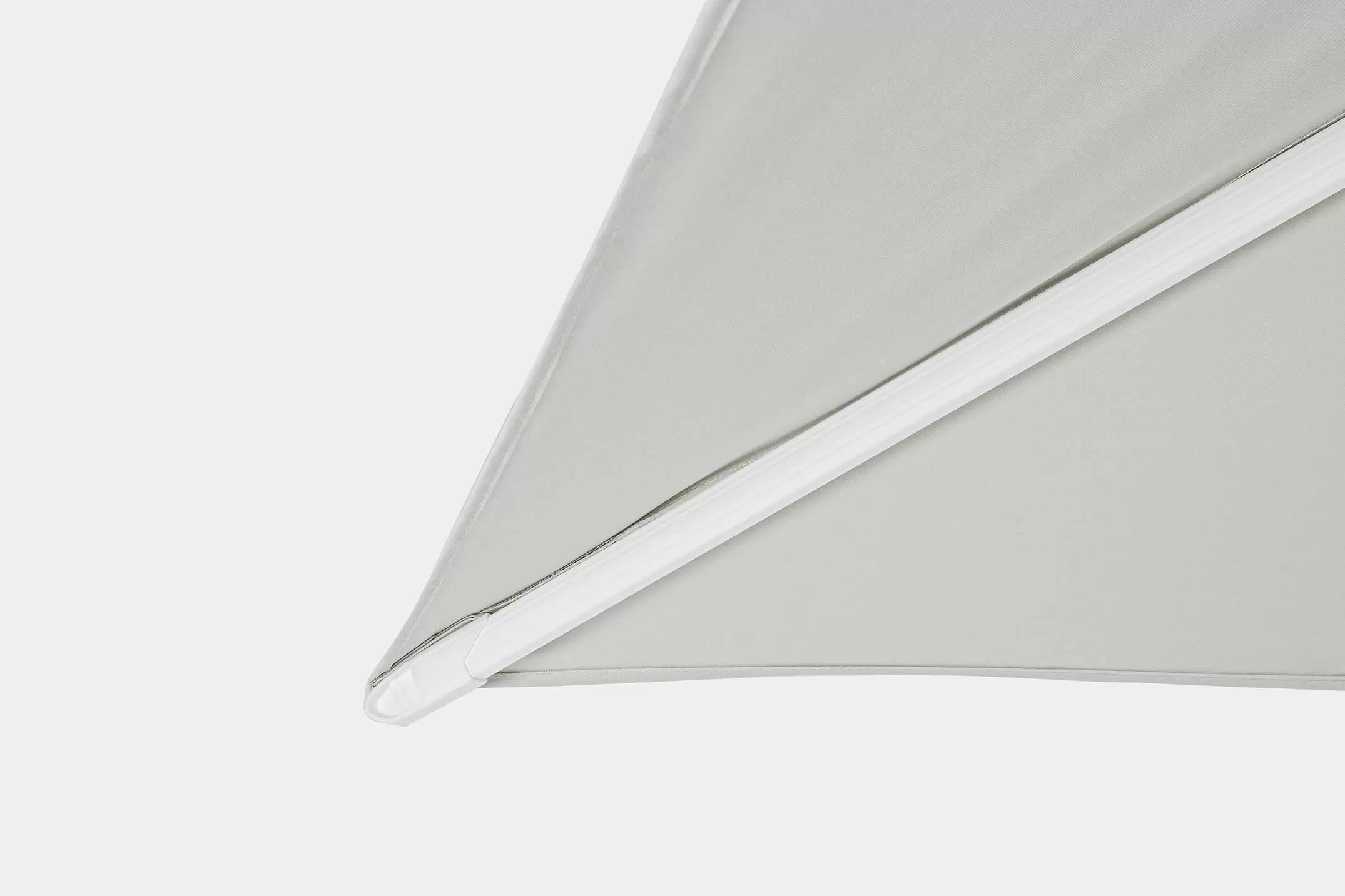 Parasol Eden 3x3 to doskonała opcja zarówno do ogrodu, jak i na taras. Posiada on ramę wykonaną z aluminium malowaną proszkowo na kolor biały i poszycie poliestrowe o gęstości 250 g/m2 pokryte PA (poliamidem) rozpięte na ramionach.