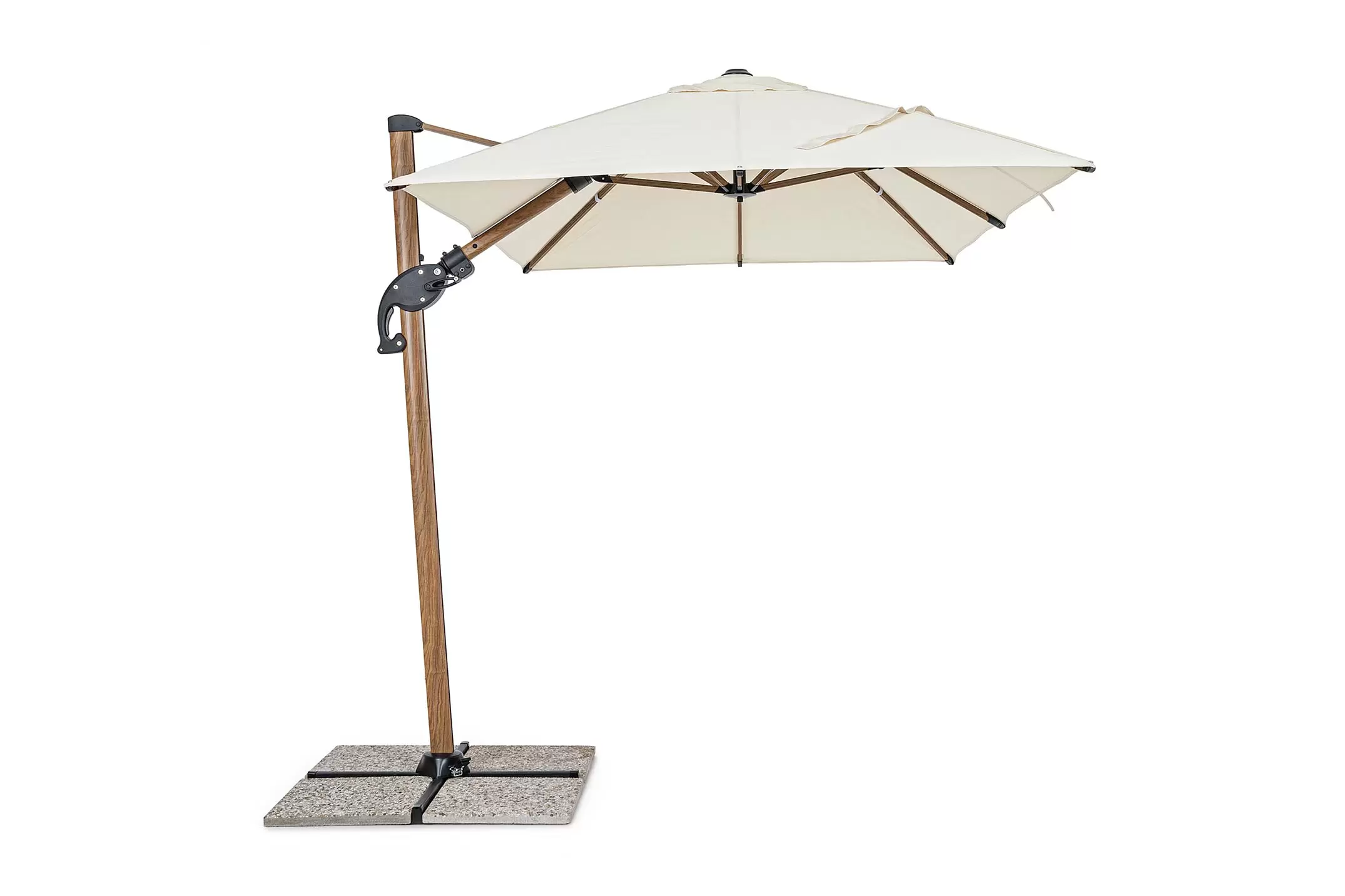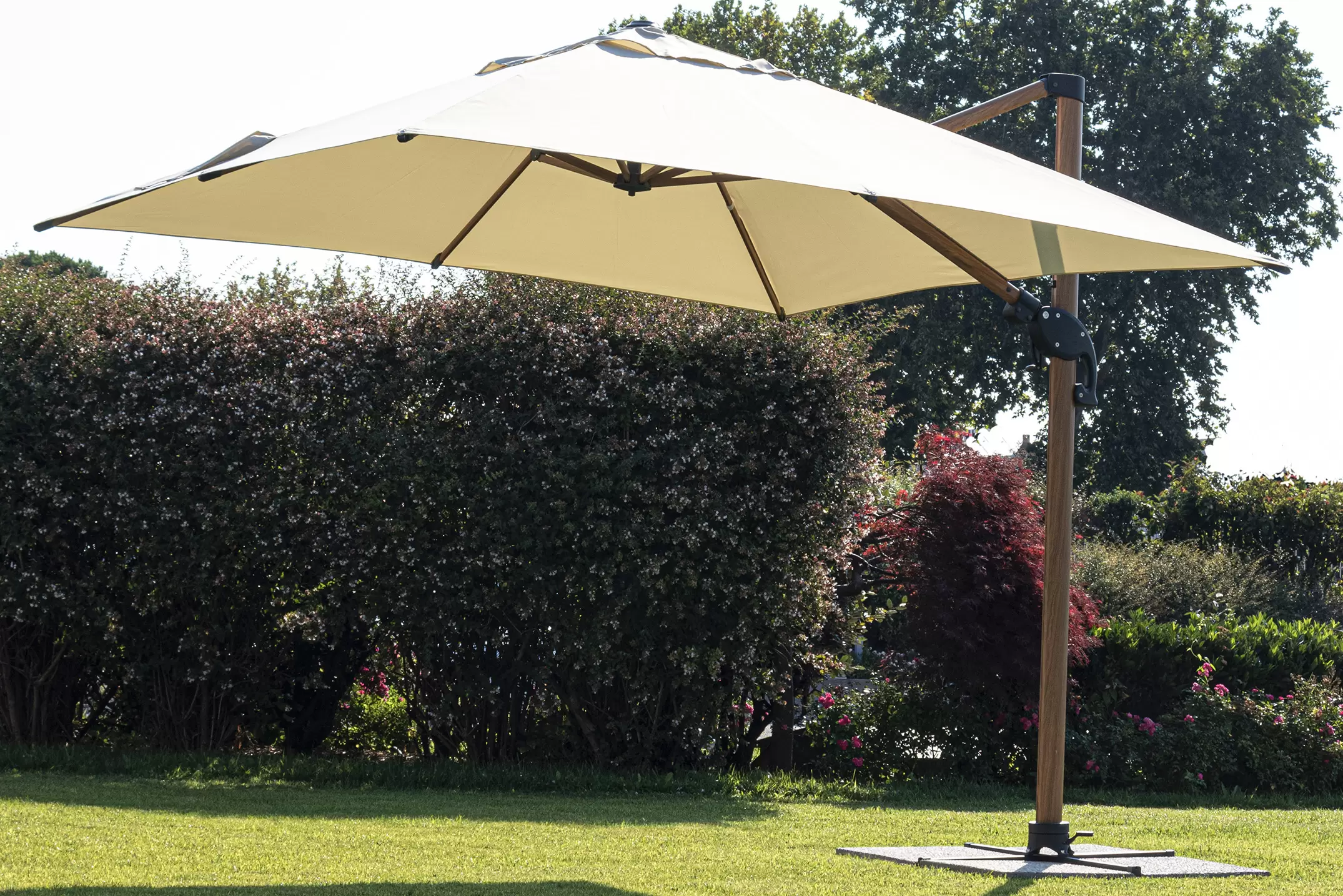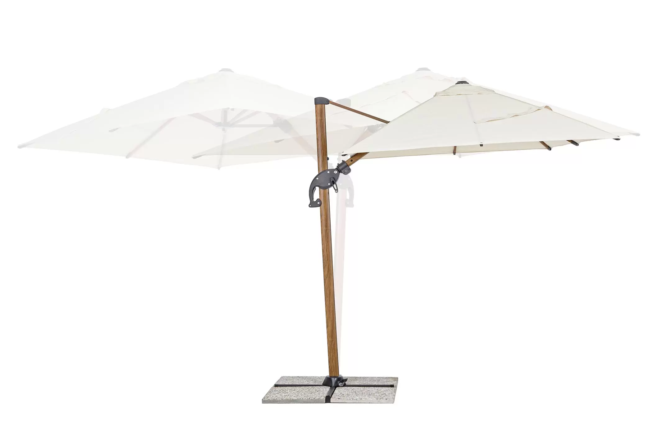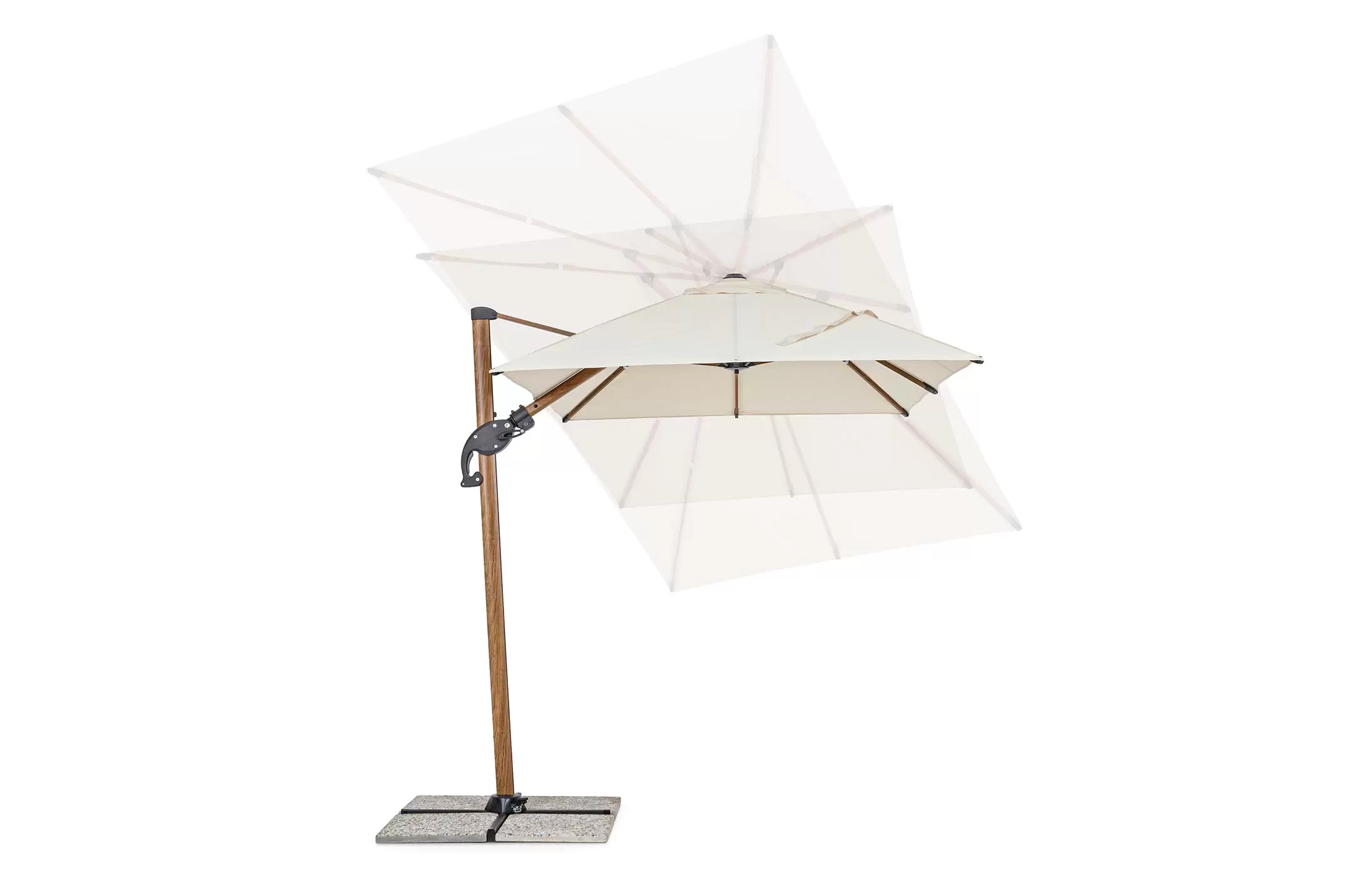 Czasza parasola może być obrócona o 360° wokól osi pionowej słupa za pomocą pedału lub zmienić kąt w 2 płaszczyznach.
