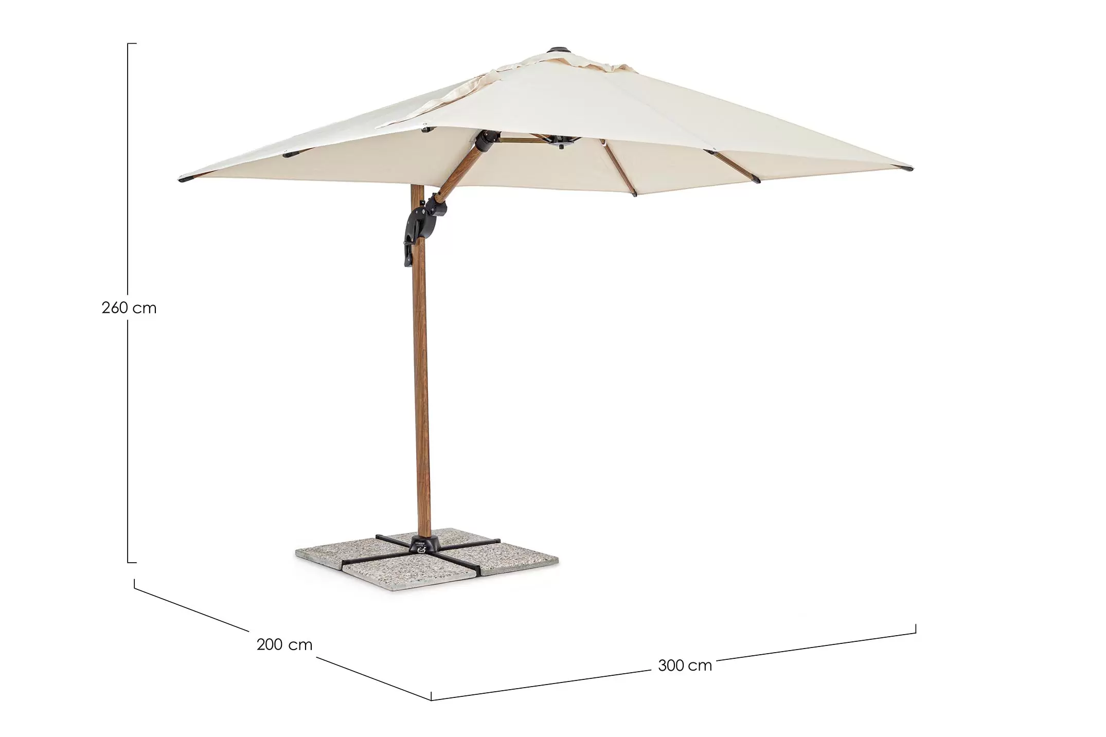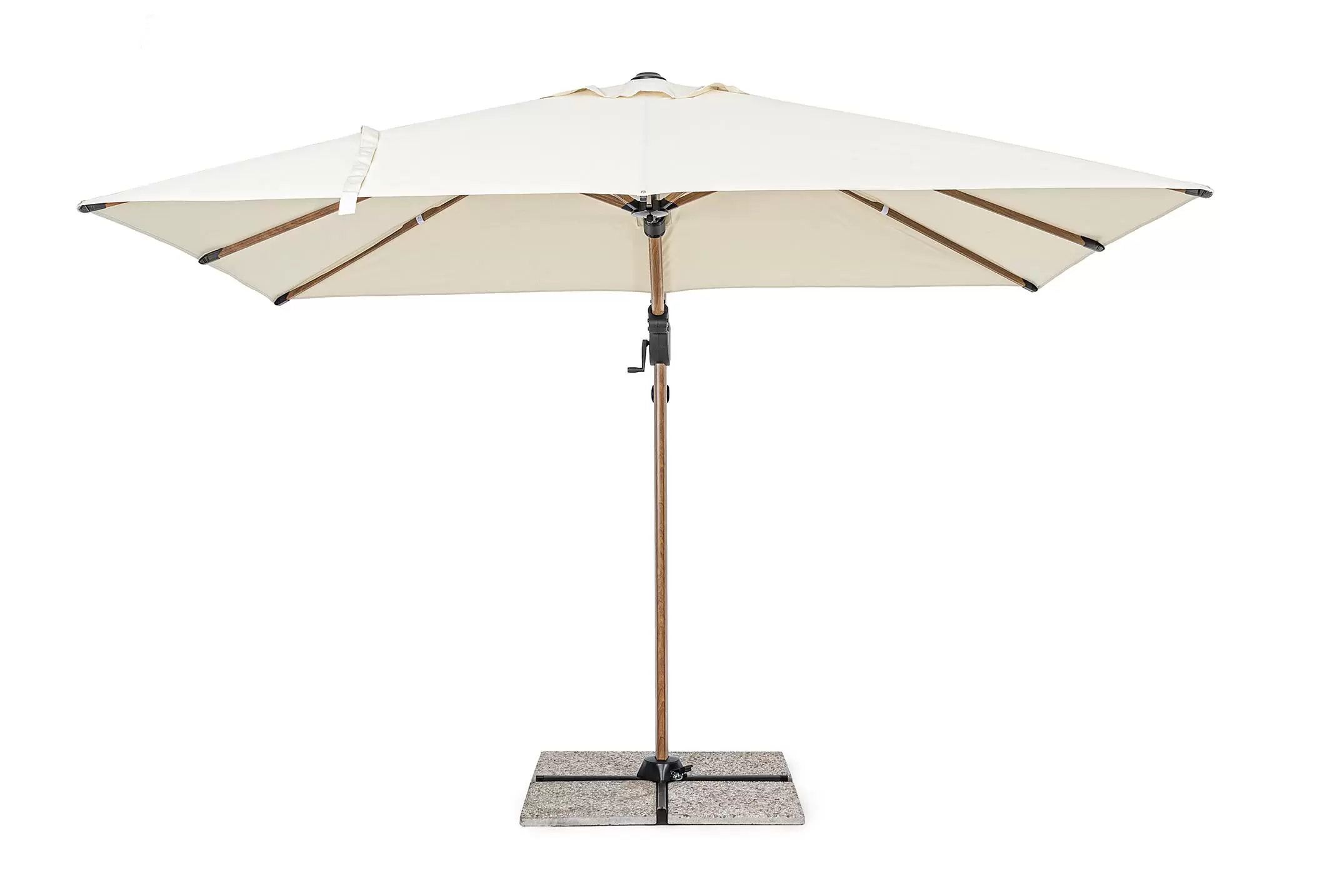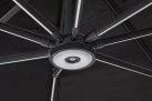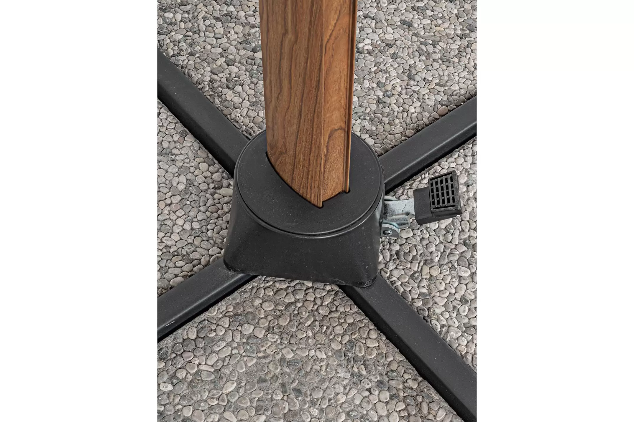 Czasza parasola może być obrócona o 360° wokól osi pionowej słupa za pomocą pedału lub zmienić kąt w 2 płaszczyznach.