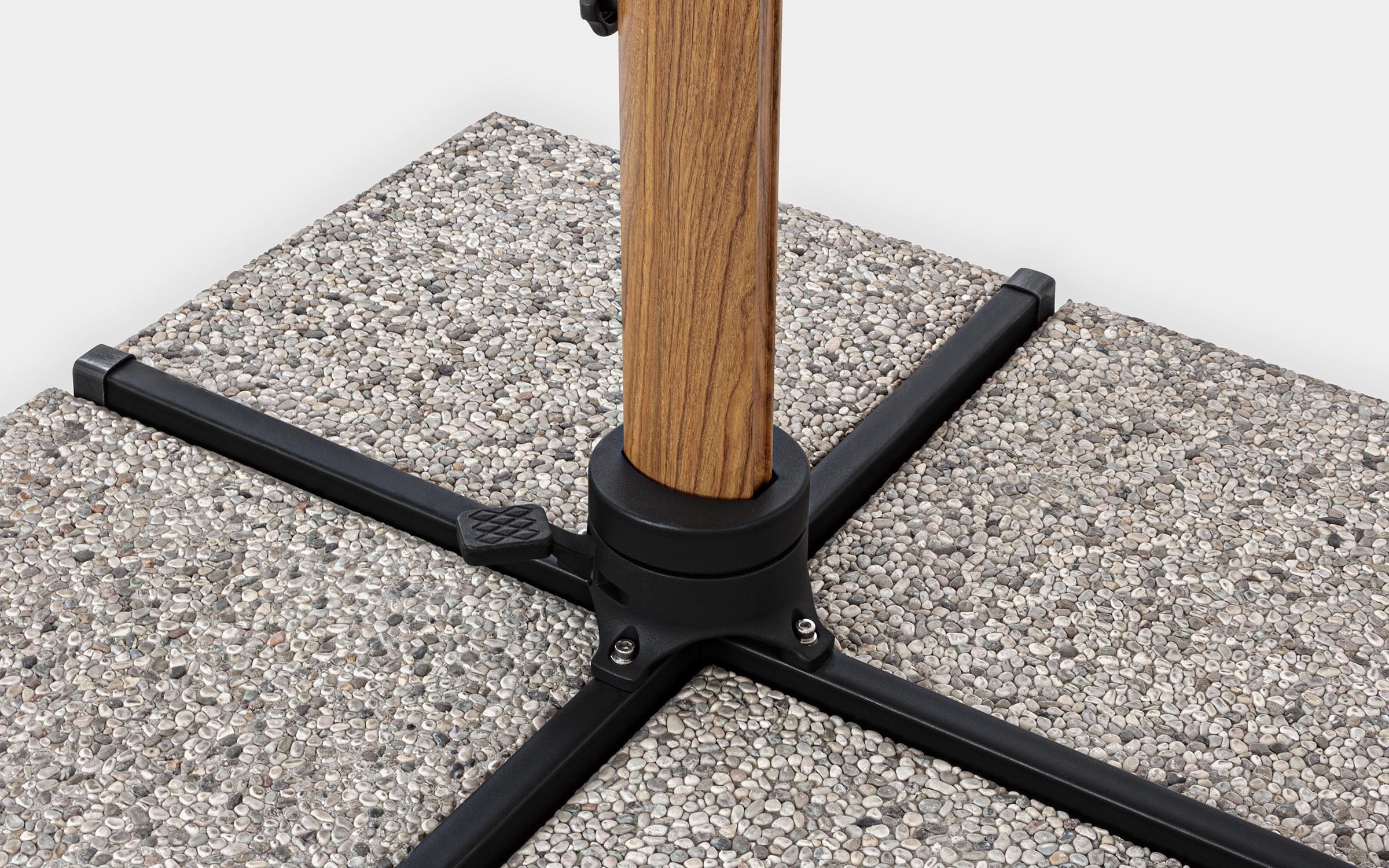 Możliwe dokupienie podstawy bocznej mającej miejsce na obciążniki tylko po przeciwnej stronie ramienia parasola.