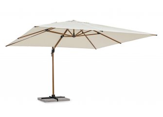 Parasol Orion to doskonała opcja zarówno do ogrodu, jak i na taras. Posiada on ramę wykonaną z aluminium z powłoką z efektem drewna i poszycie poliestrowe o gęstości 250 g/m2 pokryte PA (poliamidem) rozpięte na ramionach.