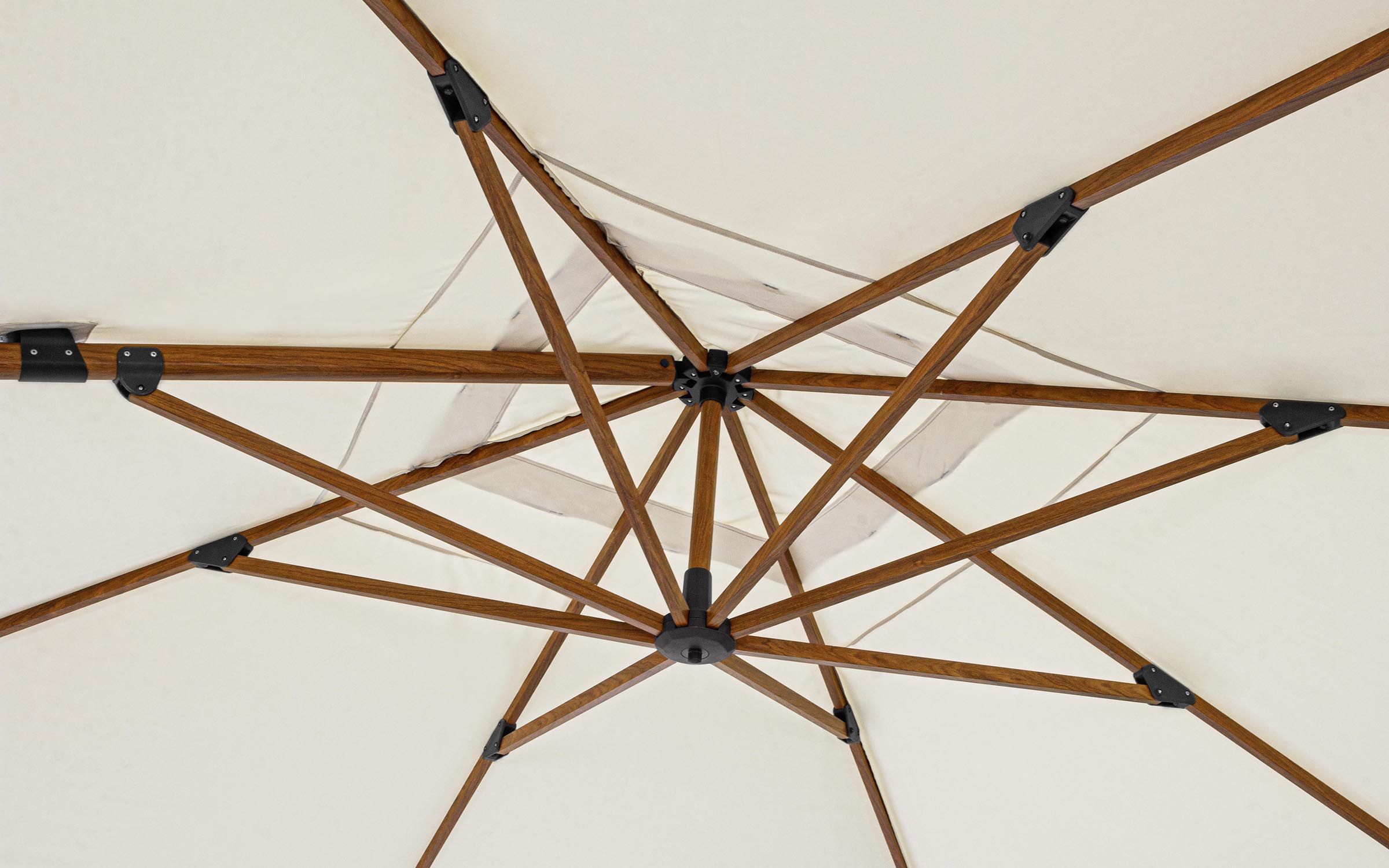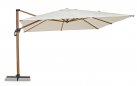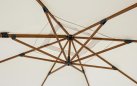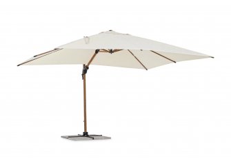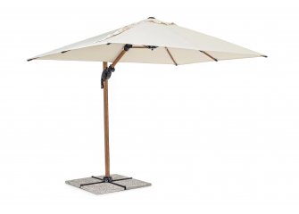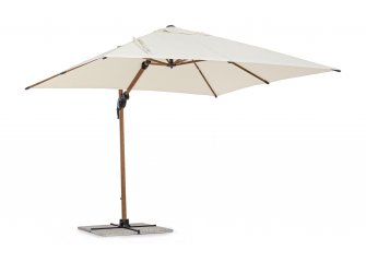 Parasol Orion to doskonała opcja zarówno do ogrodu, jak i na taras. Posiada on podstawę wykonaną z aluminium z powłoką z efektem drewna i poszycie poliestrowe o gęstości 250 g/m2 pokryte PA (poliamidem) rozpięte na ramionach.