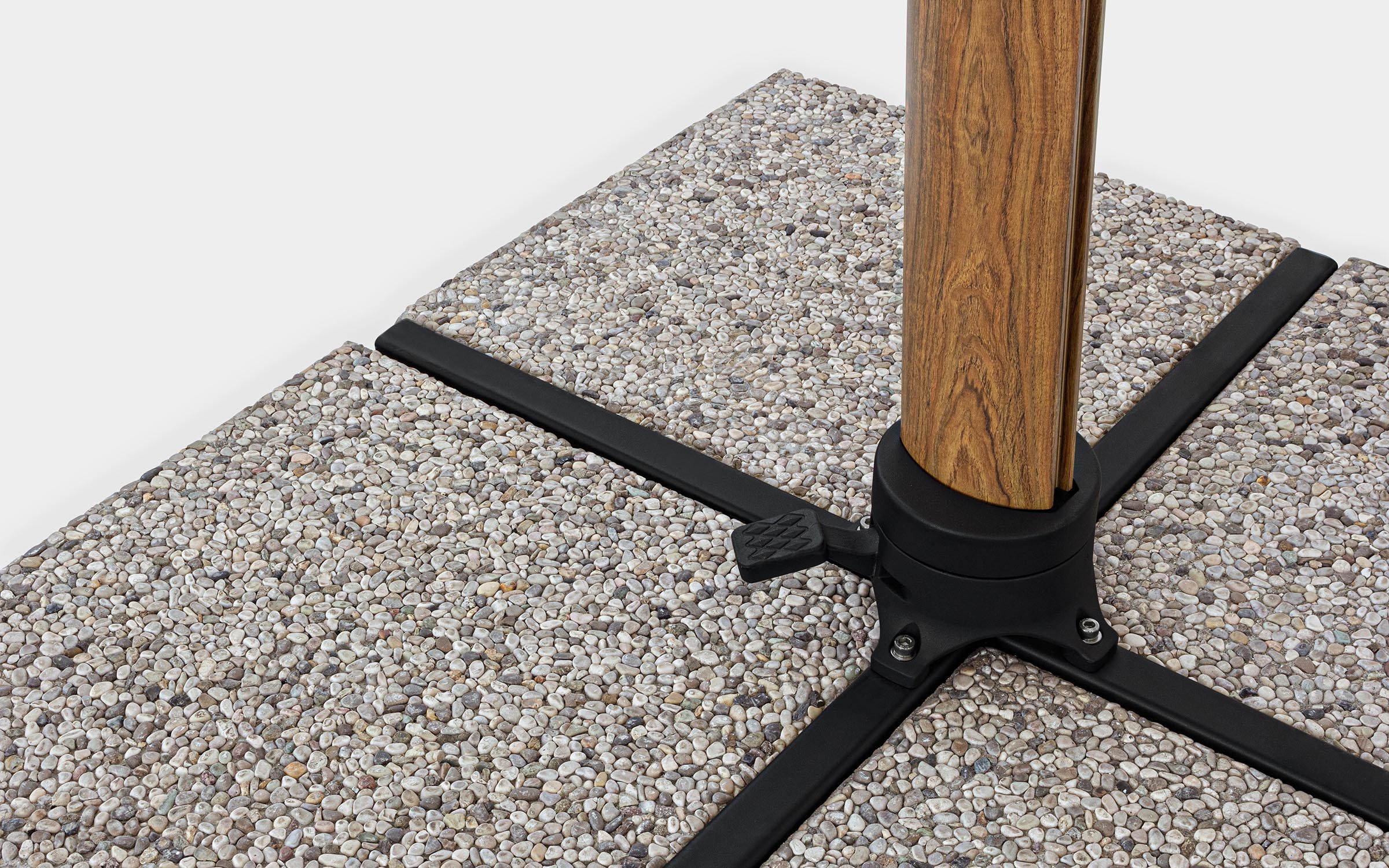 Podstawa w kształcie krzyża wykonana jest ze stali. Cementowe obciążniki należy dokupić oddzielnie.