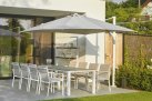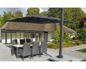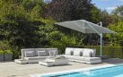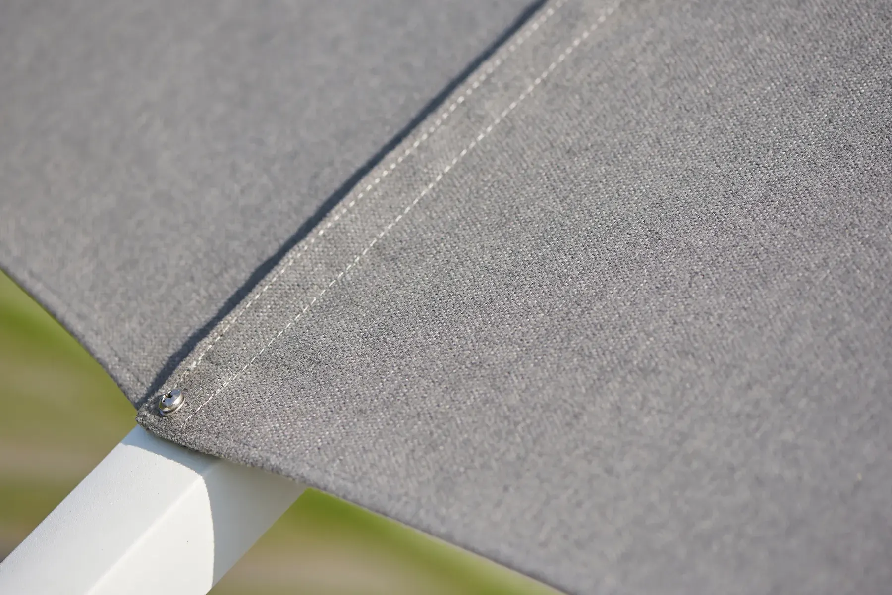 Ten najwyższej klasy parasol kwadratowy Palermo ma wytrzymałą aluminiową ramę, która ma wykończenie w kolorze białym lub antracytowym i jest dostępna w różnych kolorach poszycia. Parasol z noga boczną łatwo ustawić nad zestawem wypoczynkowym lub obiadowym. W komplecie podstawa granitowa na kółkach z hamulcami 90 kg. Parasol należy składać w czasie wiatru.
