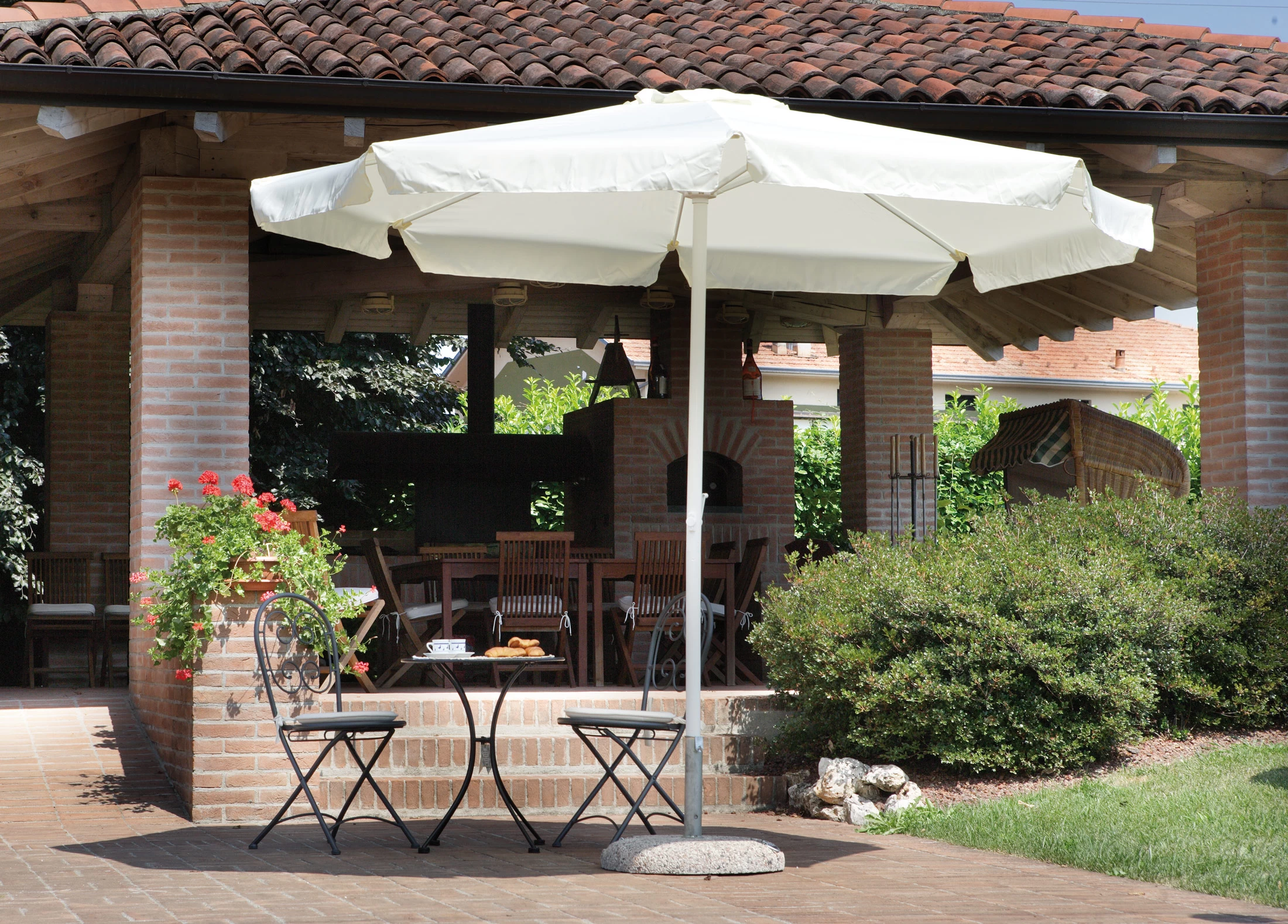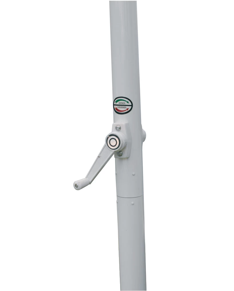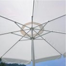 Parasol o śr. 300 cm 8-klinowy z korbką do otwierania z białym poszyciem z falbaną. Mechanizm otwierania korbkowy.