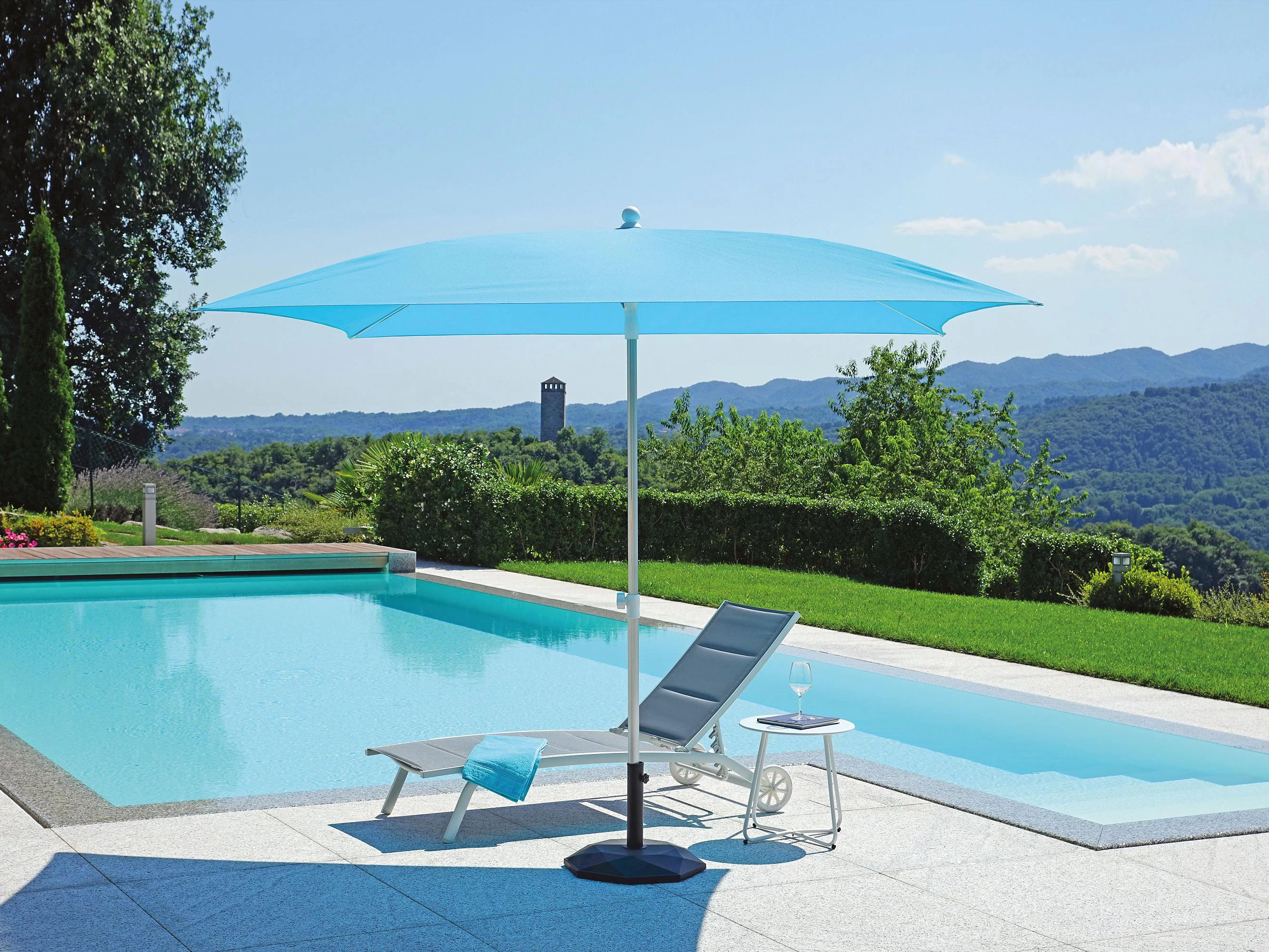 Lekki parasol ogrodowy do użytku w kawiarniach i basenach. Szeroka oferta kolorystyczna.