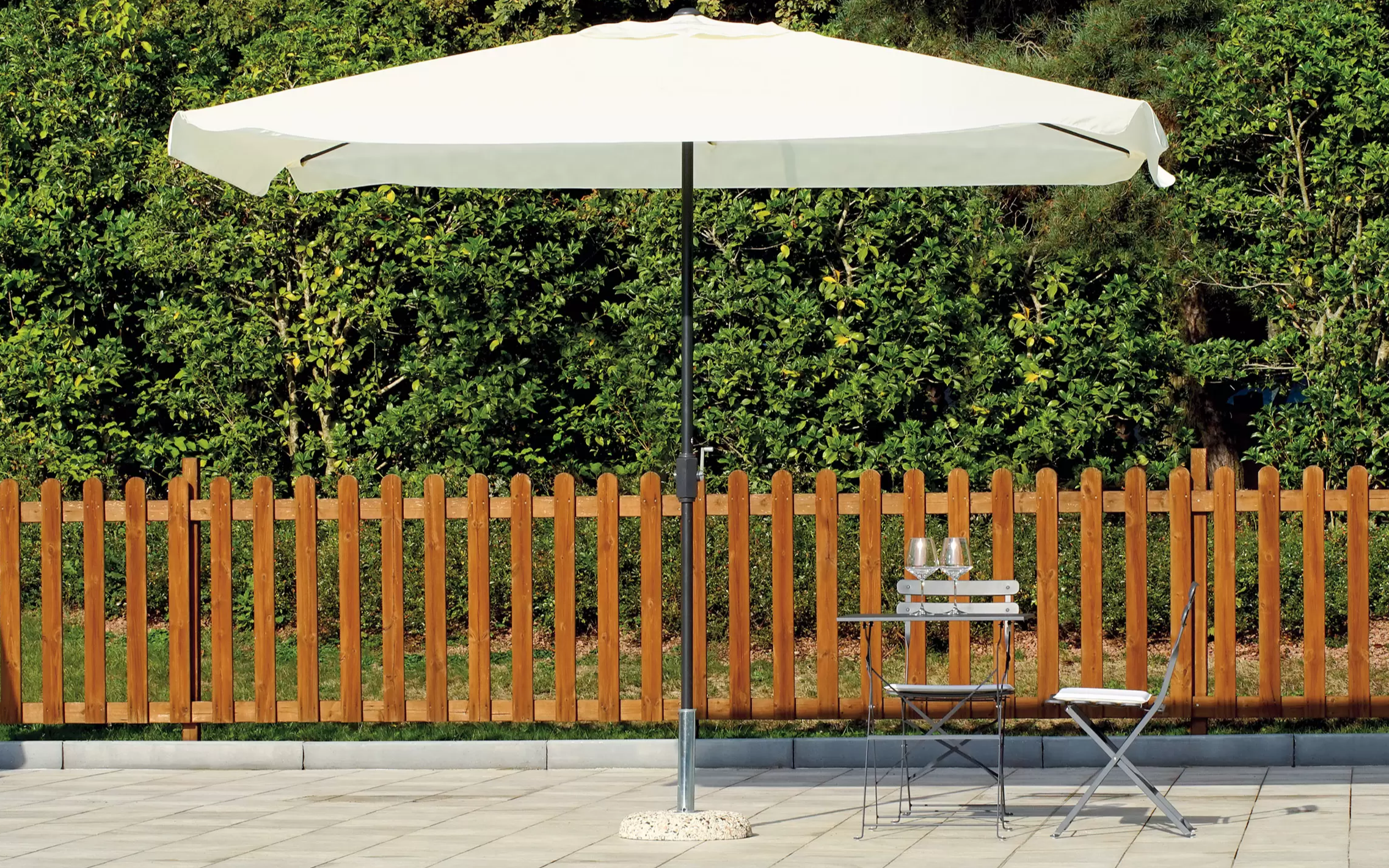 Dwa lekkie parasole idealne do ogrodu jako letnia ochrona przed słońcem.