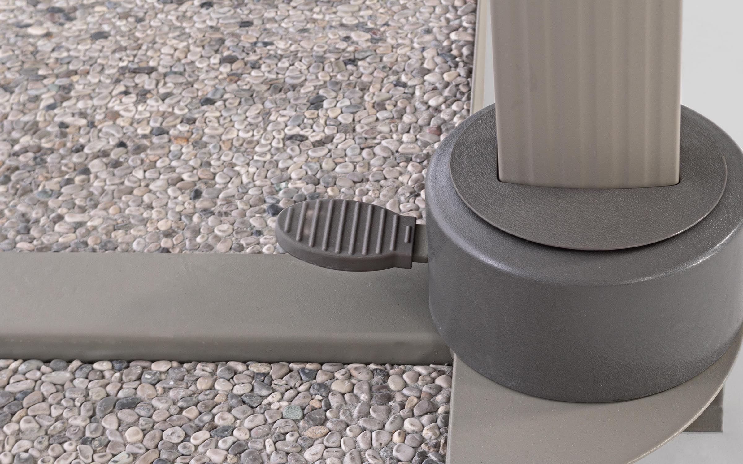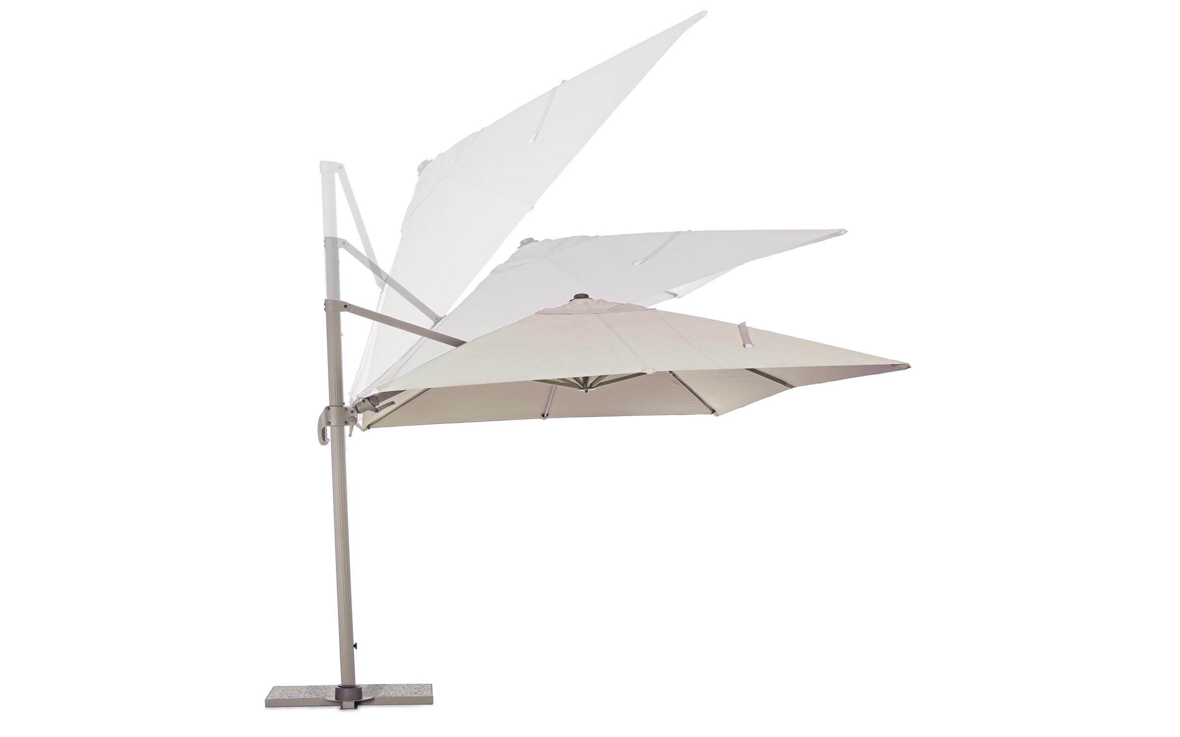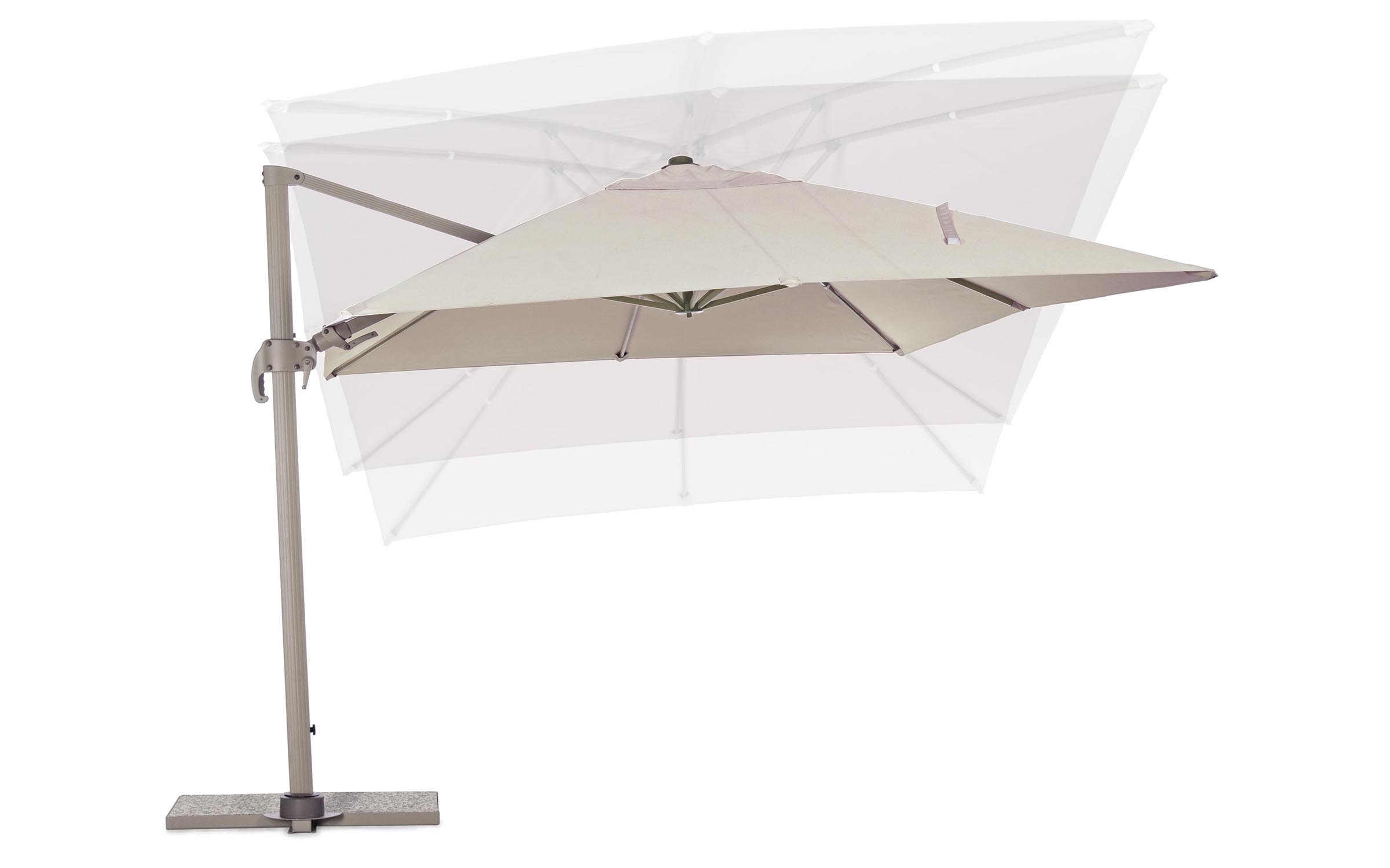 Dzięki możliwości obrotu nogi o 360° oraz regulacji pochylenia w pionie w 5 różnych pozycjach, parasol ten zapewnia wygodę użytkowania. Dodatkowo wyposażony jest w uchwyt umożliwiający pochylenie parasola zarówno w prawo, jak i w lewo o 30 stopni.