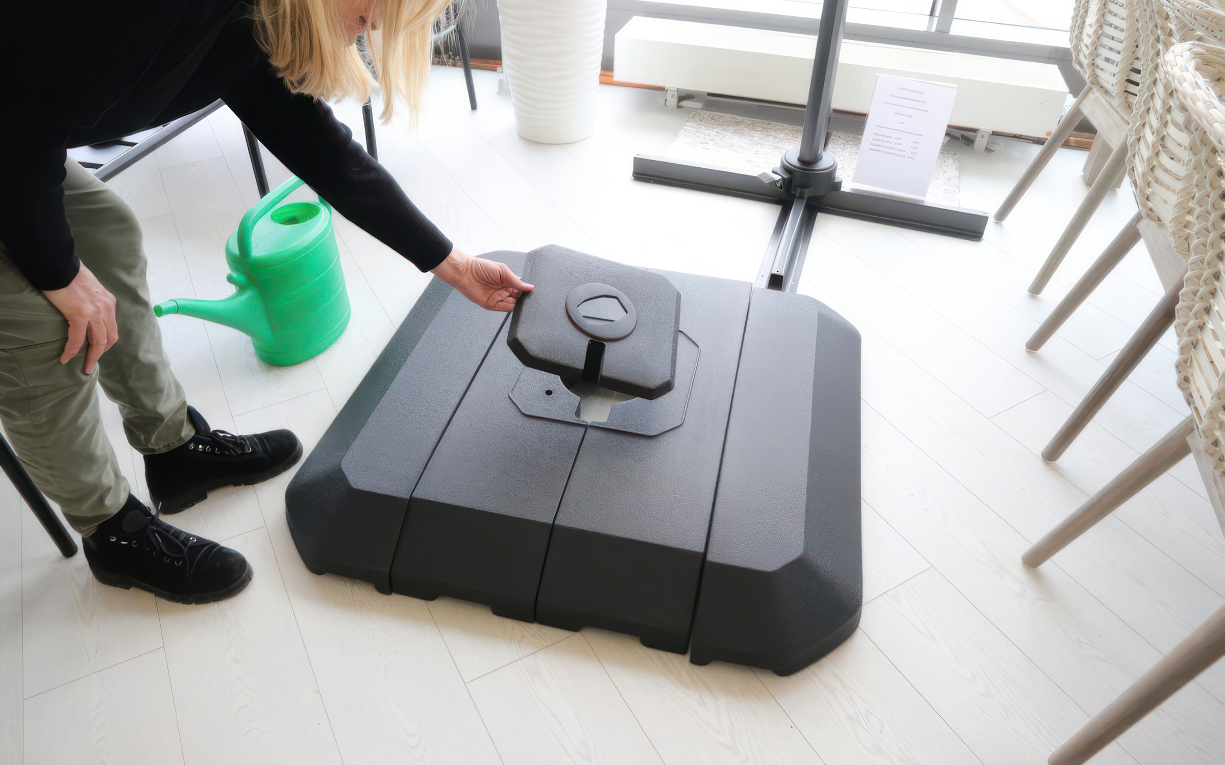 - Zestaw czterech bloków z żywicy syntetycznej – przeznaczony do parasoli SHADOWFLEX 300 × 300 cm