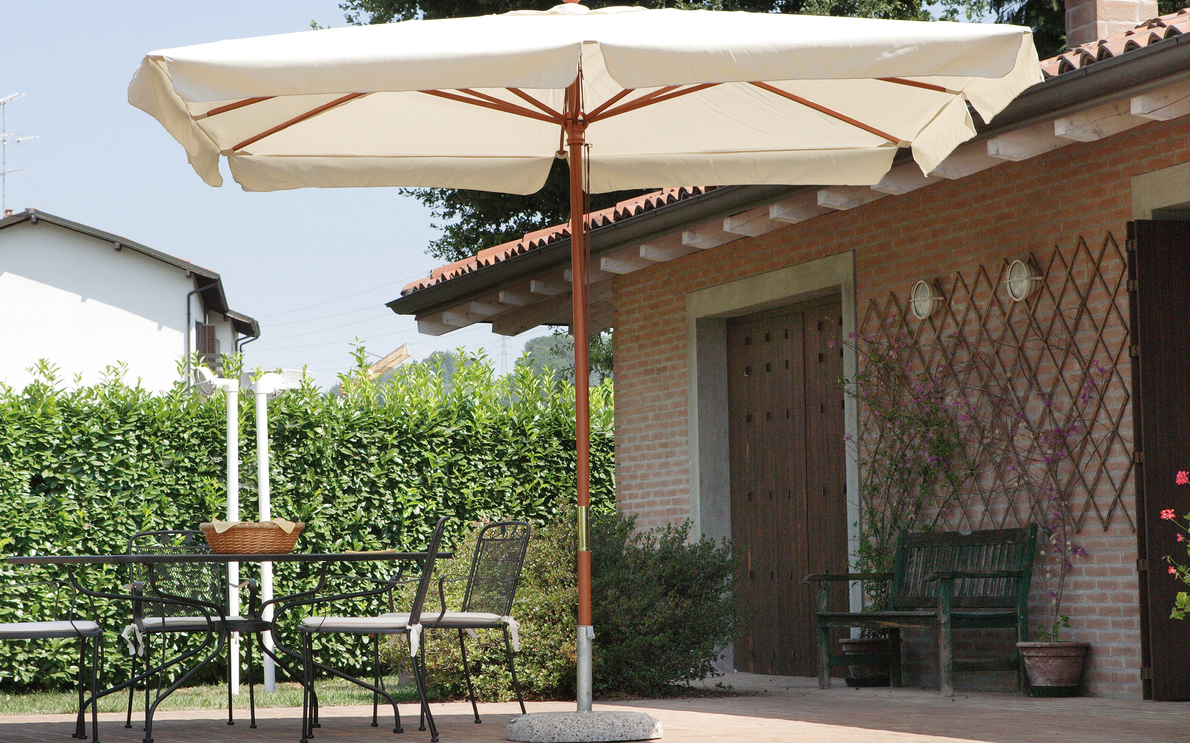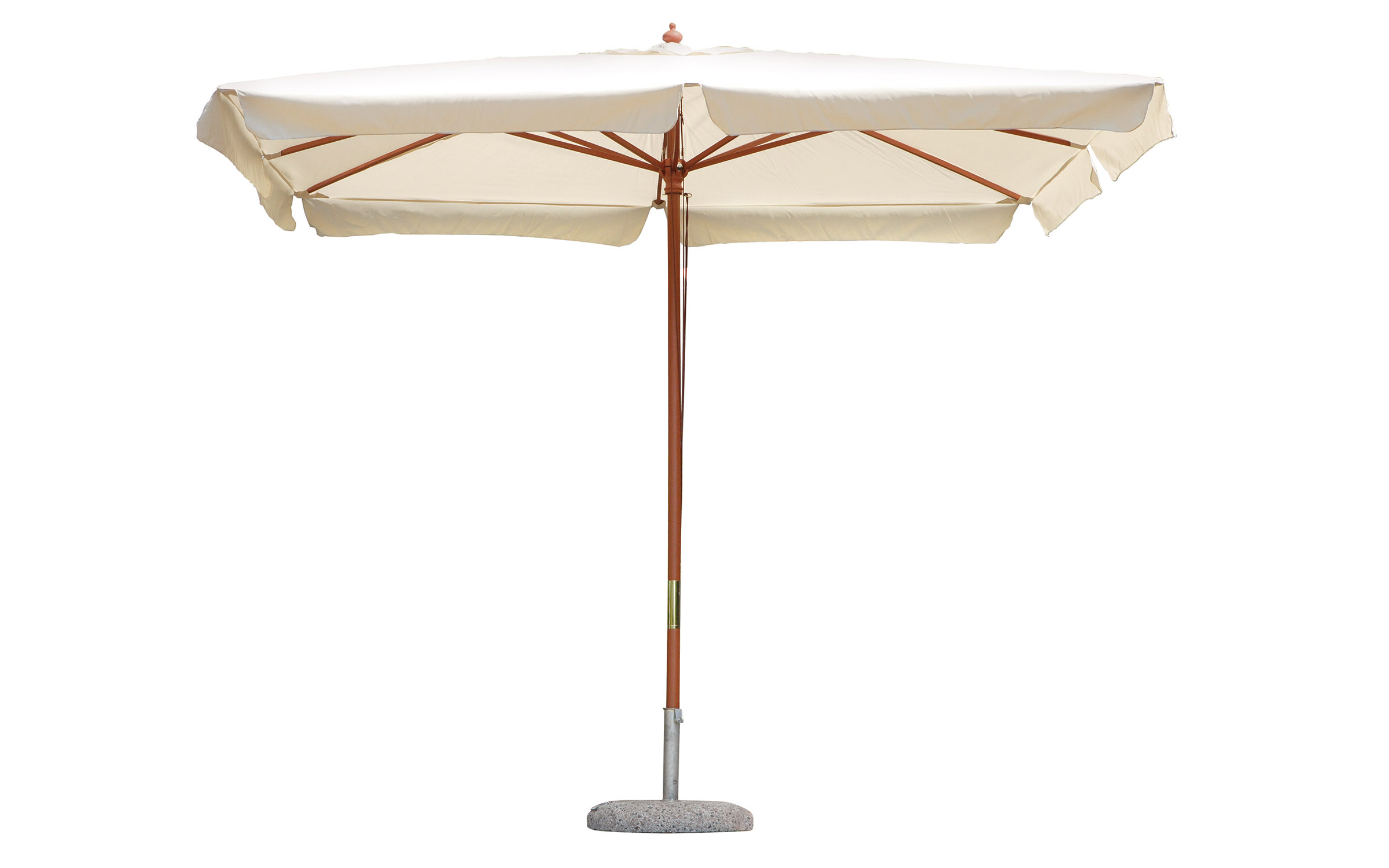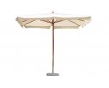 Lekki parasol ogrodowy z nogą centralną egzotycznego drewna.